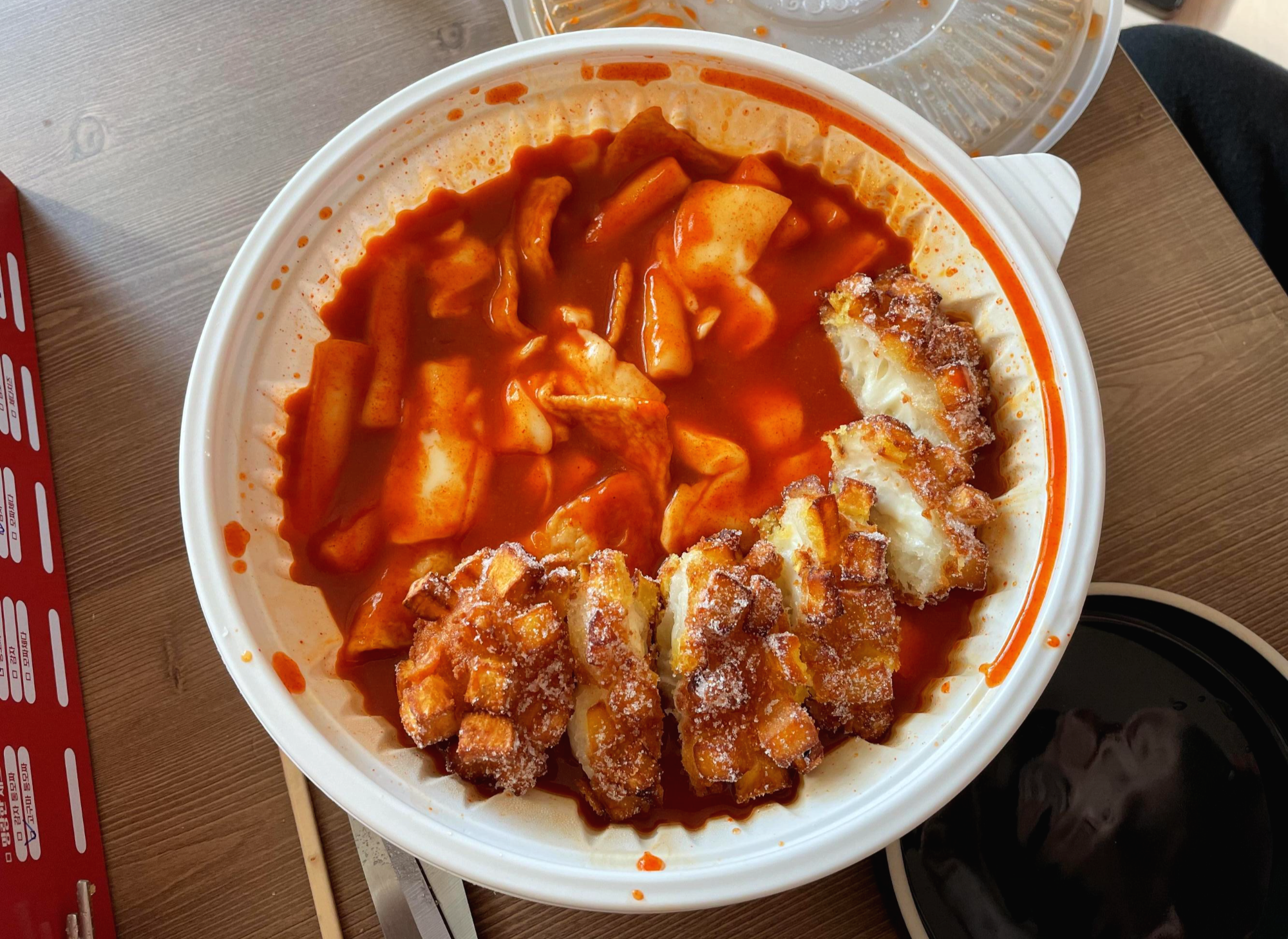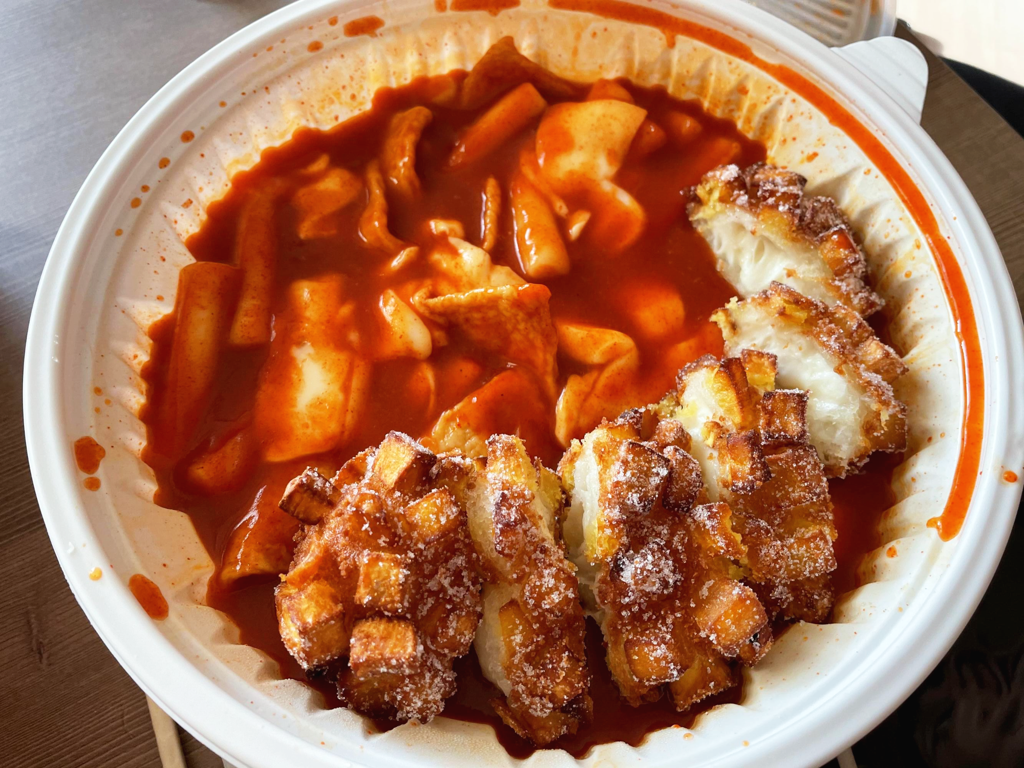6시가 다 되어가던 시점이라 20분 정도 걸려서 받았어요! 설탕은 뿌려드리냐고 물어보셔서 그렇다고 했습니다. 너무 많아서 떡볶이랑만 먹을 순 없을 것 같더라구요.