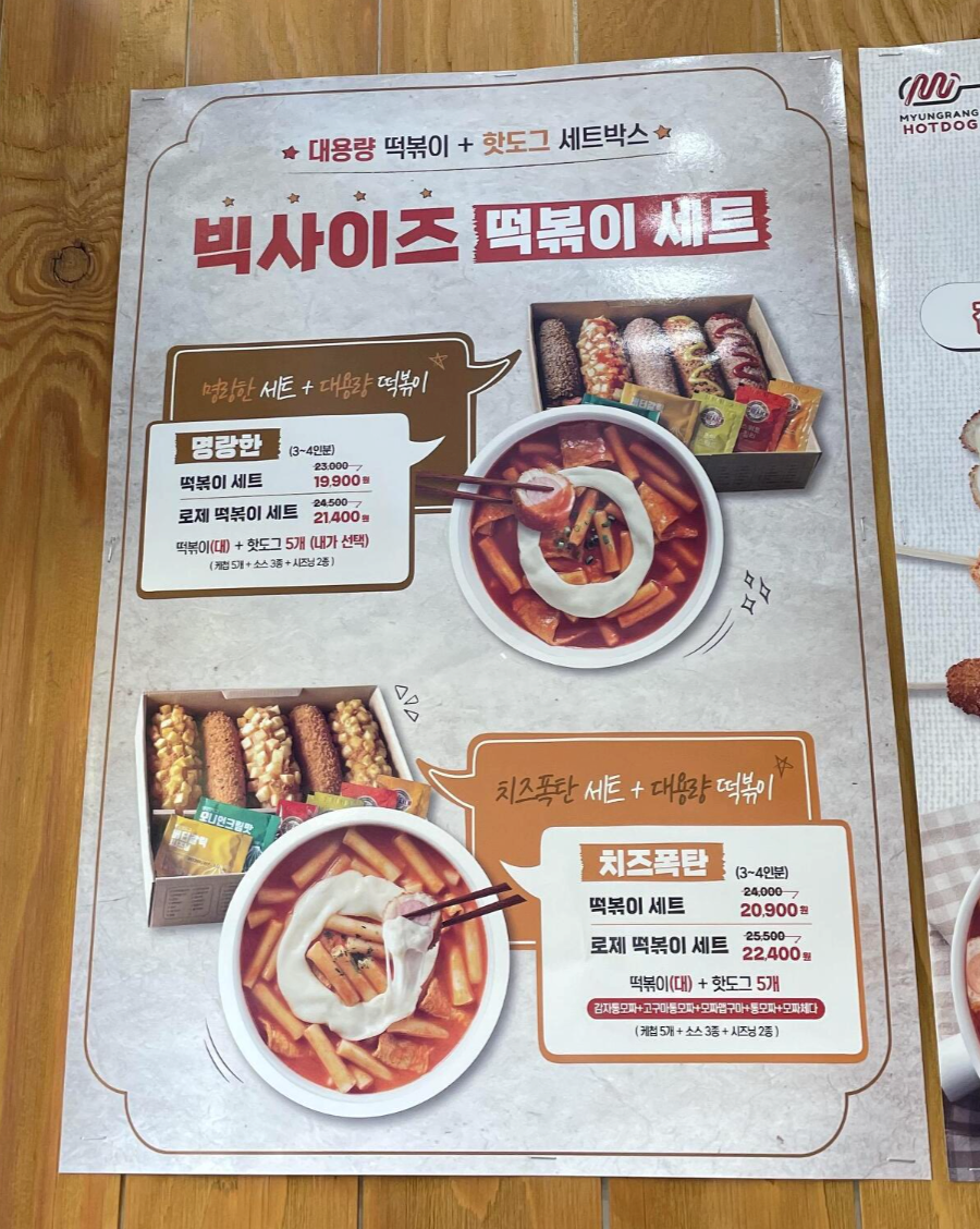 매장에 붙은 세트박스 설명들이에요. 로제떡볶이도 궁금하긴 했지만, 저는 일단 기본 떡볶이를 먹어보려구요.