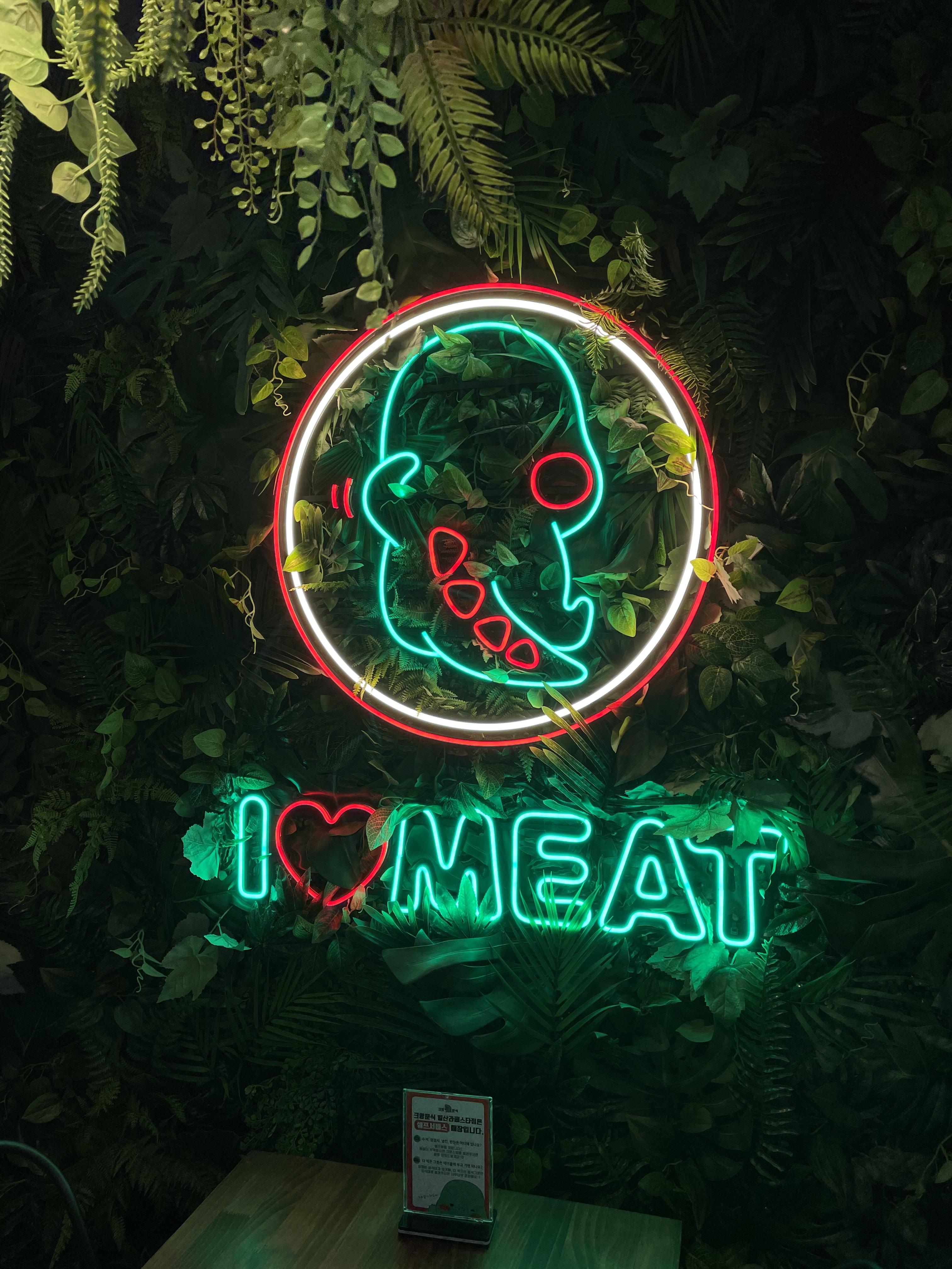 테이블 옆에 있던 네온사인이에요. 공룡 뒷모습이 귀엽네요.