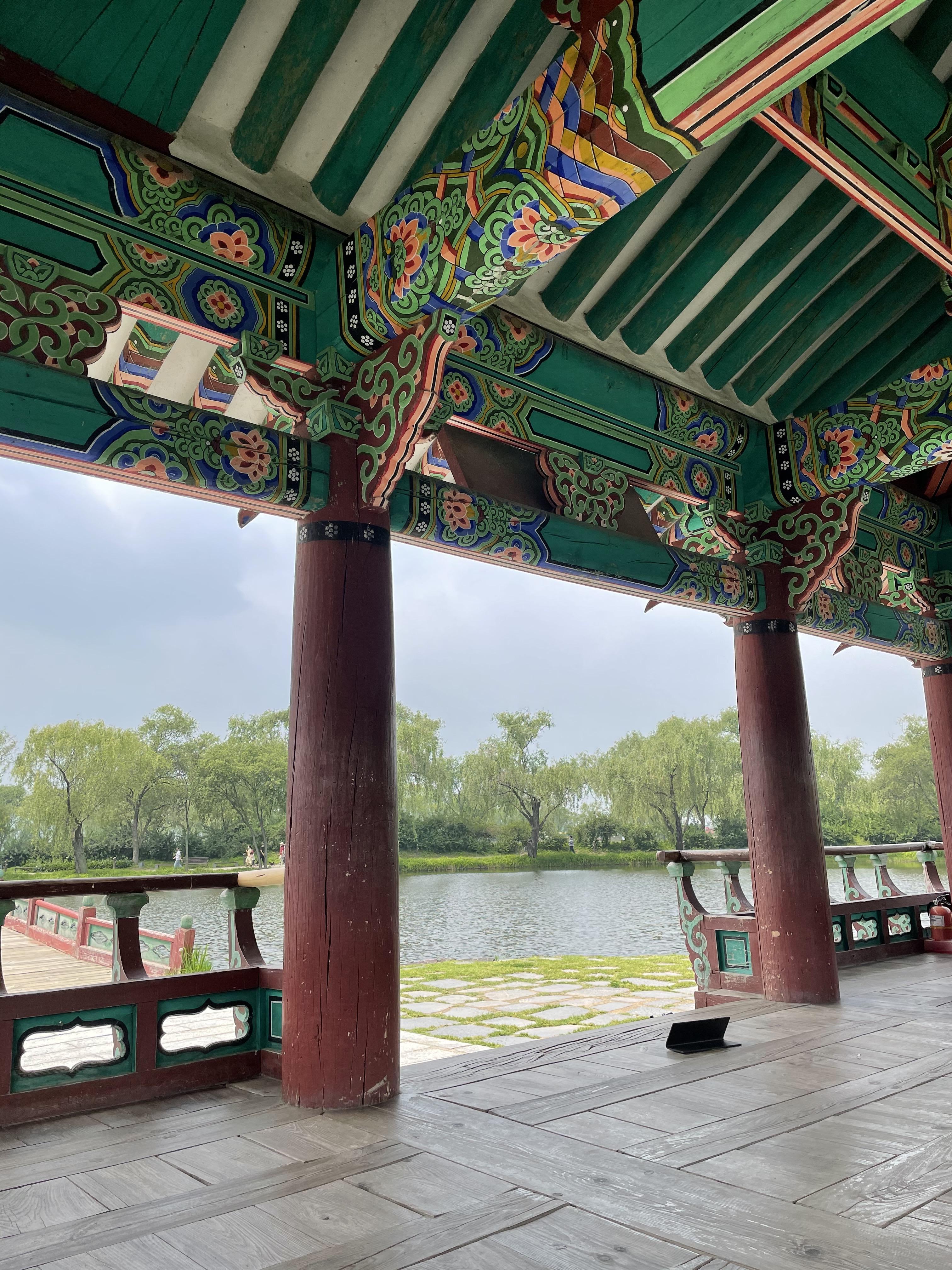 걷다 보니, 연못 가운데로 포룡정이 보였어요.