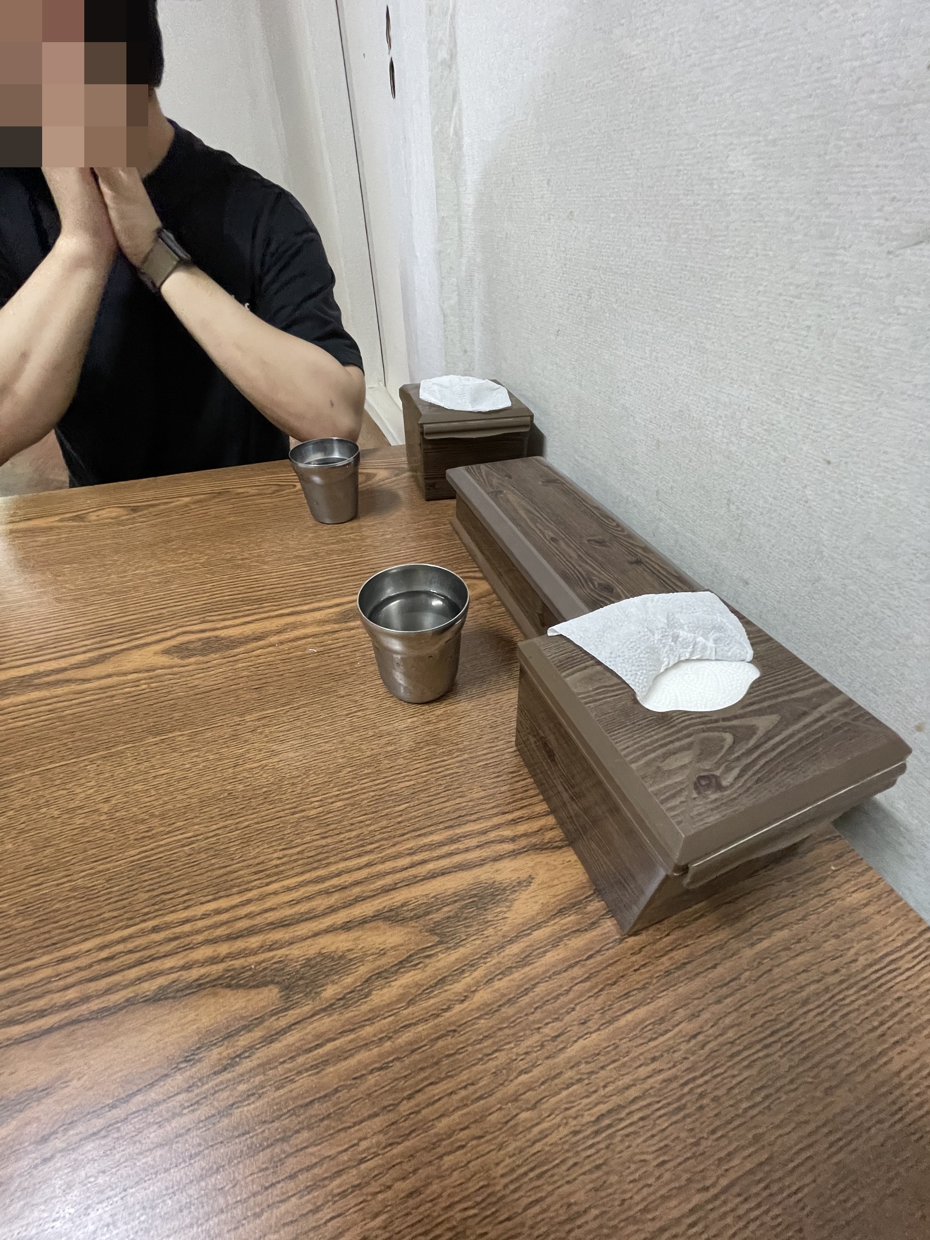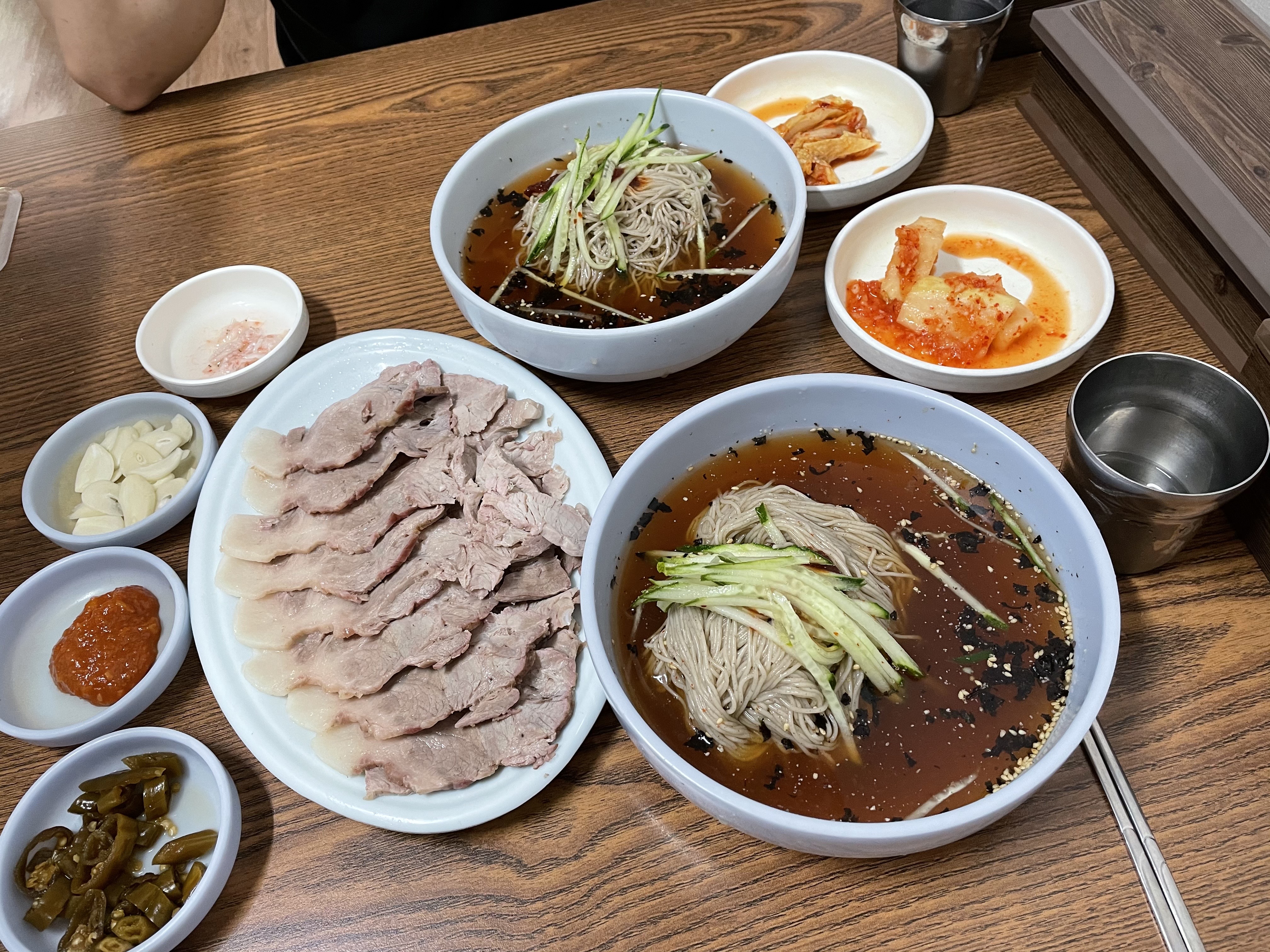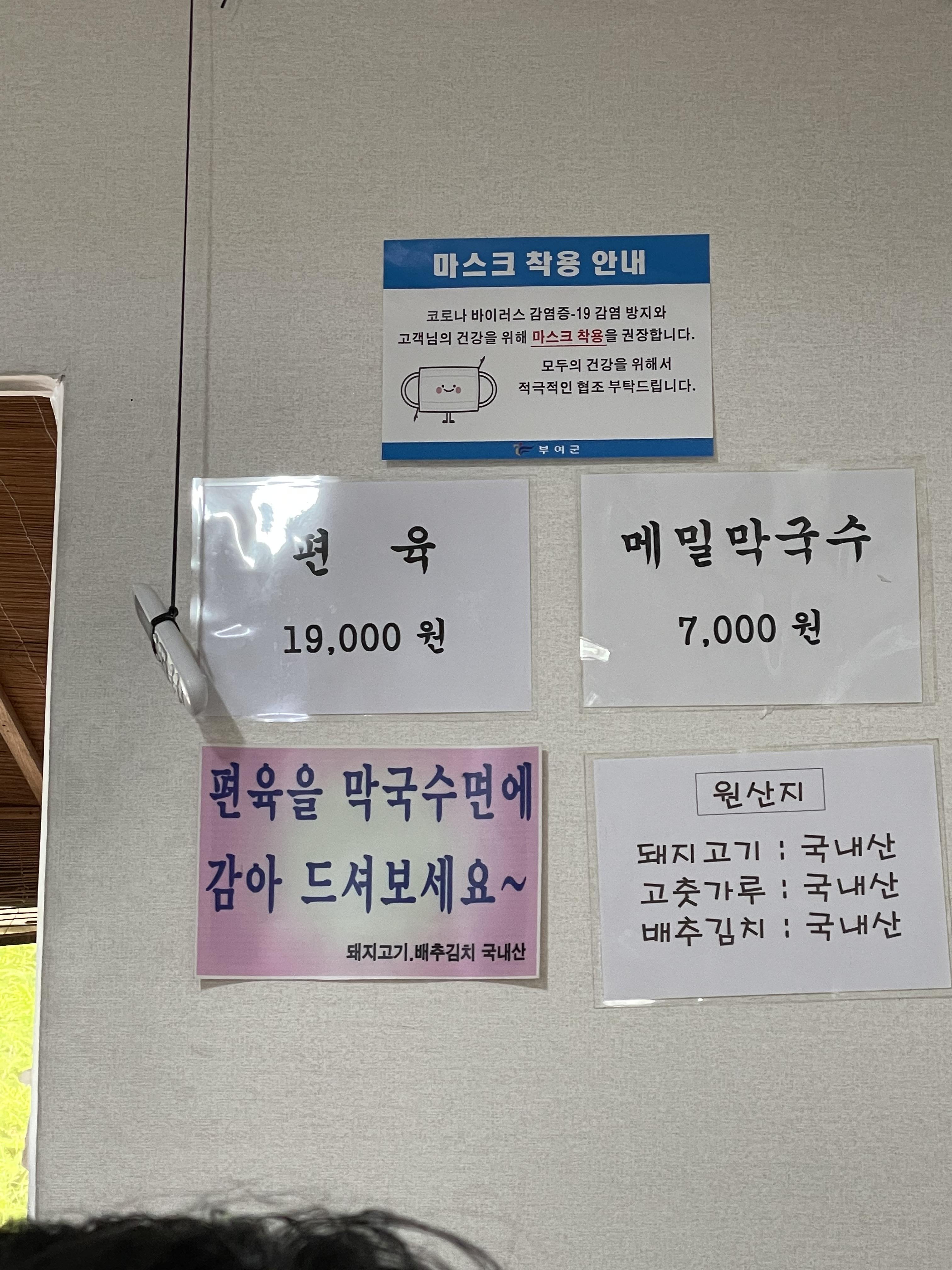 너무 얼떨결에 들어가게 되어 입구 사진은 못 찍었네요ㅠ 이곳은 좌식이라 신발을 벗고 들어가셔야 해요! 메뉴는 두 개뿐입니다. 메밀막국수와 편육. 그래서 우리는 메밀막국수와 편육을 주문했어요.