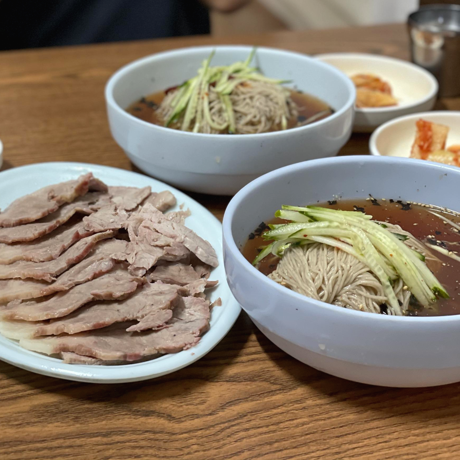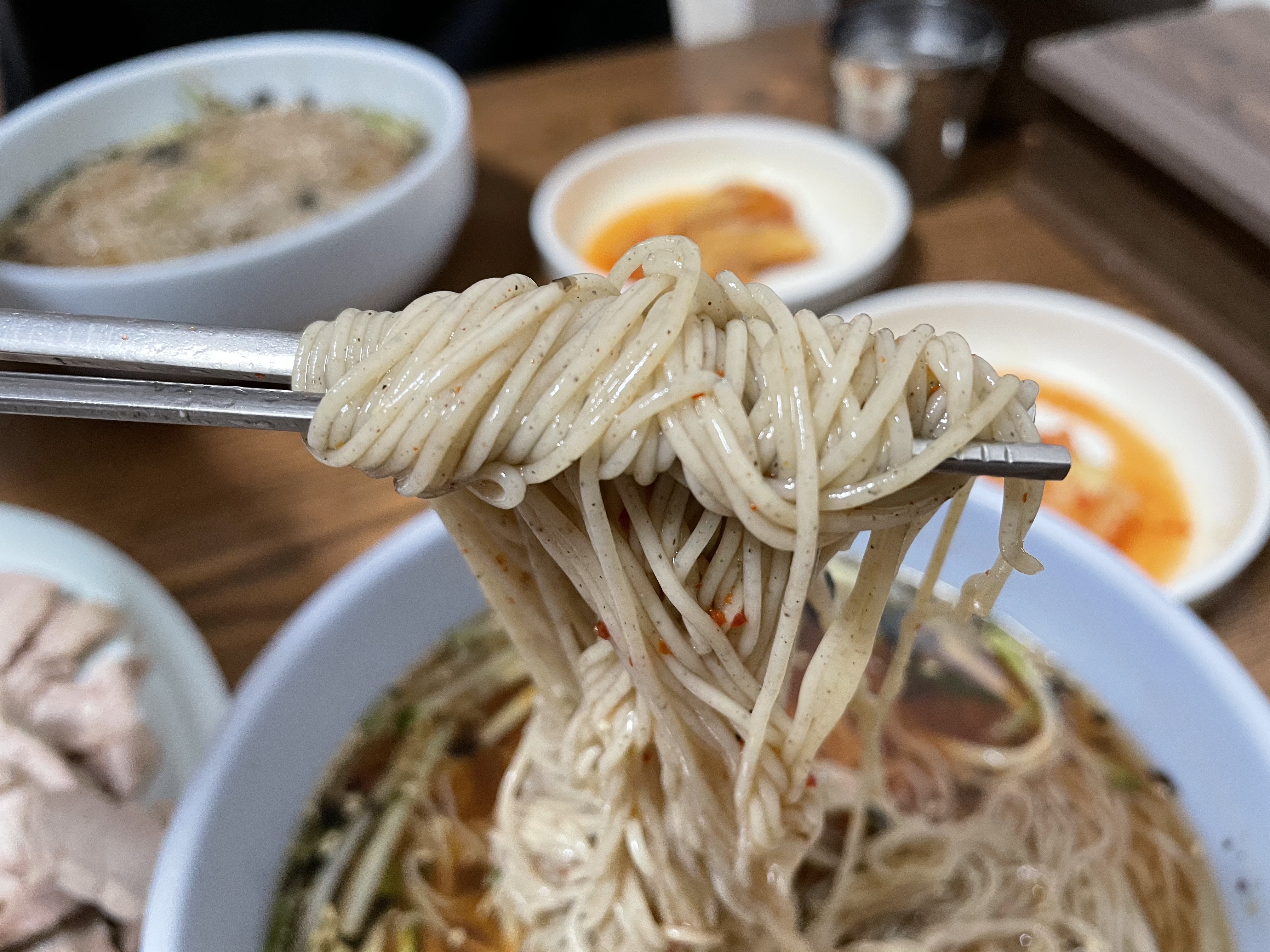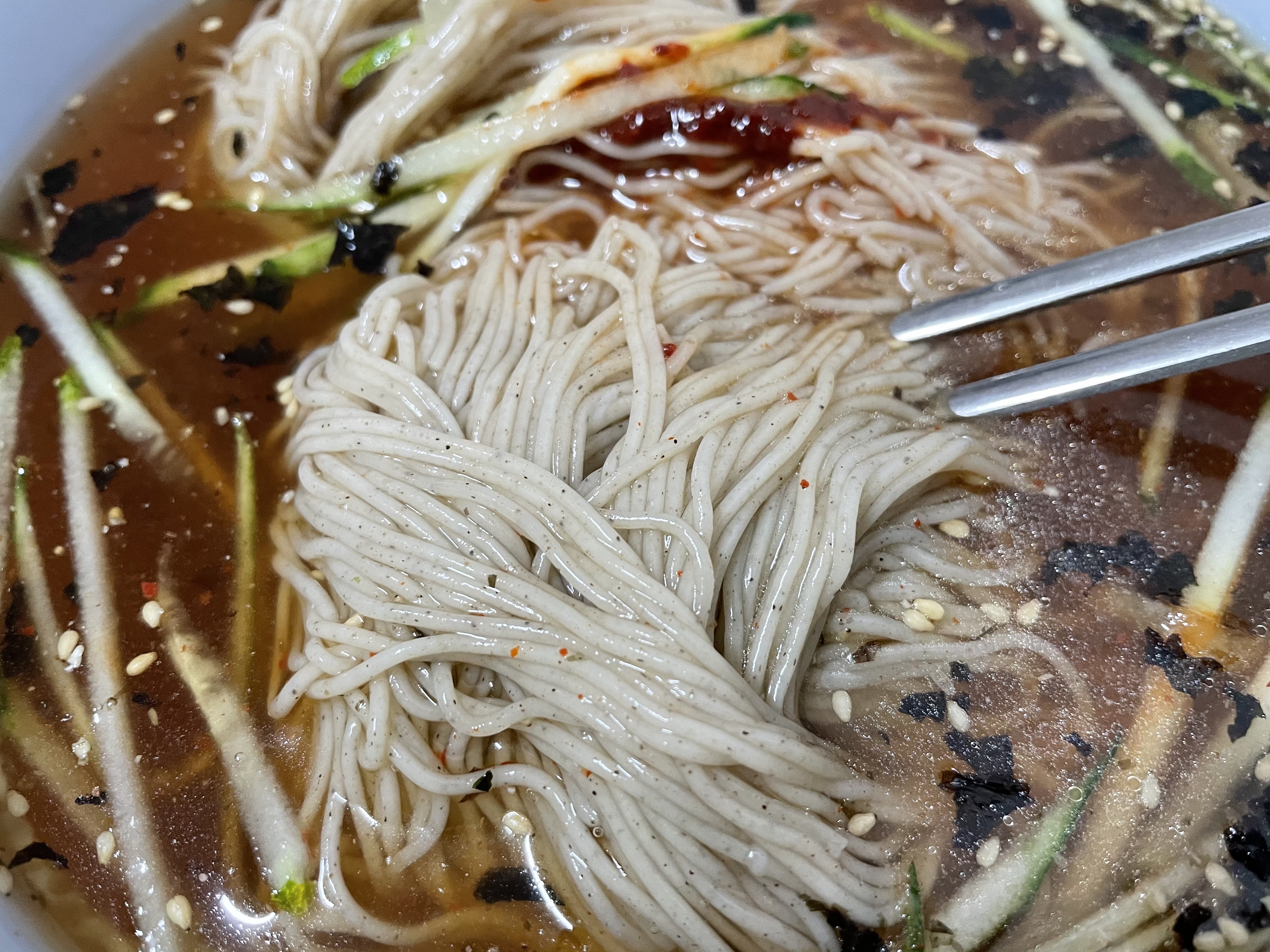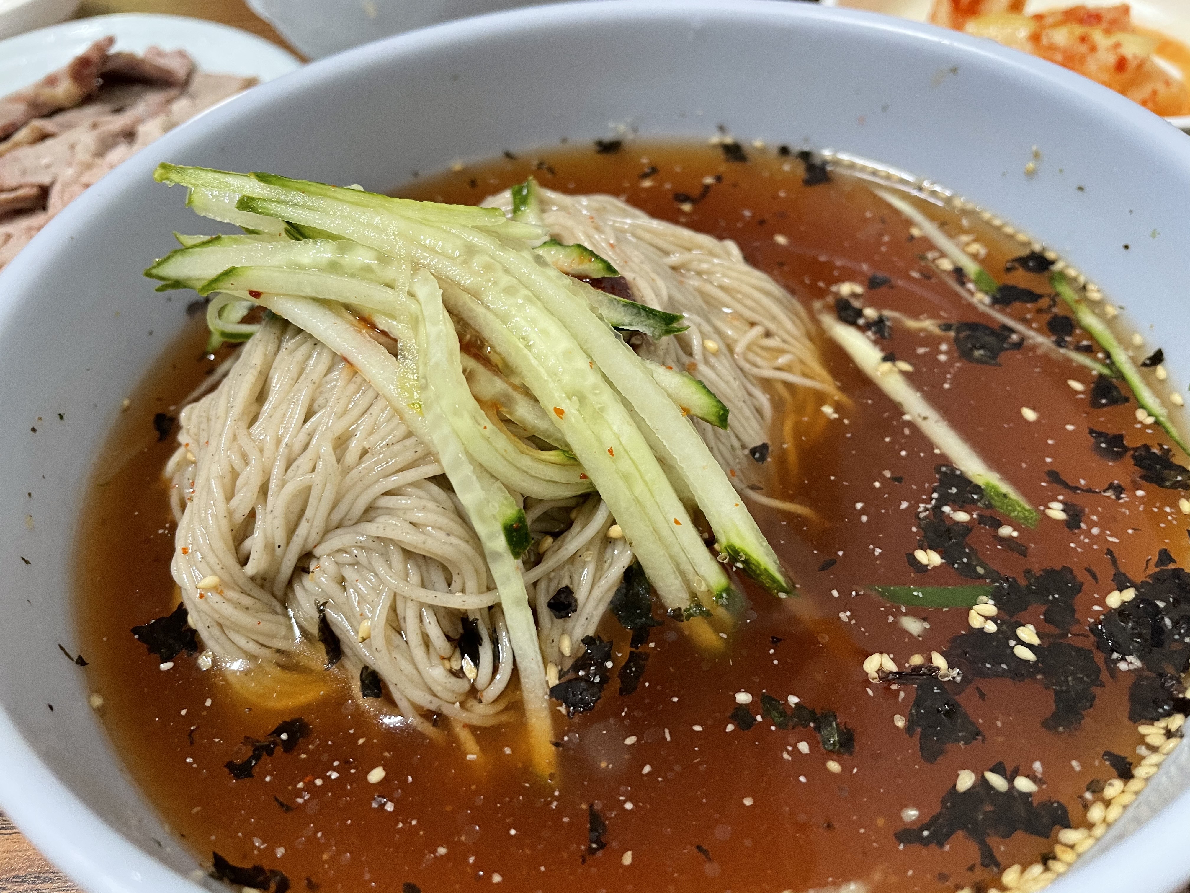 사실 그다지 특별할 것 없어 보이는 막국수인데, 왜 이렇게 유명한지 먹기 전까지 잘 모르겠더라고요. 고명으로 오이가 올라가 있습니다.