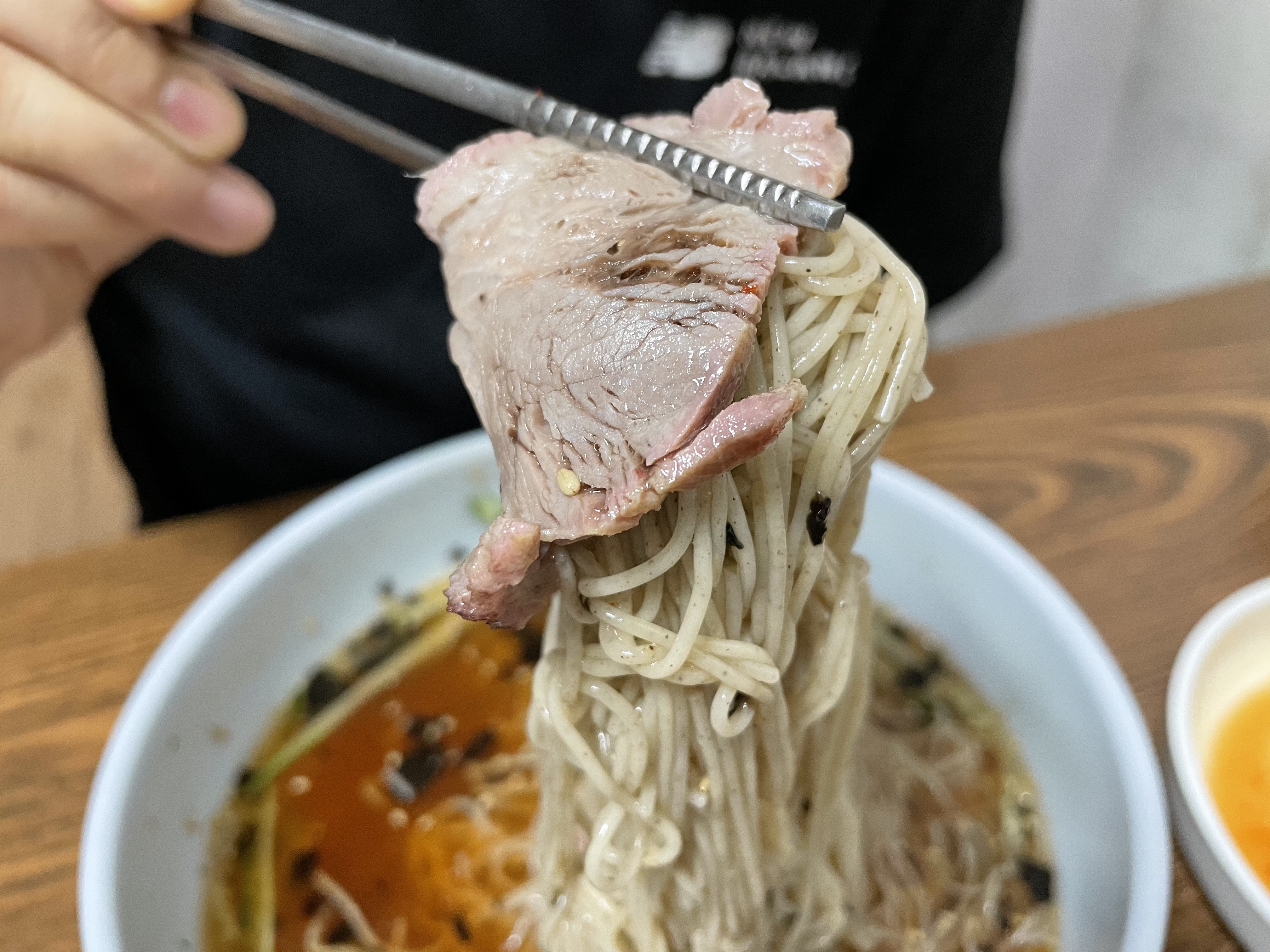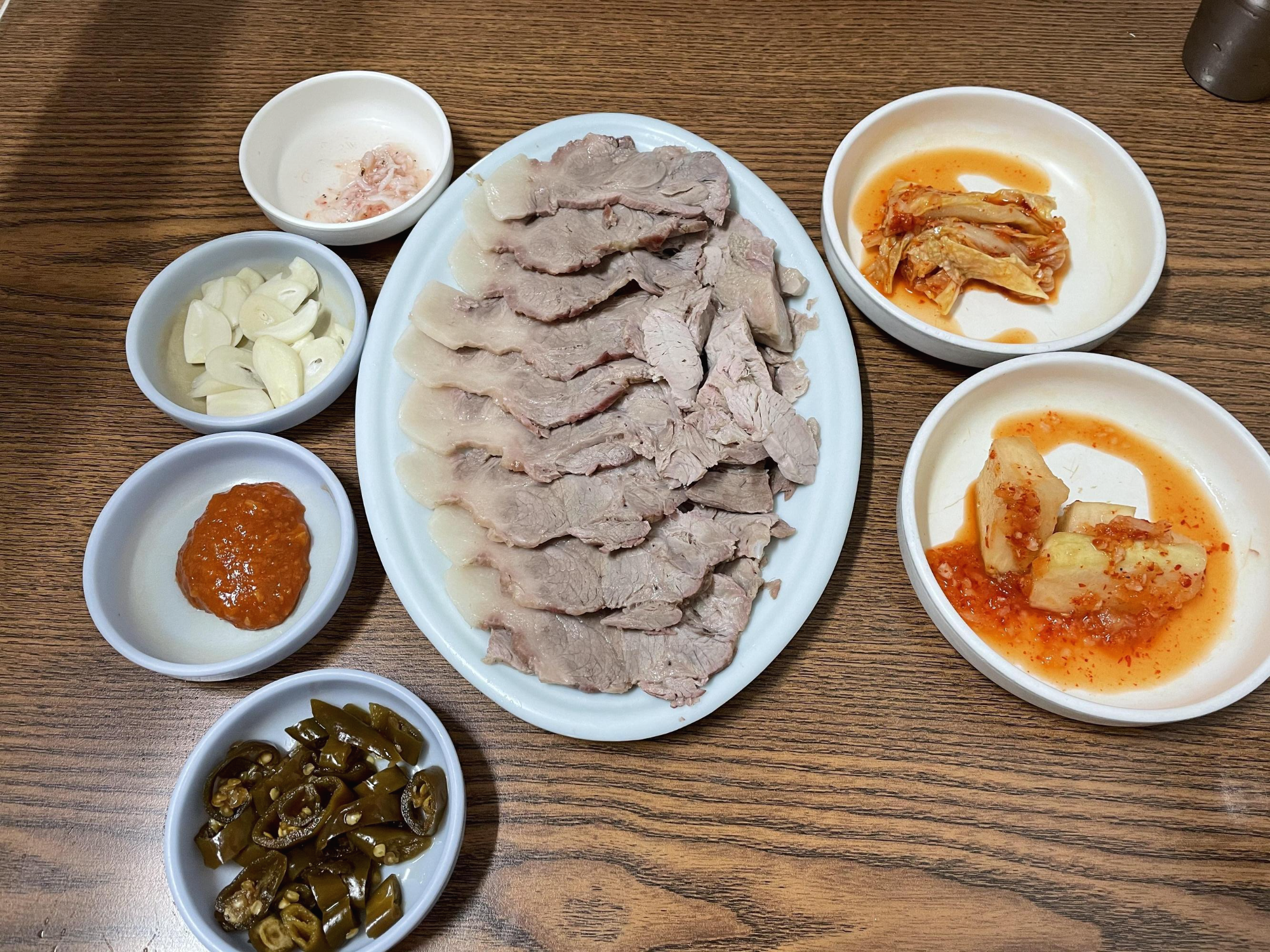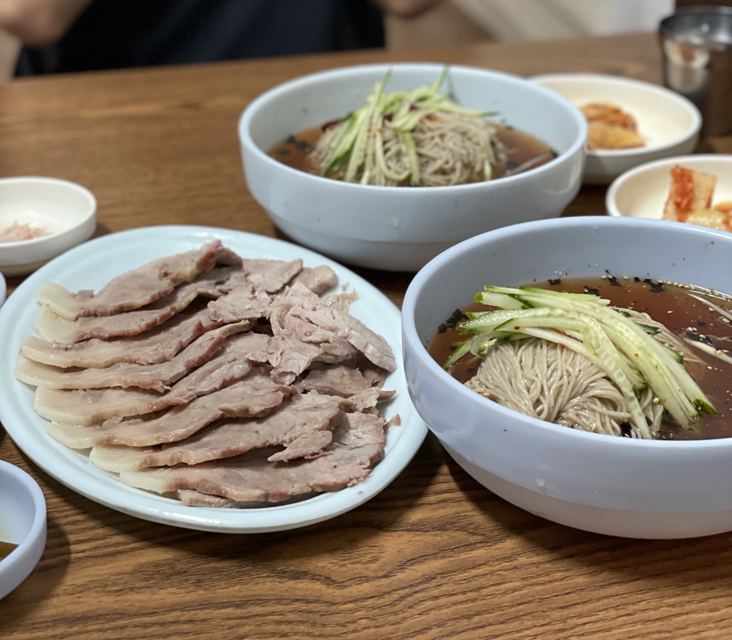 편육은 굉장히 얇게 썰어져서 먹기 편했어요. 저는 개인적으로 쌈장에 찍어먹는 게 제일 맛있었어요. 뜨거운 김이 살짝 식으니 끝에 미세한 잡내가 나긴 했지만 거슬릴 정도는 아니었습니다.