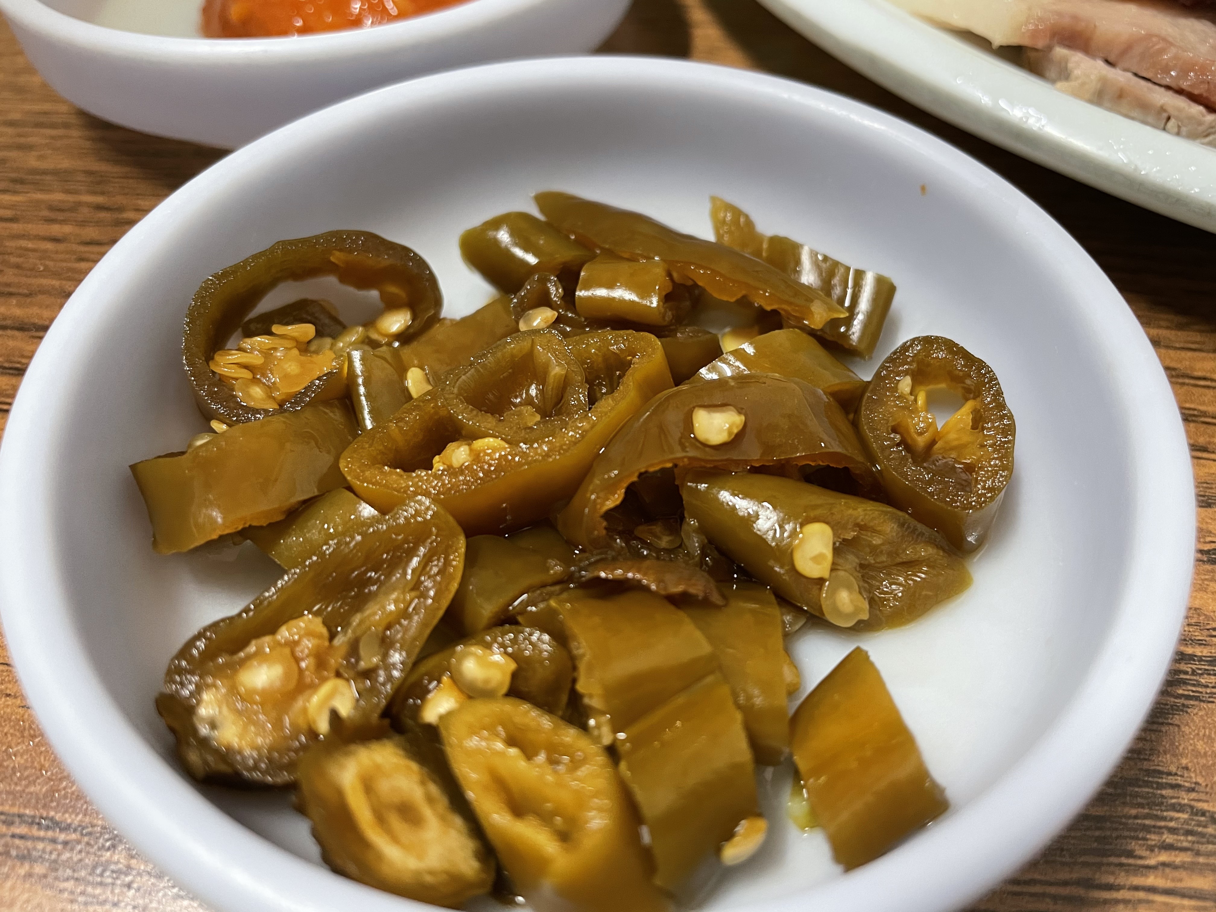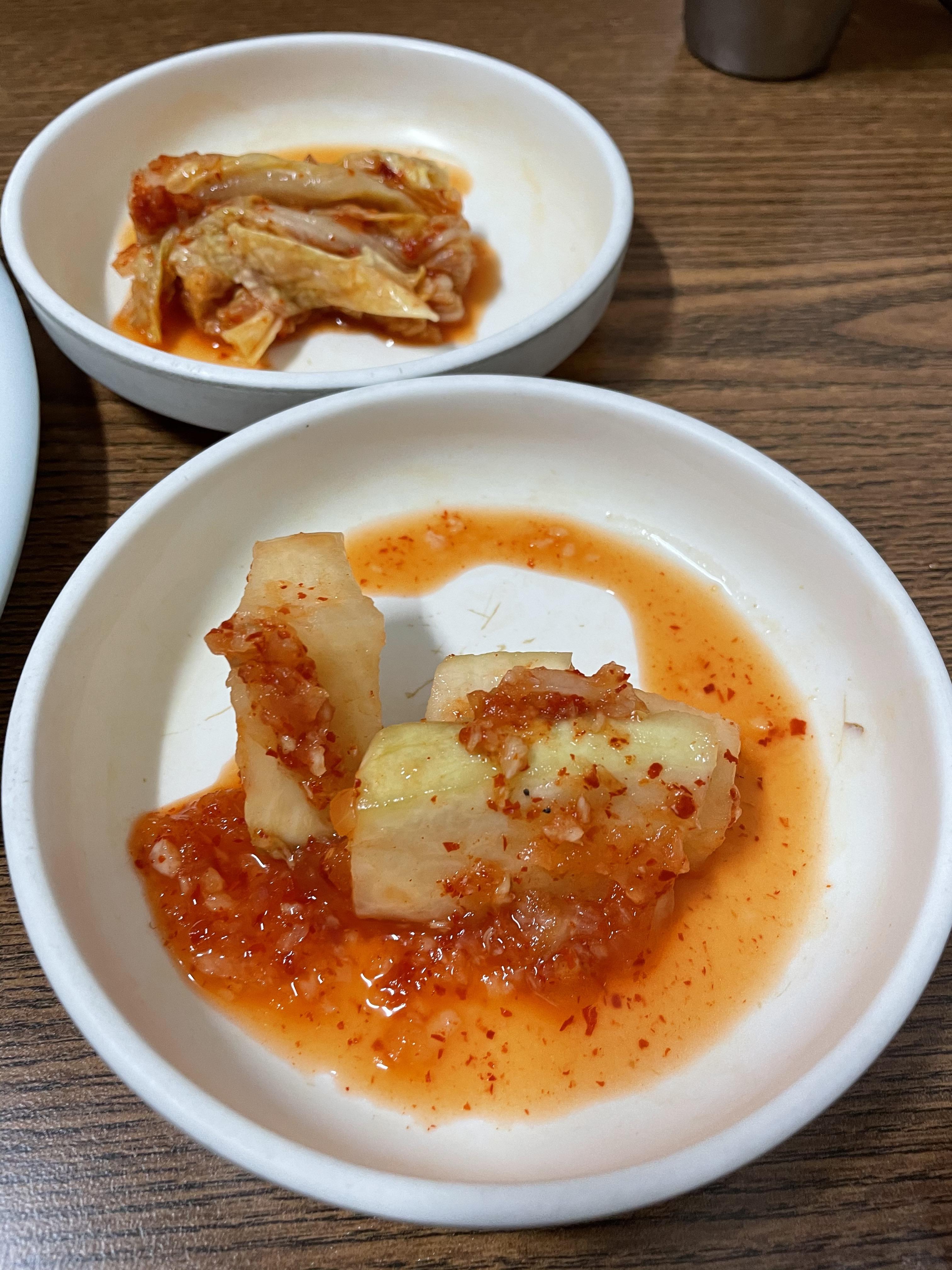 국내산 김치와 고추장아찌입니다. 깍두기는 잘 익었고, 고추장아찌도 매콤달콤새콤하니 제가 좋아하는 맛이었어요.