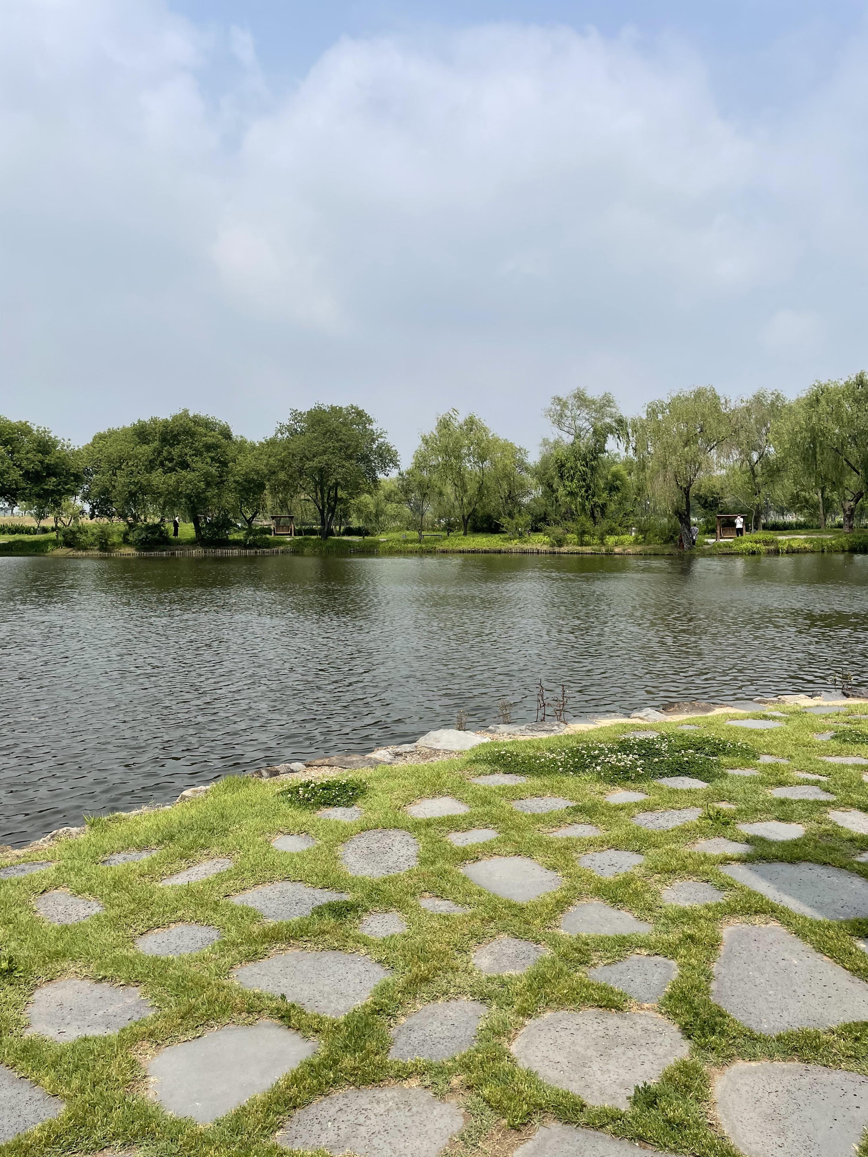 다리를 빠져나와 조금 더 안쪽으로 걸어가니 커다란 연못이 보여 징검다리를 건너갑니다.