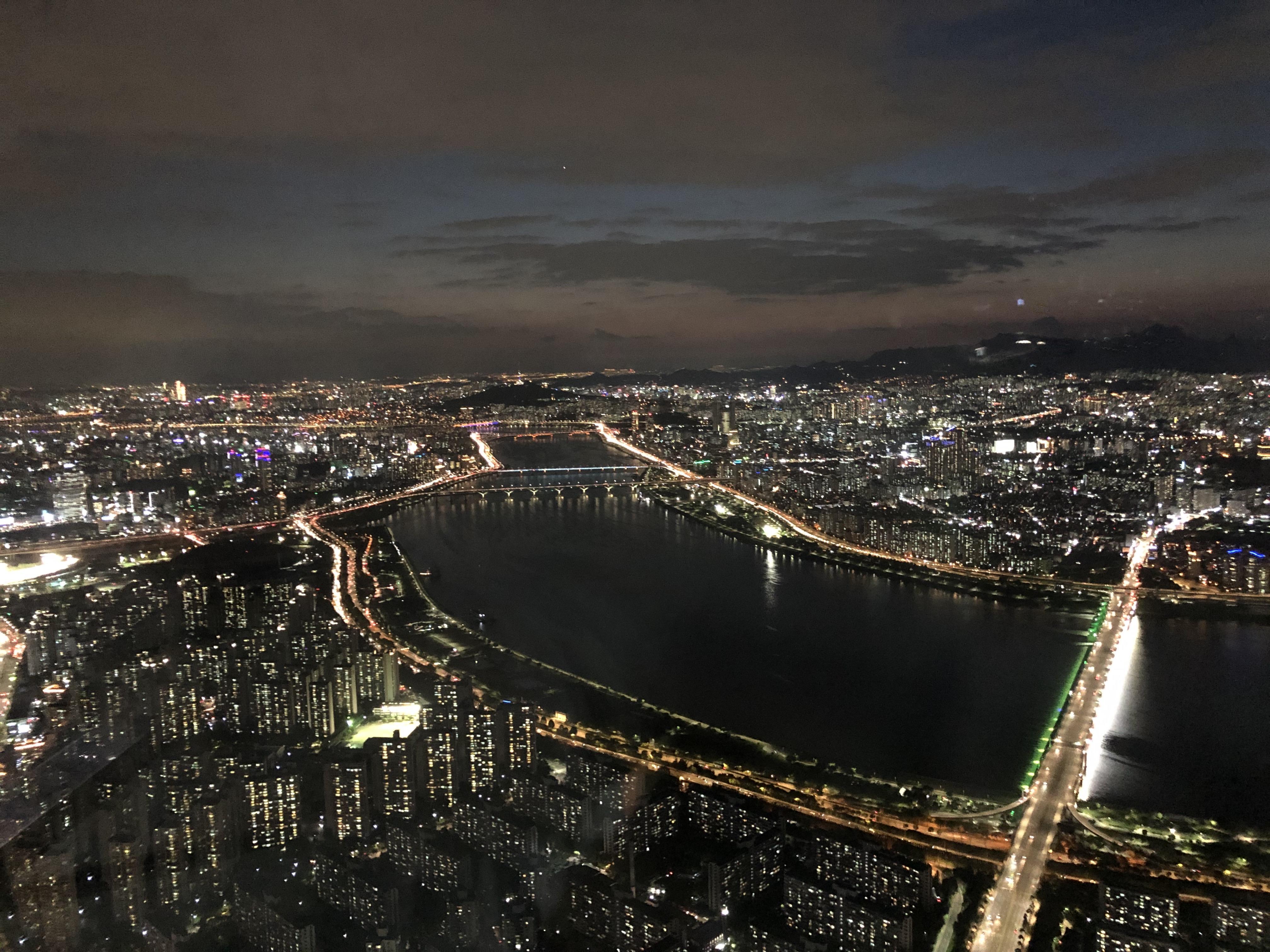서울스카이는 무척 고층이라 두꺼운 유리로 막혀있어 그 야경이 만들어내는 공기와 그날의 분위기를 느껴보지 못해서 인상이 깊게 남지 않아 아쉬웠네요. 하지만, 멋있다는 말이 제일 잘 어울리는 곳이었어요.