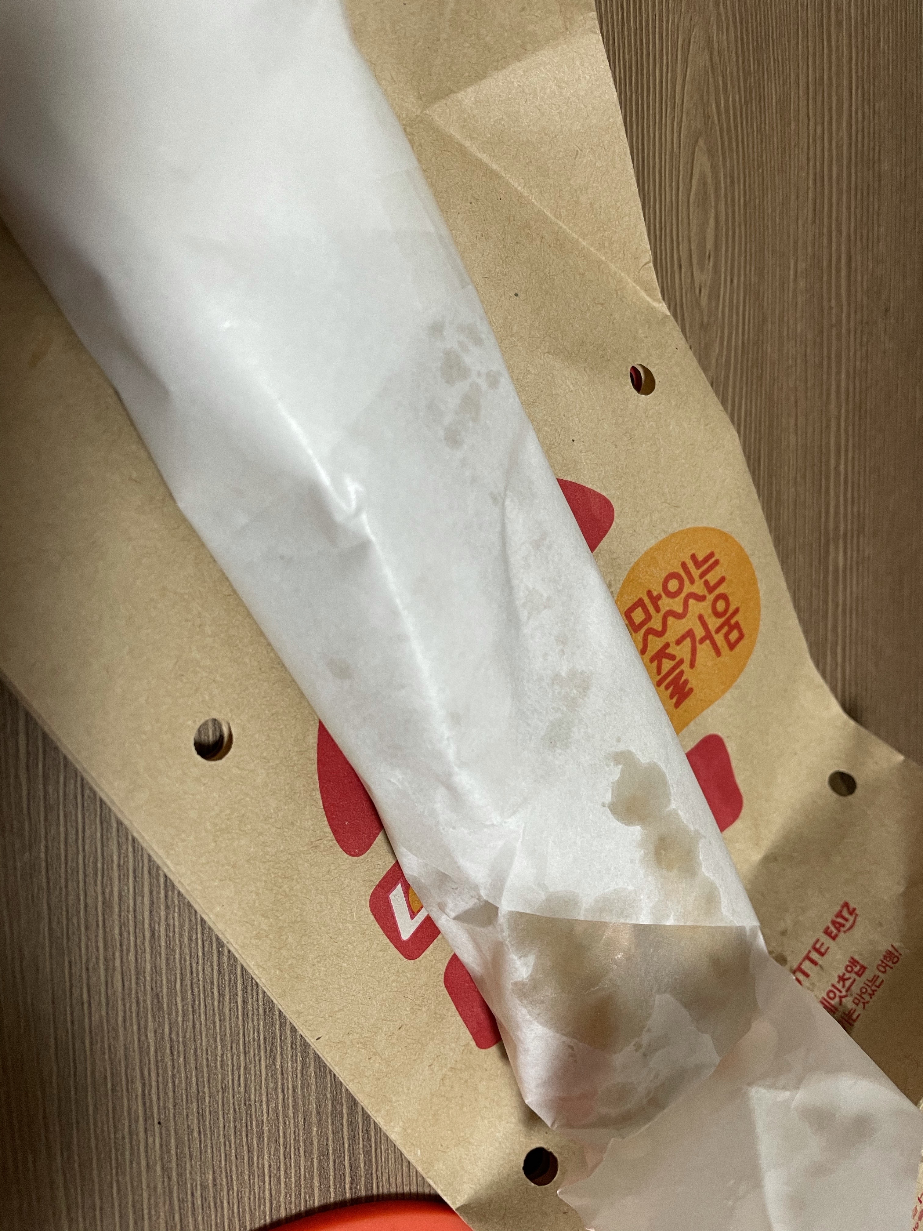 배달이기 때문에 굳었을 거라고 생각은 했지만 적당히 잘 늘어나는 상태로 왔습니다. 근데 이번 치즈스틱은 약간 기름이 덜 빠진 것 같아서 아쉬웠어요.