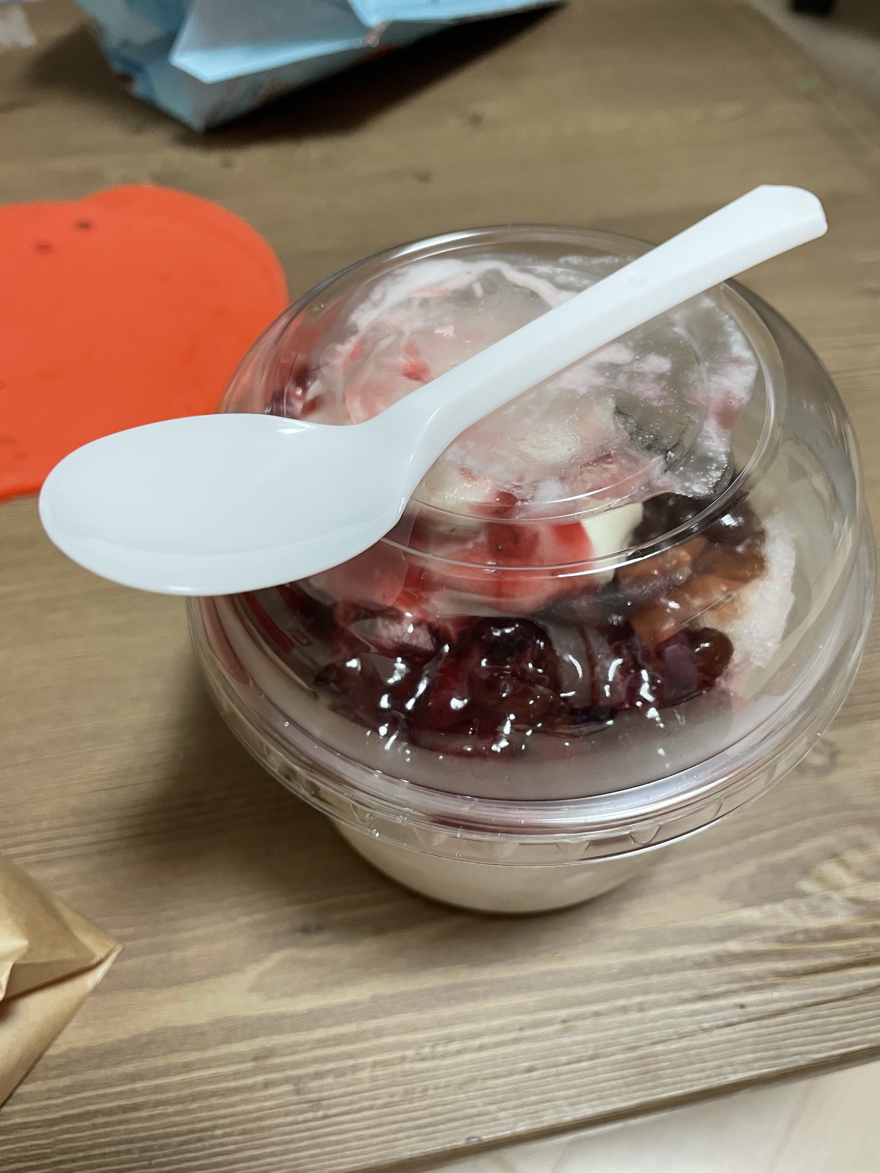 이렇게 먹으니 정말 예전에 먹던 팥빙수 생각이 나더라구요. 지금은 우유빙수가 대부분이지만 예전에는 얼음을 갈아서 만든 빙수가 주류였으니깐요! 물론 얼음 특성상, 꽁꽁 얼었을 때는 플라스틱 숟가락으로 먹기는 약간 어려워서 밥숟가락을 이용했습니다. 저는 너무 맛있었어요. 가볍게 먹기 좋고, 가성비도 좋구요.