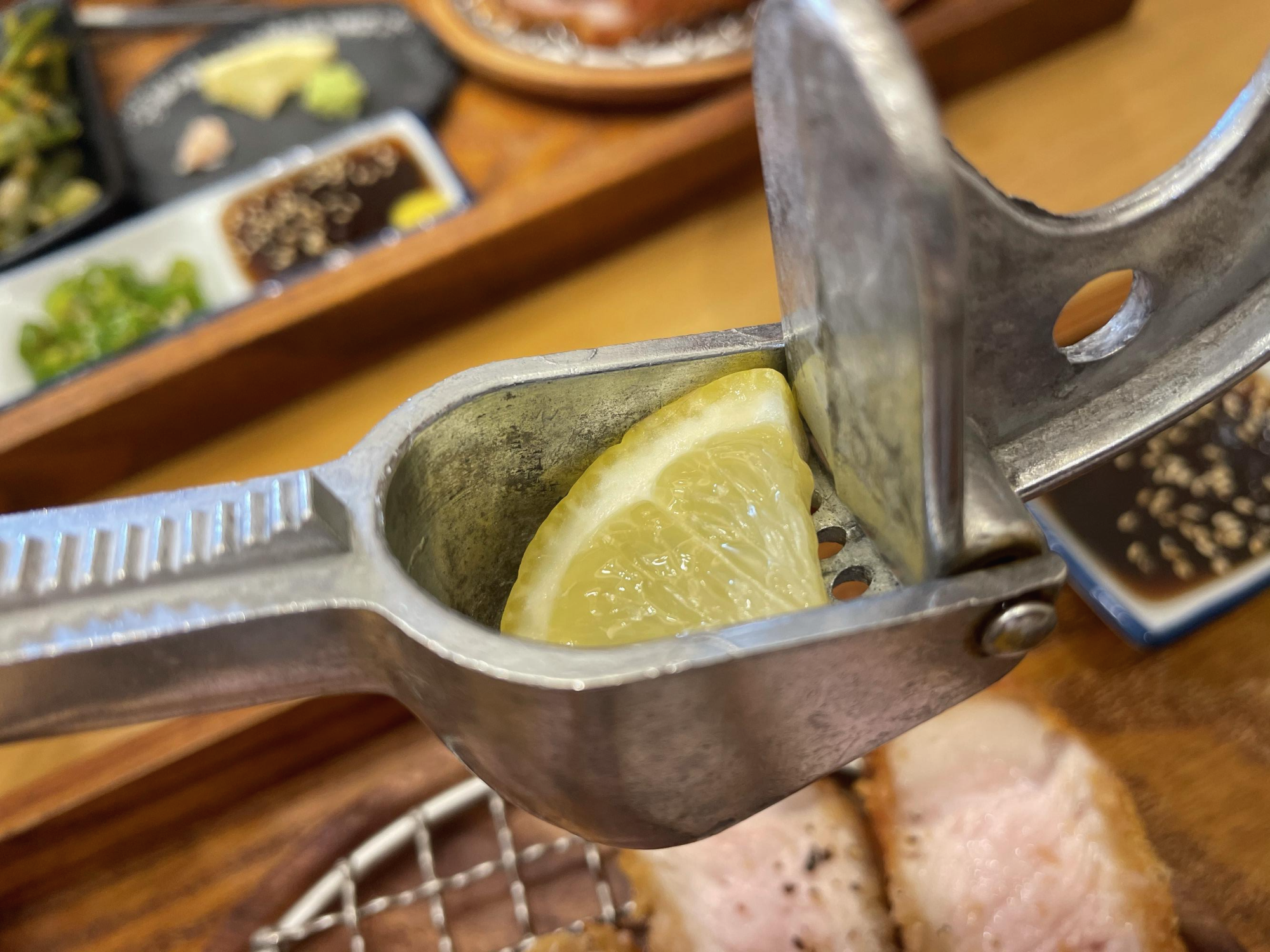 레몬은 이렇게 착즙기에 넣고, 돈카츠에 뿌려 먹으면 됩니다.