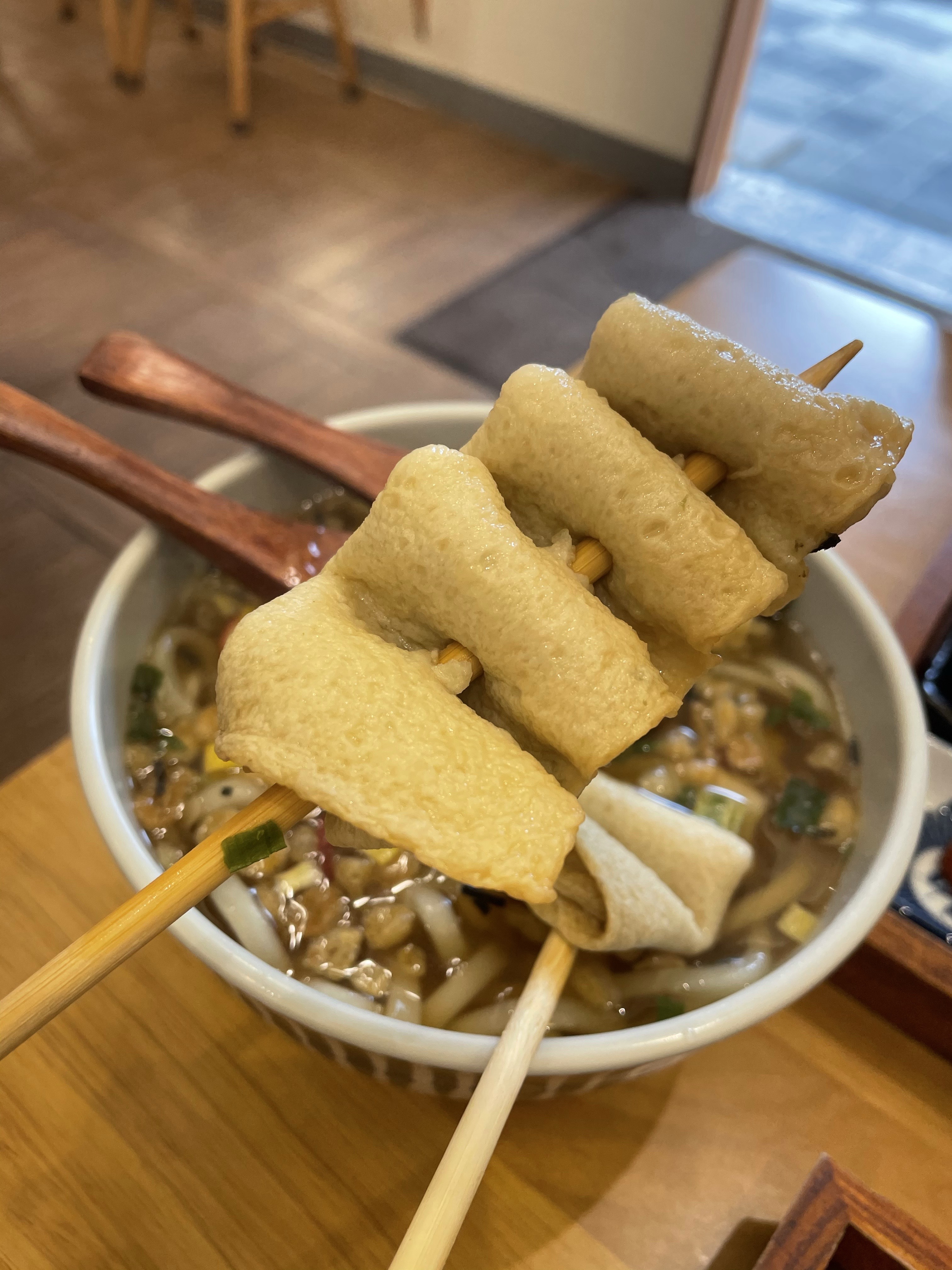 마지막으로 나온 우동입니다. 꼬치 어묵이 두 개 들어가 있네요.