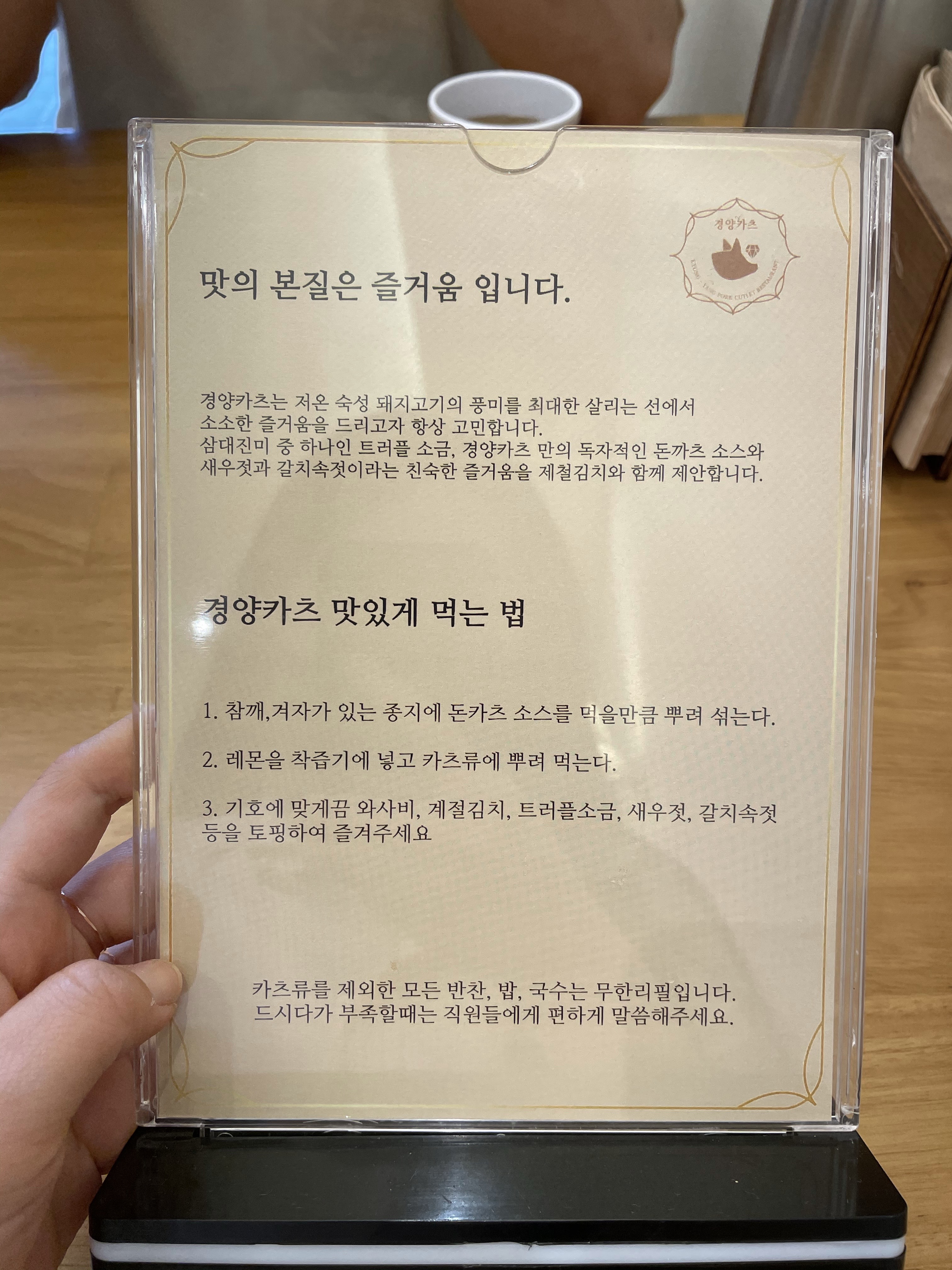 경양카츠는 주문과 동시에 조리가 시작되기 때문에 다소 시간이 걸린다고 해요. 실제로 음식이 나오는데 조금 걸린 것 같았어요!