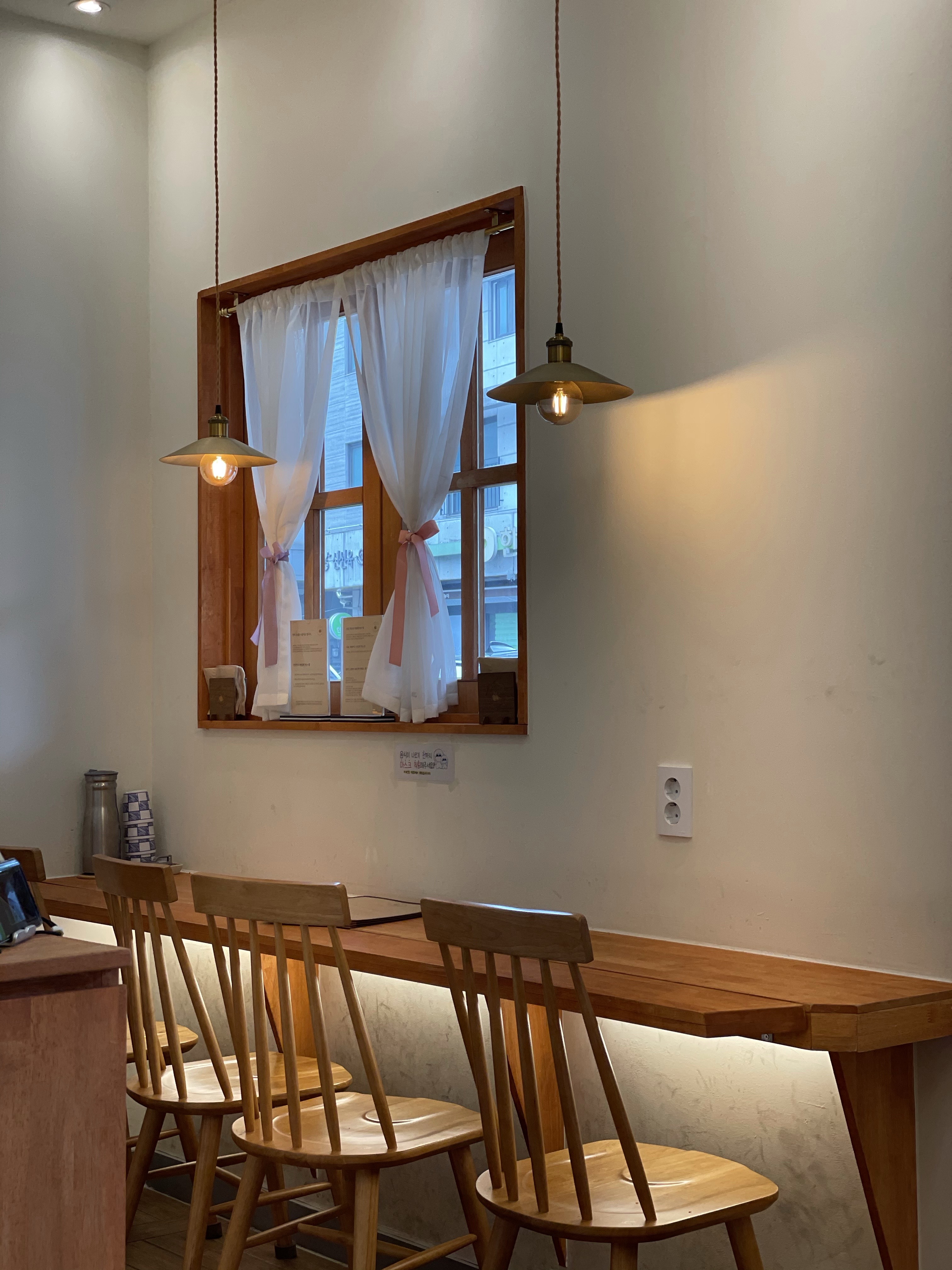 매장은 좁은 편으로 테이블이 몇 개 없어서 2-4인 손님 위주로 오시는 게 좋을 것 같았어요. 이런 바 자리도 있었는데, 저희는 테이블석에 앉았습니다.