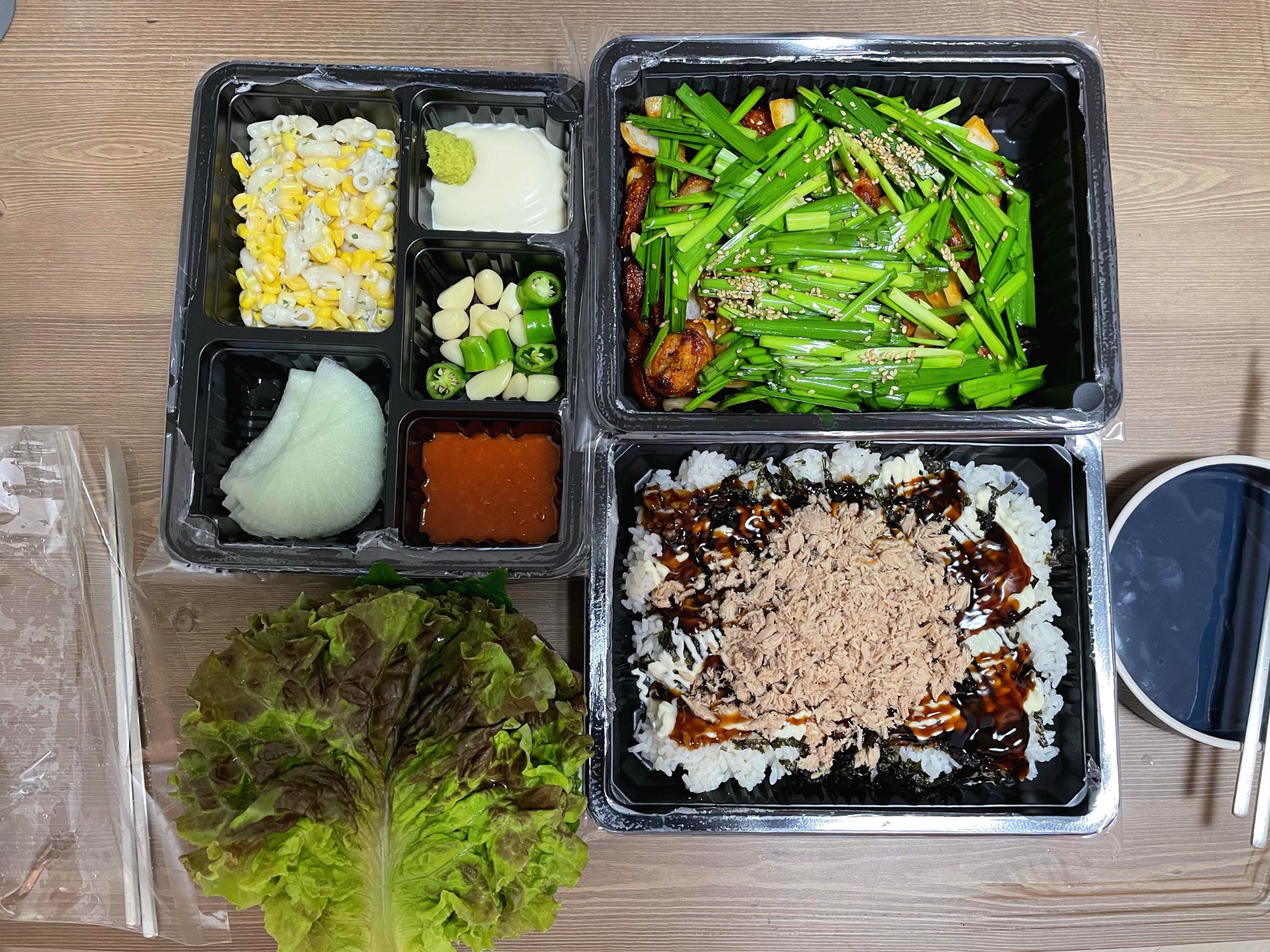 숯불직화막창을 양념구이로 2인 주문했고, 참치마요주먹밥을 추가했어요.