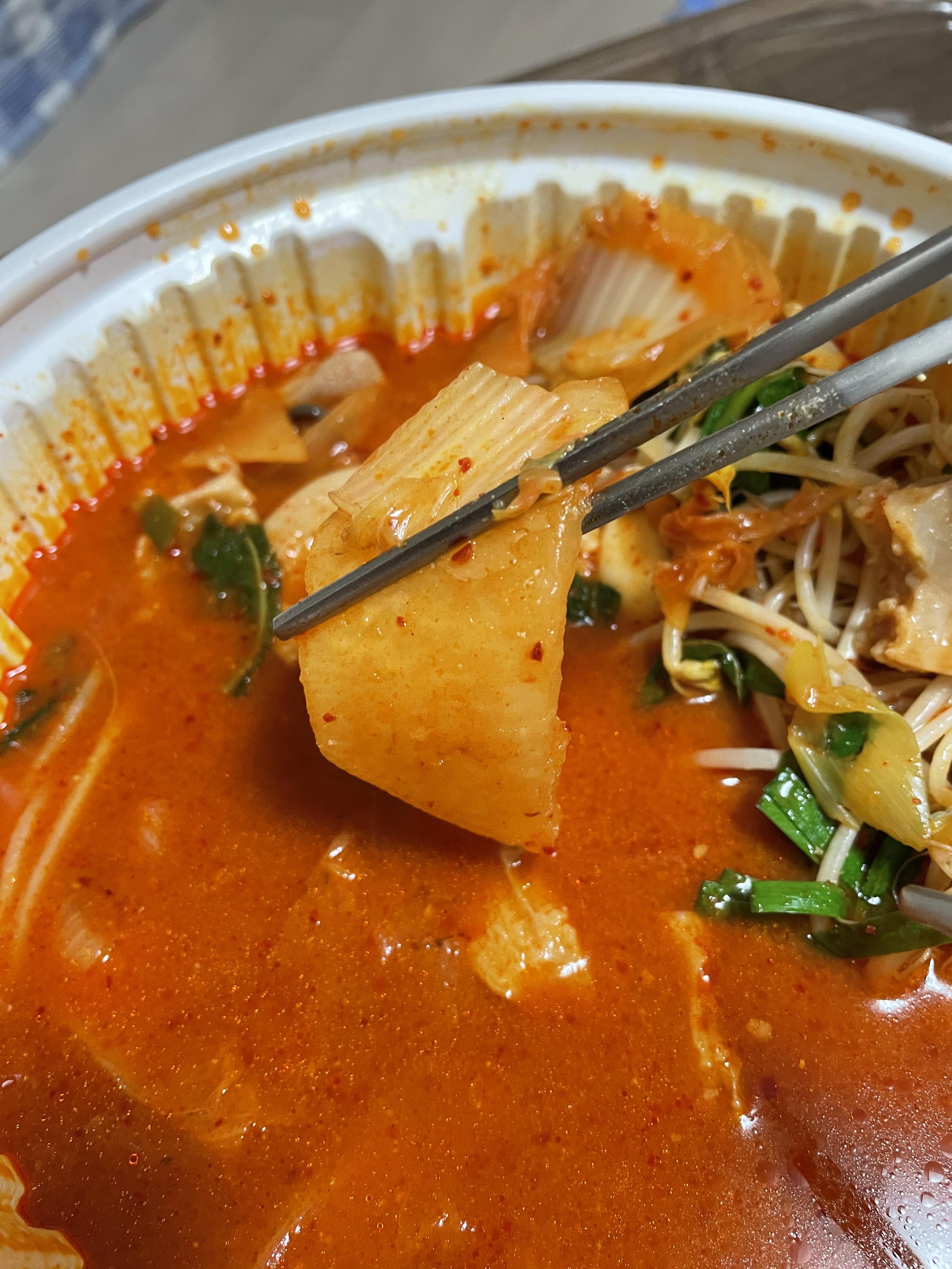 일단 야채가 굉장히 수북하게 많이 들어가 있어서 좋았습니다. 국물은 얼큰하고 좋았어요.