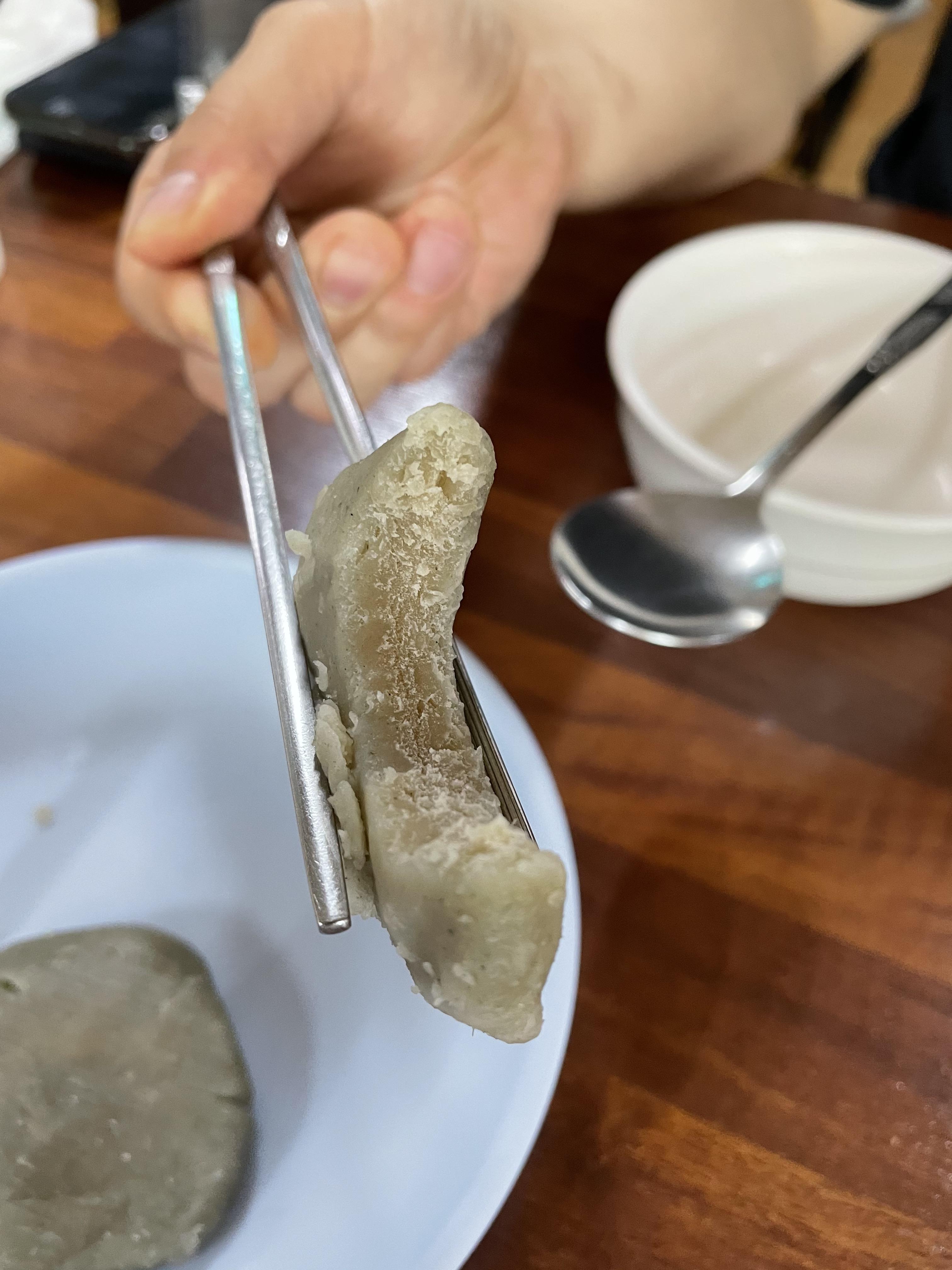 안엔 이런 느낌입니다. 처음 먹어보는 맛이었는데, 식감도 특이하고 약간 달달하면서 제가 알고 있는 그 개떡 맛이 나기도 하고.