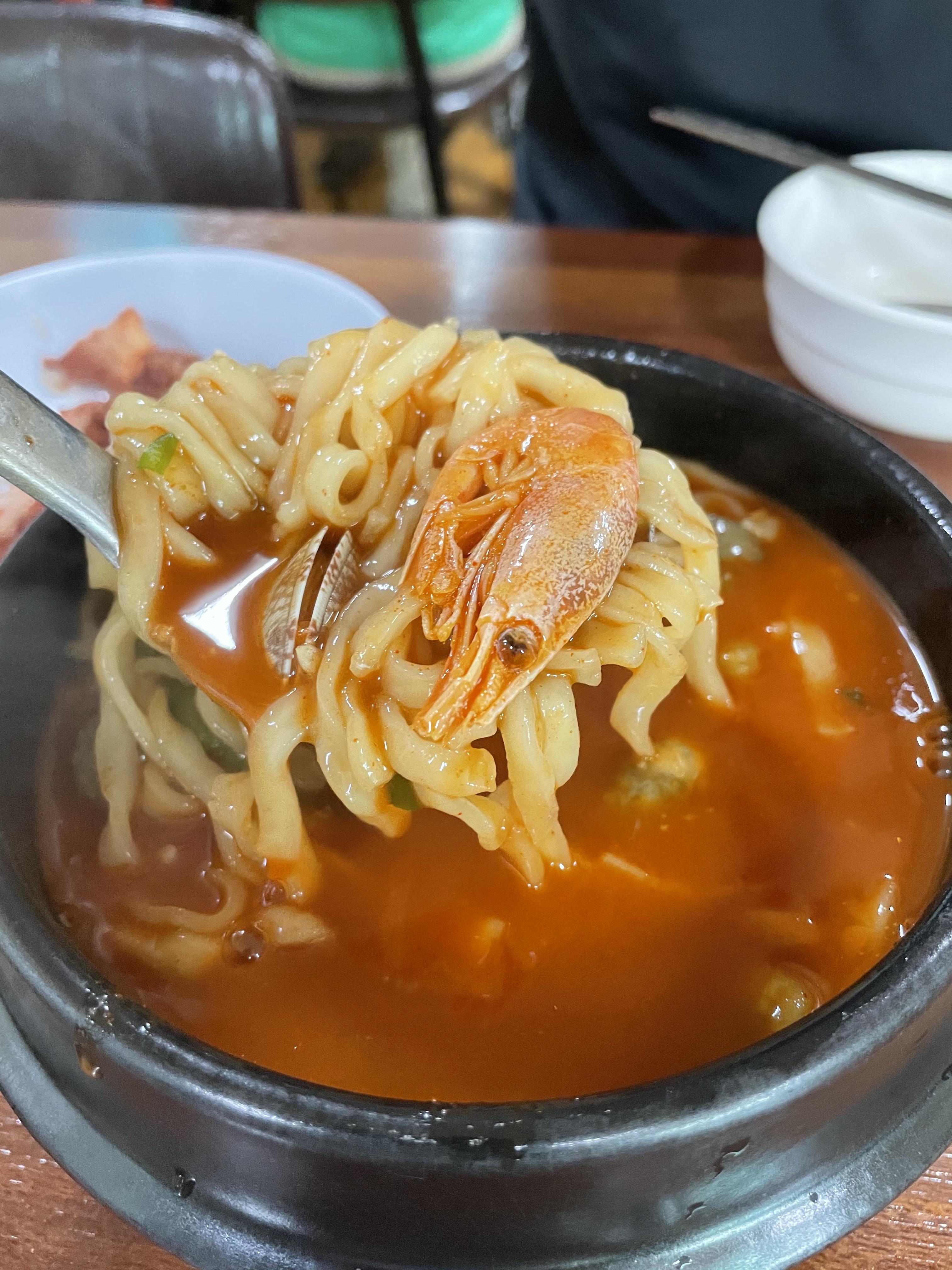 새우와 미더덕, 조개 등 해산물도 들어있었어요. 미더덕은 먹을 때 입천장 조심해야 할 것 같아요. 뜨거웠어요. ㅠ 겨울에 먹으면 속이 든든하고 참 좋을 것 같았어요.