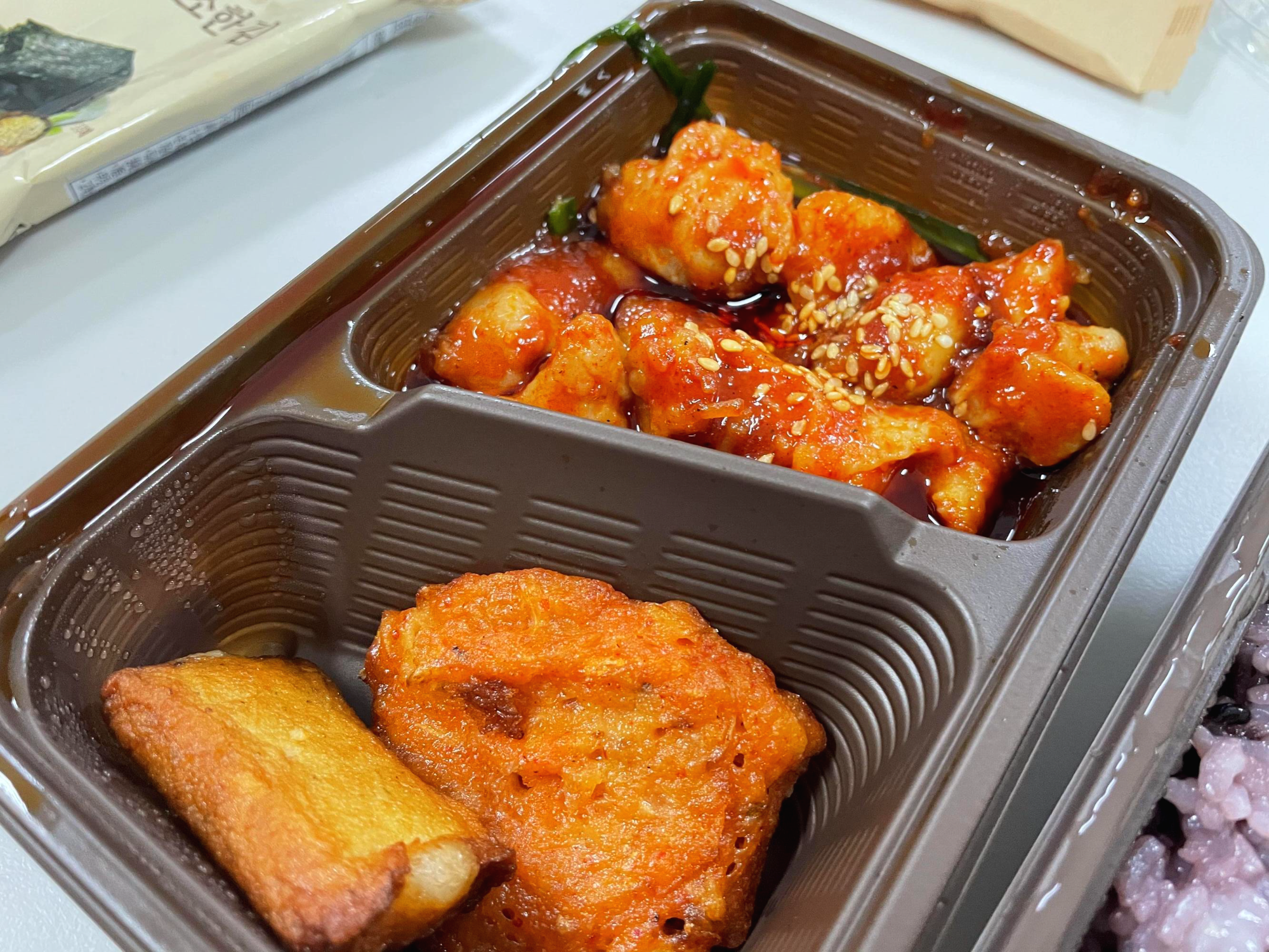 김은 몇 장 안 들어 있었어요. 밥에 비해 반찬이 적은 느낌이었어요.