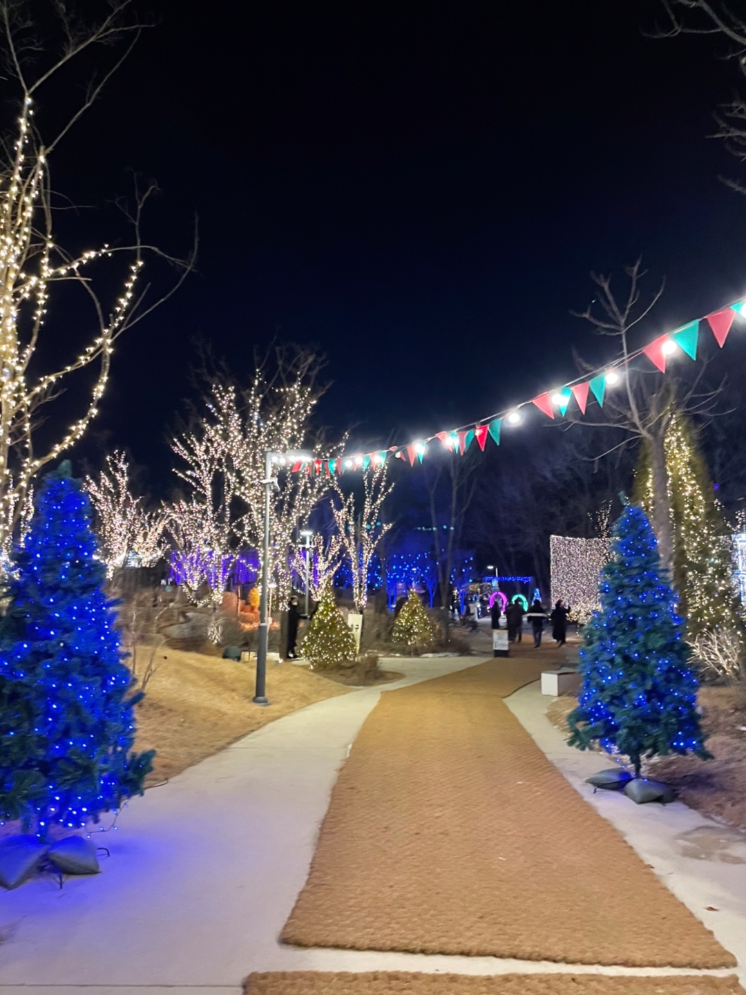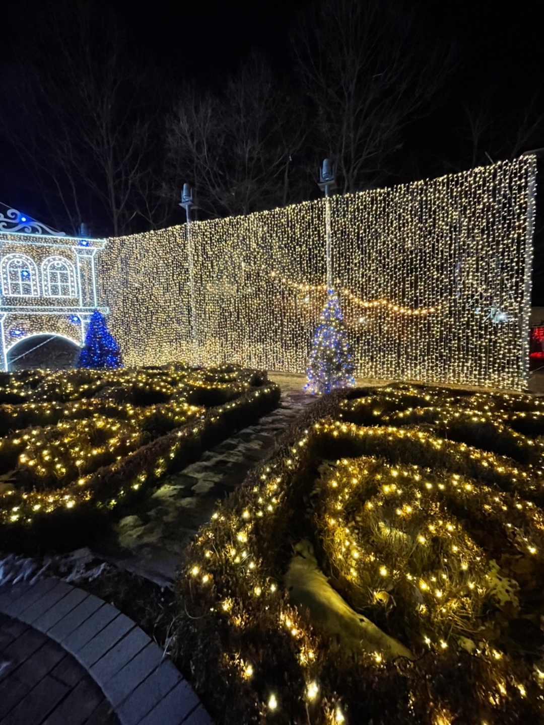 빛들이 수놓아진 터널이었어요. 너무 예쁘더라고요! 아 그리고 정원 곳곳의 포토존 스폿에는 핸드폰 거치대가 있어서 삼각대를 챙겨 오지 않아도 커플사진을 찍을 수 있게 해 놓았더라고요. 하지만 아이폰으로 사용해본 결과 제대로 거치가 안되더라고요. 아쉽..