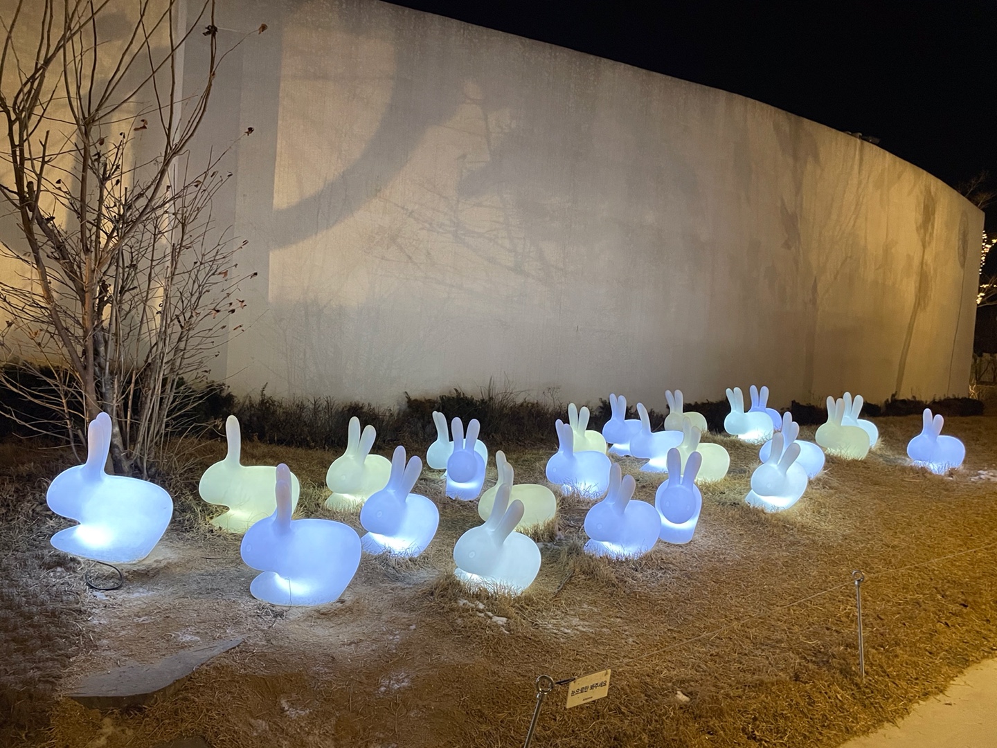 아직 라이팅쇼 시작 시간이 안되어 둘러보고 오기로 하고 지나온 토끼. 대형 토끼가 있네요.