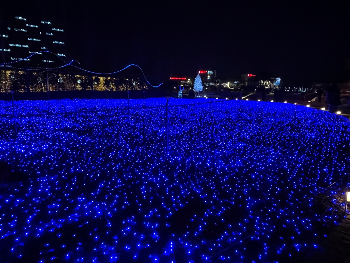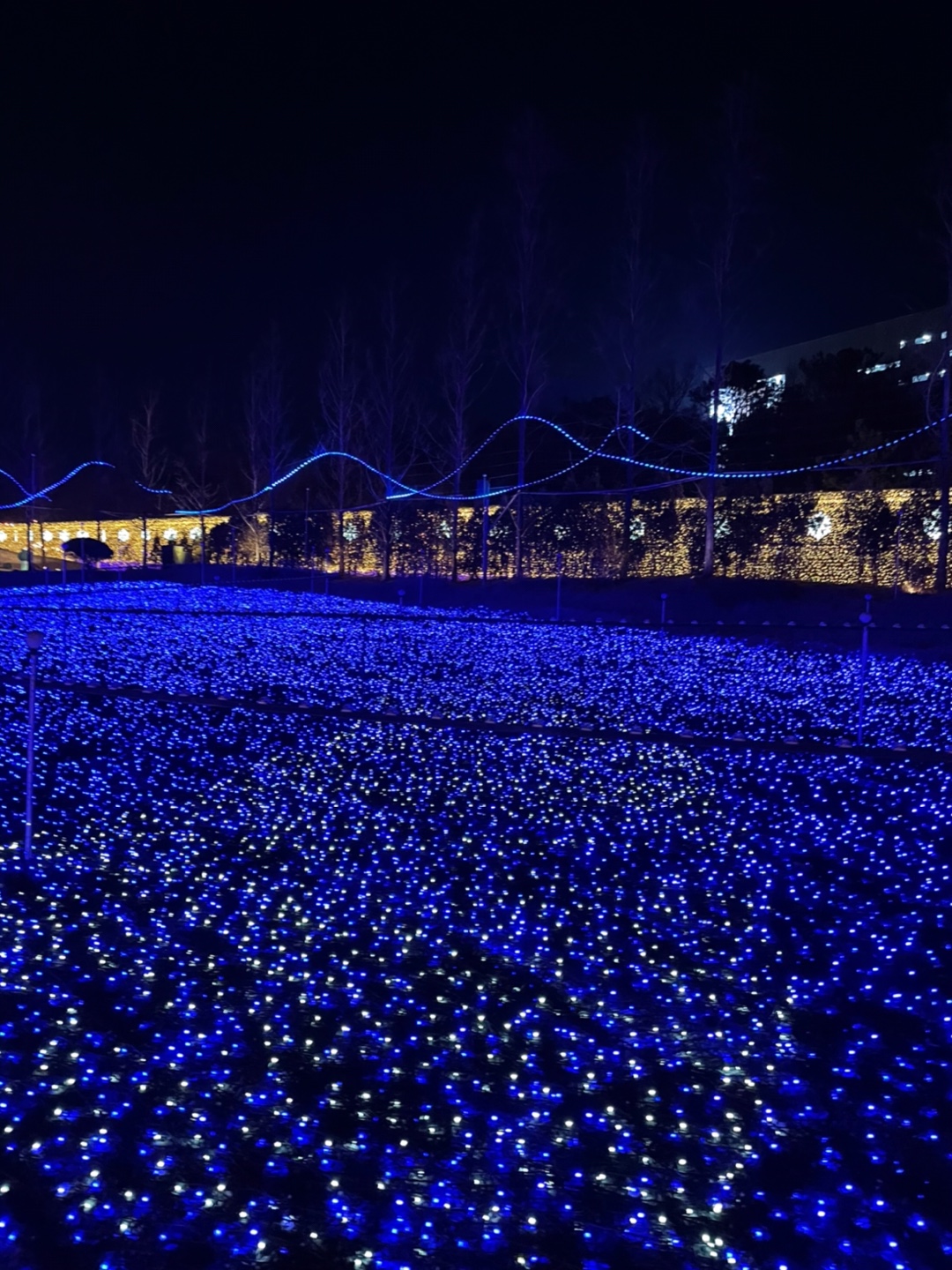 개인적으로 정원에서 가장 예뻤던 공간 중 하나인데요. 파란색 불빛이 꽤나 큰 공간을 덮고 있었어요!