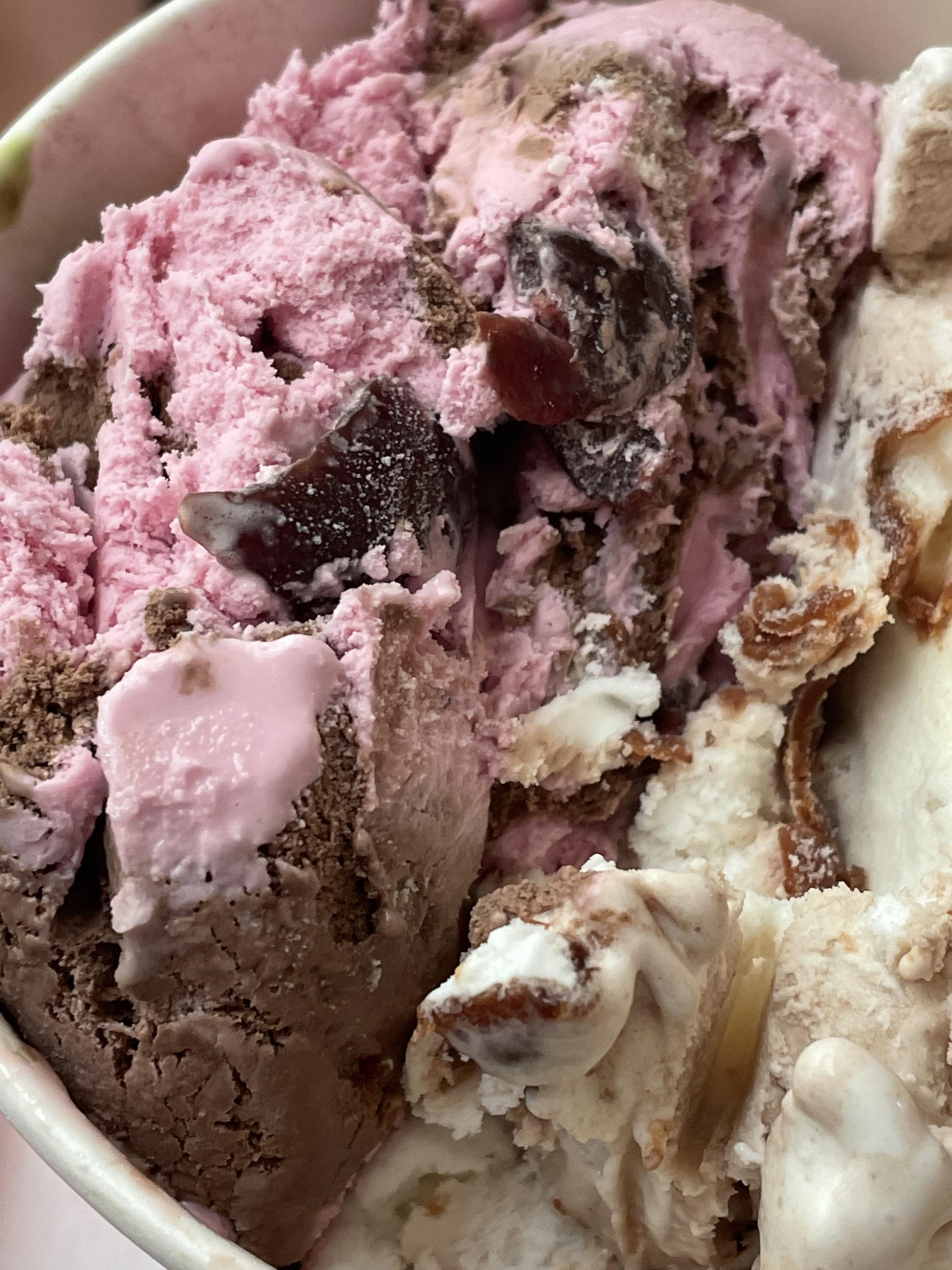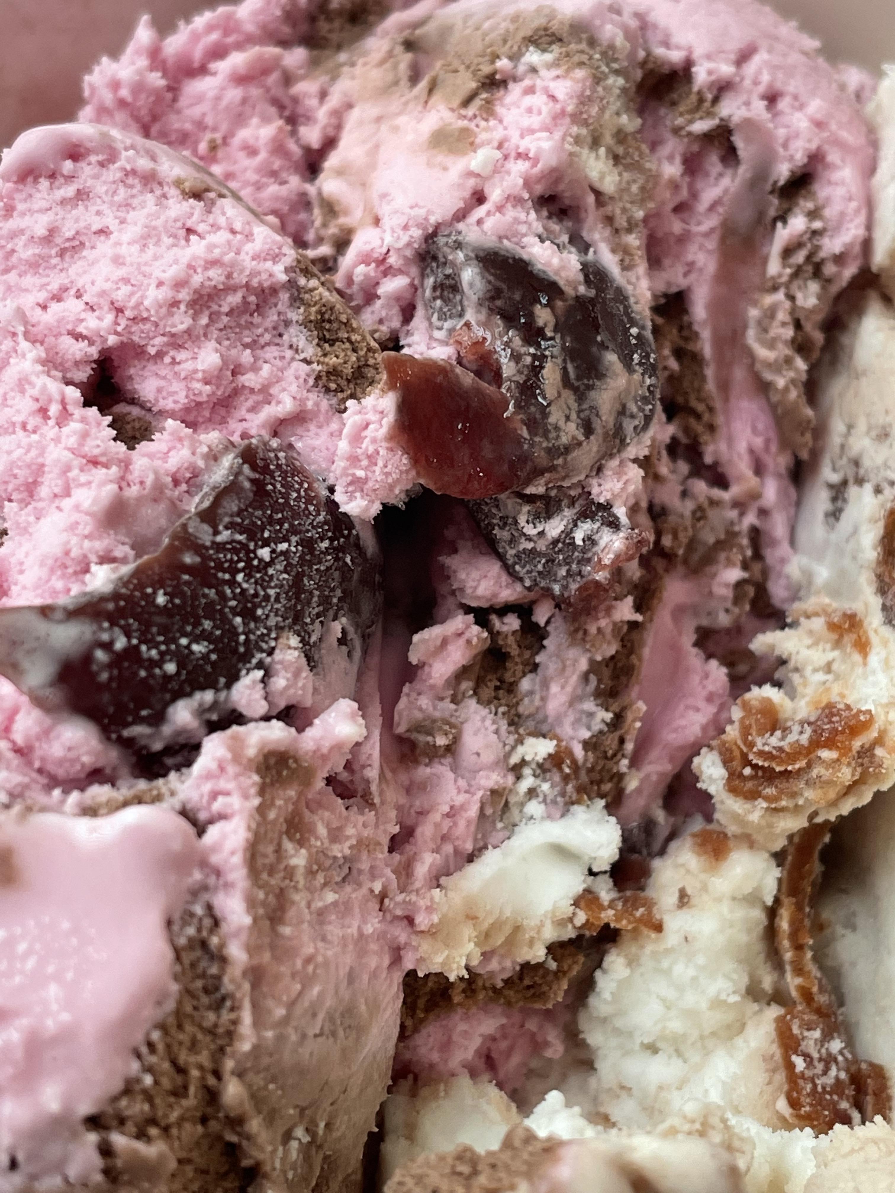 일단 체리쥬빌레에 초콜릿 아이스크림이 섞여있고, 중간중간 생체리가 들어가 있었어요. 저는 개인적으로 체리가 더 많이 들어갔으면 좋았겠다는 생각을 했습니다.