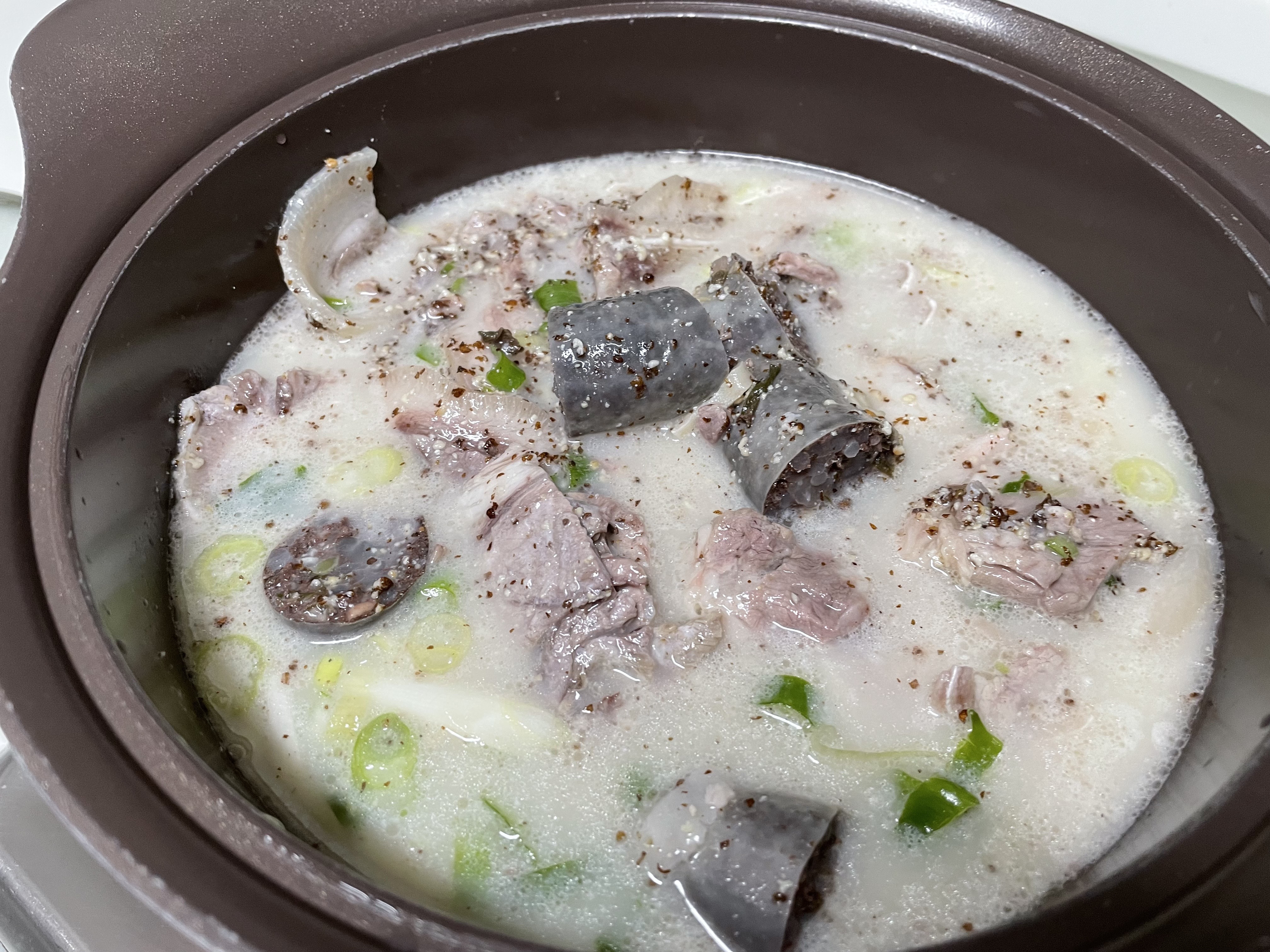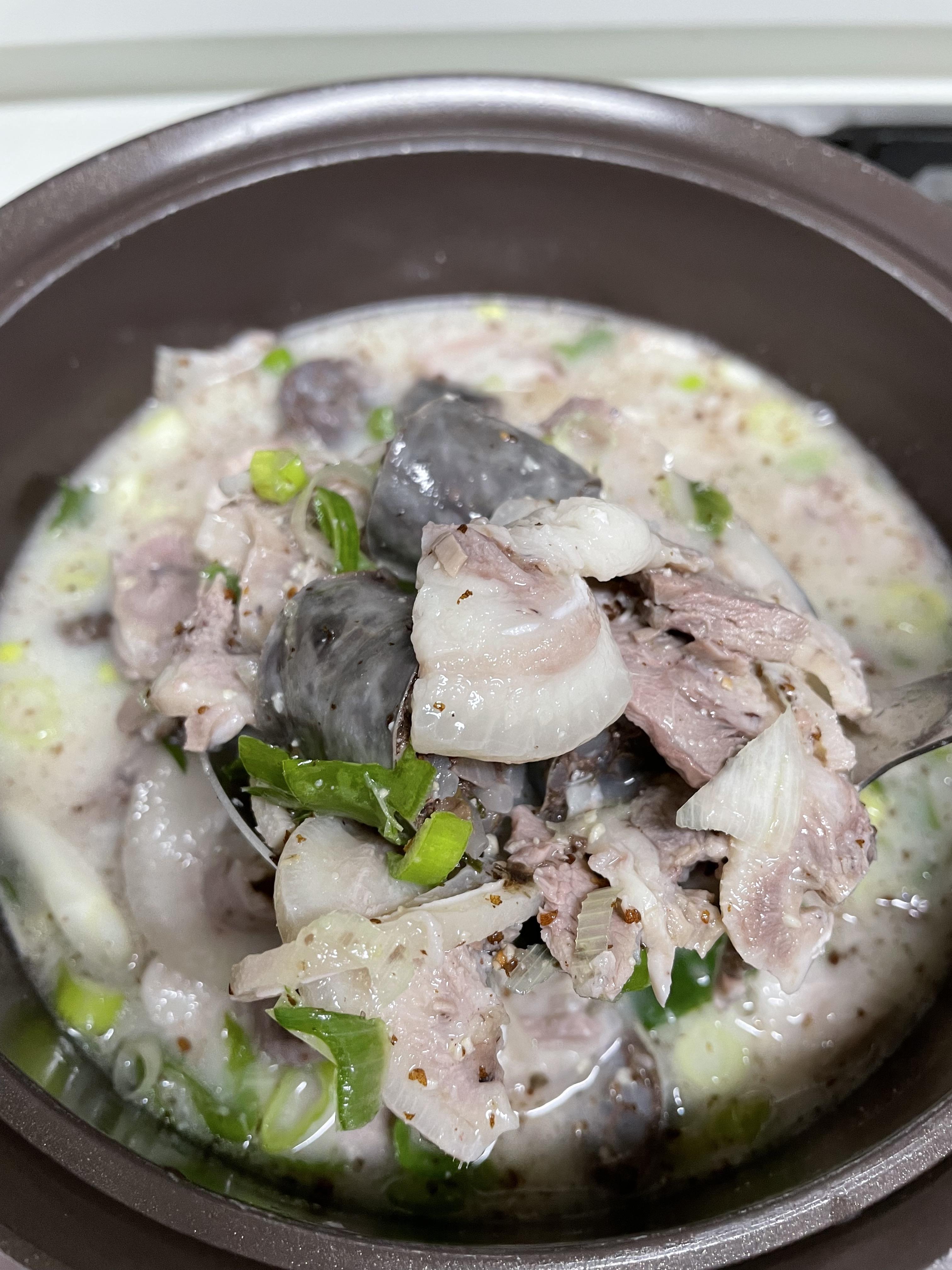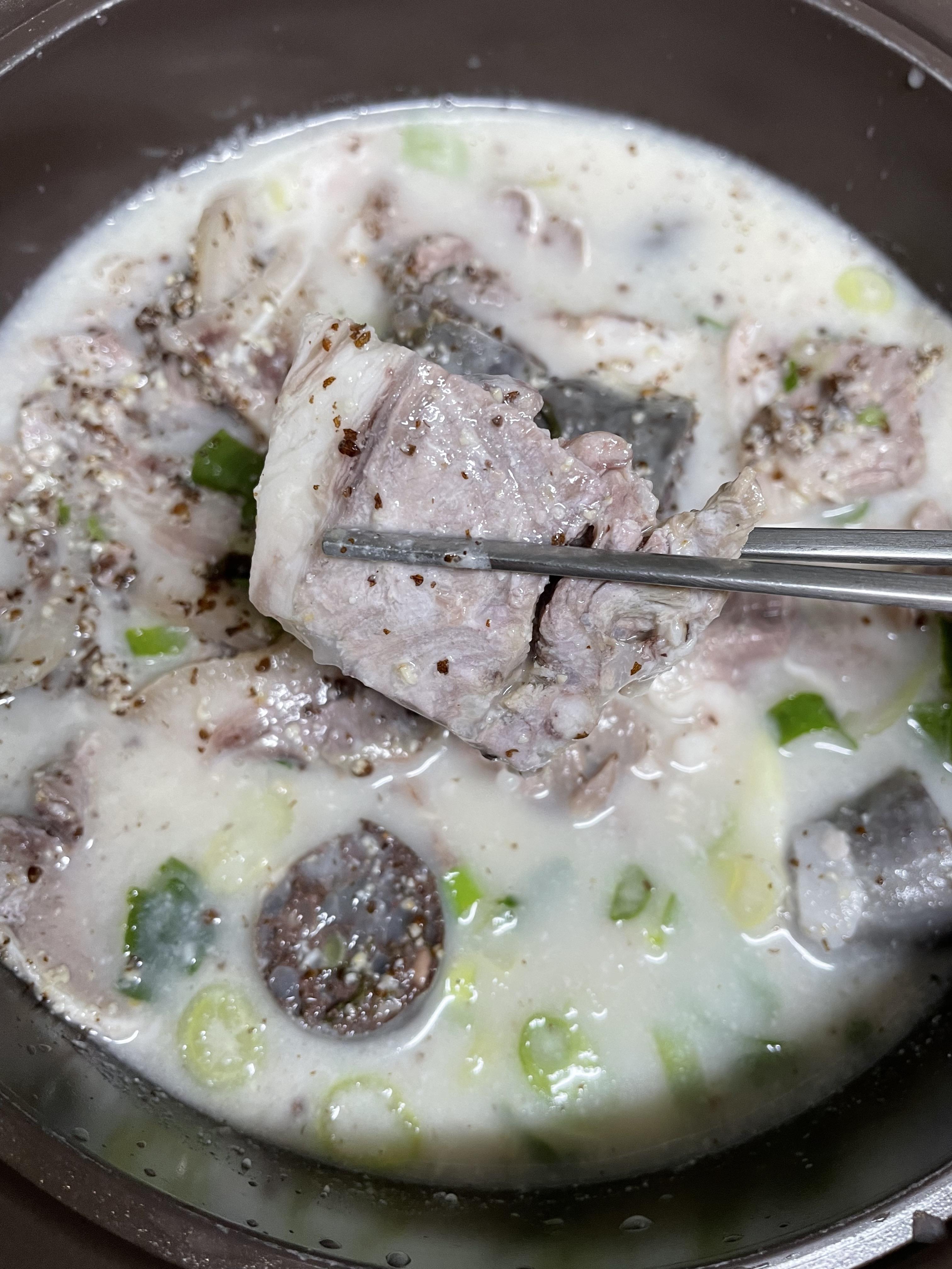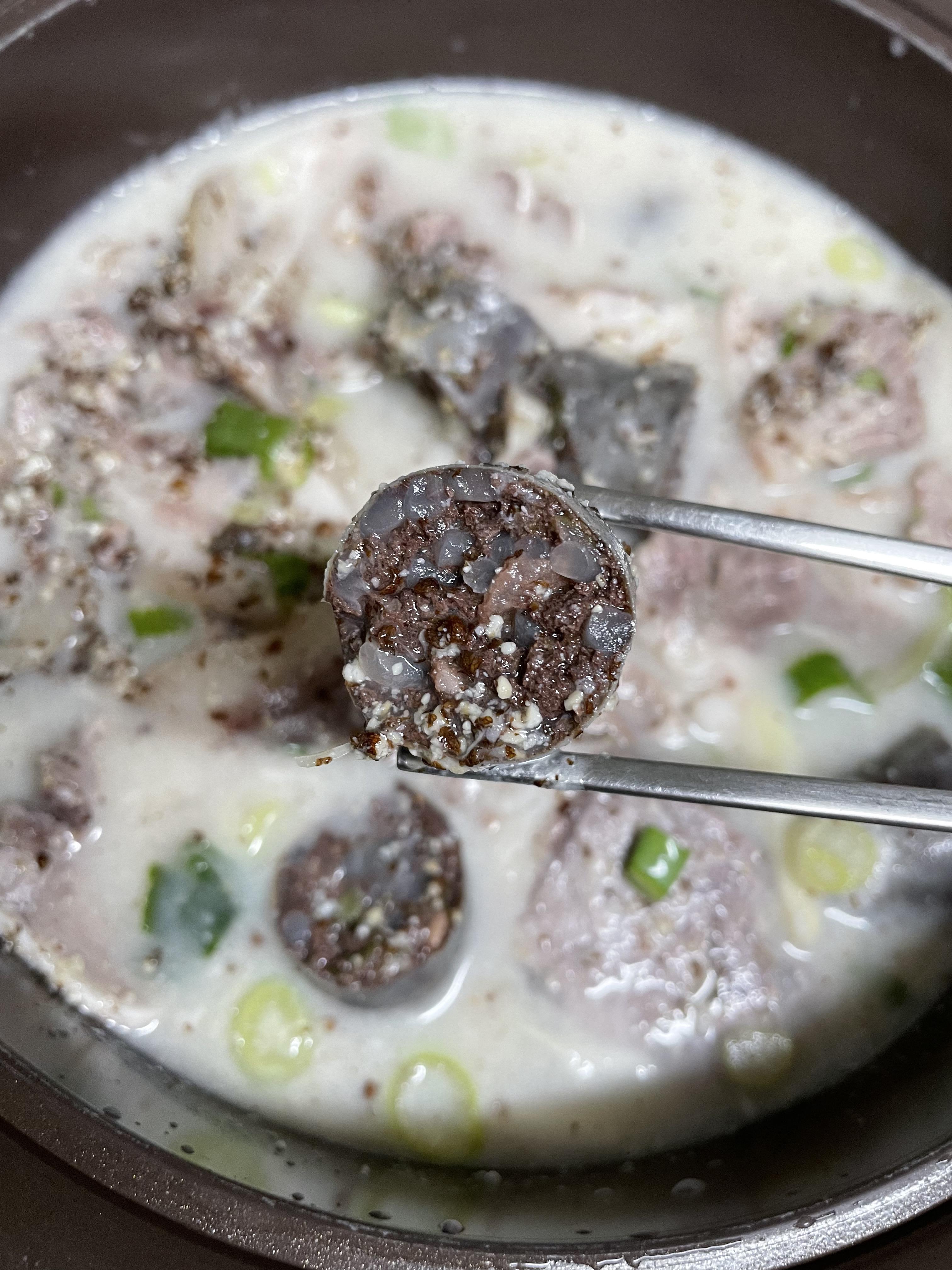 다 끓였고, 이제 먹어보아요! 순대가 피순대지만 뻑뻑하지 않아서 좋았어요.