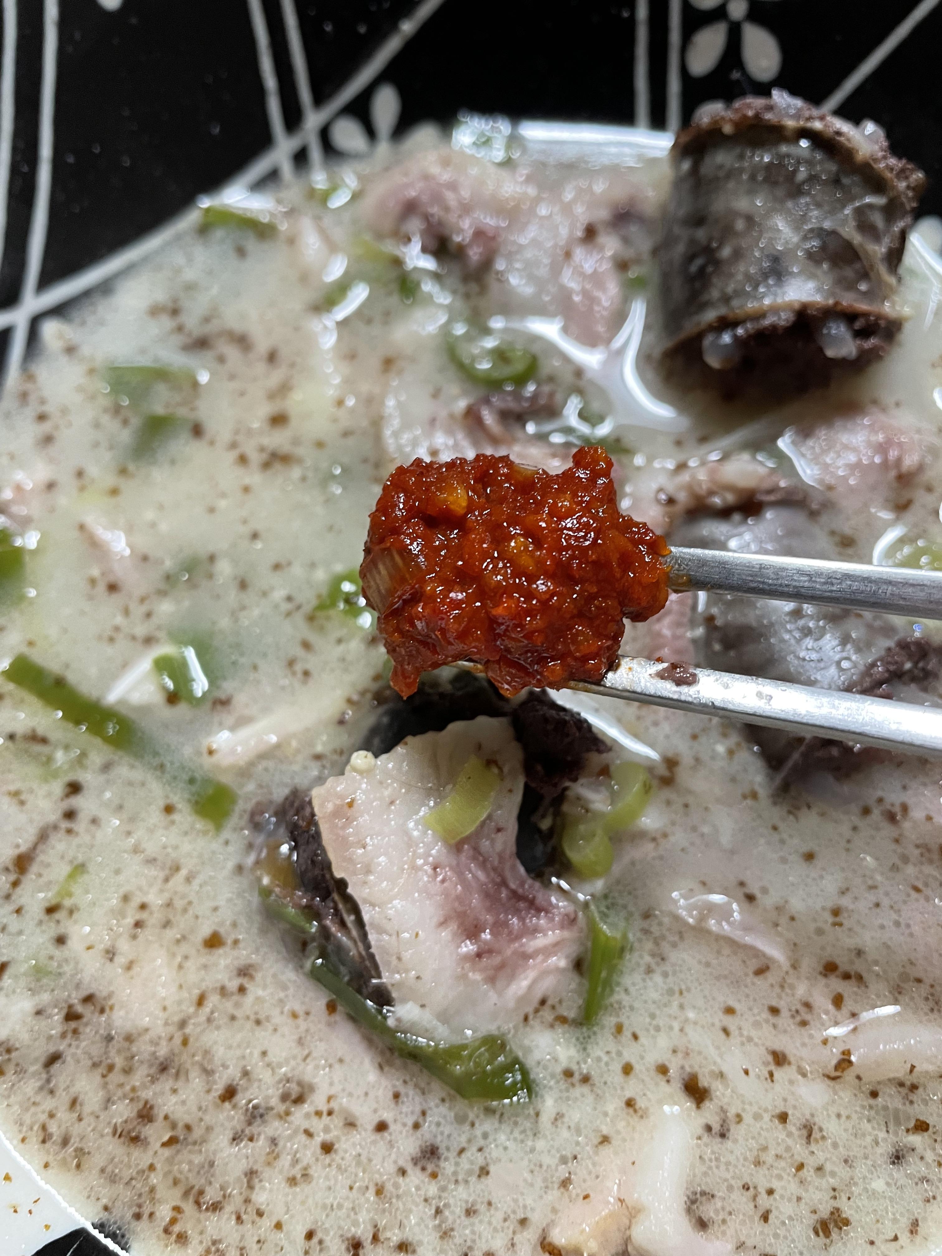 일단 기본적으로 다진 양념과 새우젓이 같이 포장됩니다. 저는 국물에 다진 양념을 풀어넣고, 순대나 머리 고기는 새우젓에 찍어먹으면 맛있더라구요!
