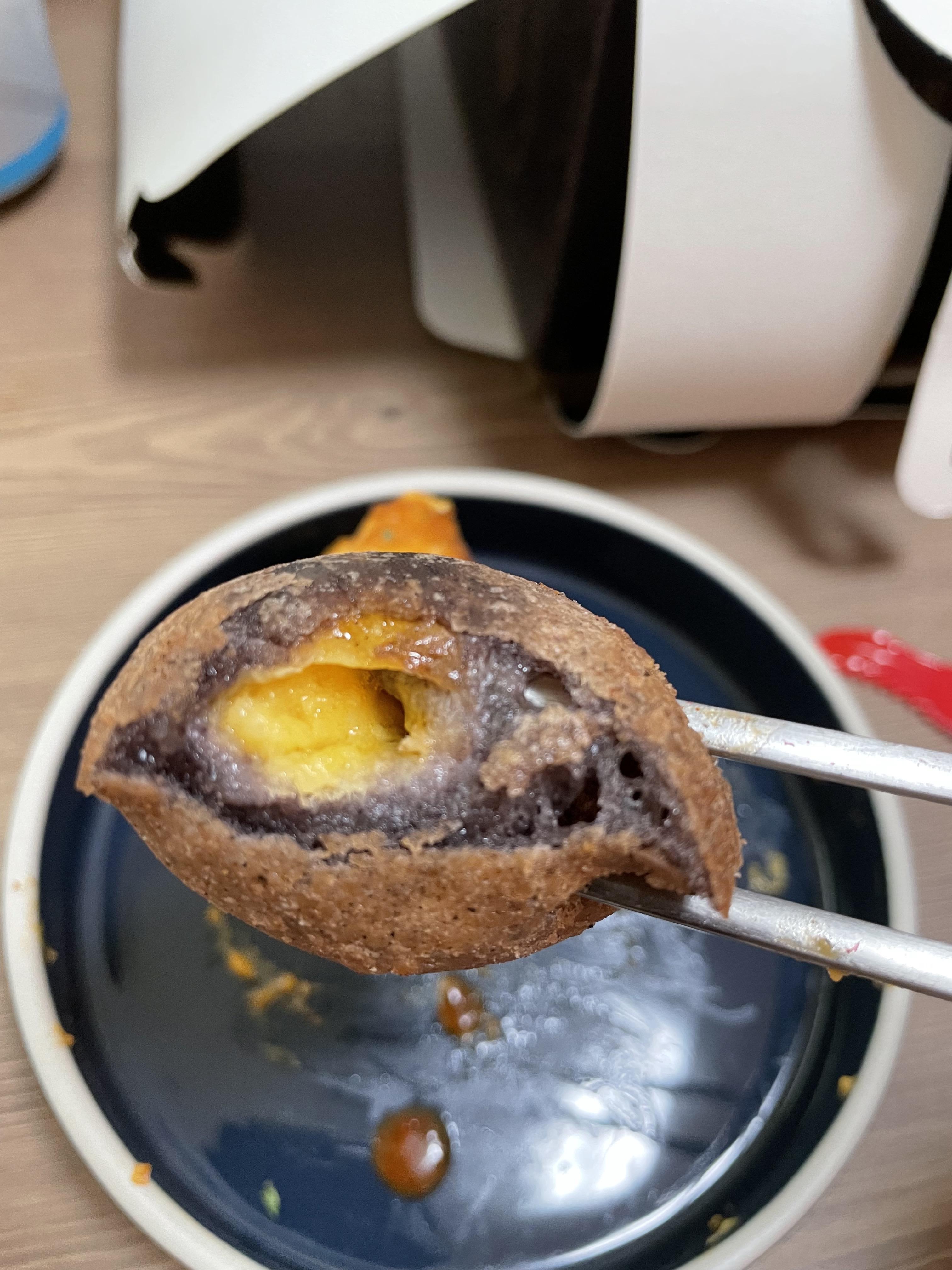 푸라닭 치즈볼은 겉모습도 까매서 좀 다르지만, 속이 체다치즈와 모차렐라 치즈가 같이 들어가서 좋은 것 같아요. 맛있어요!