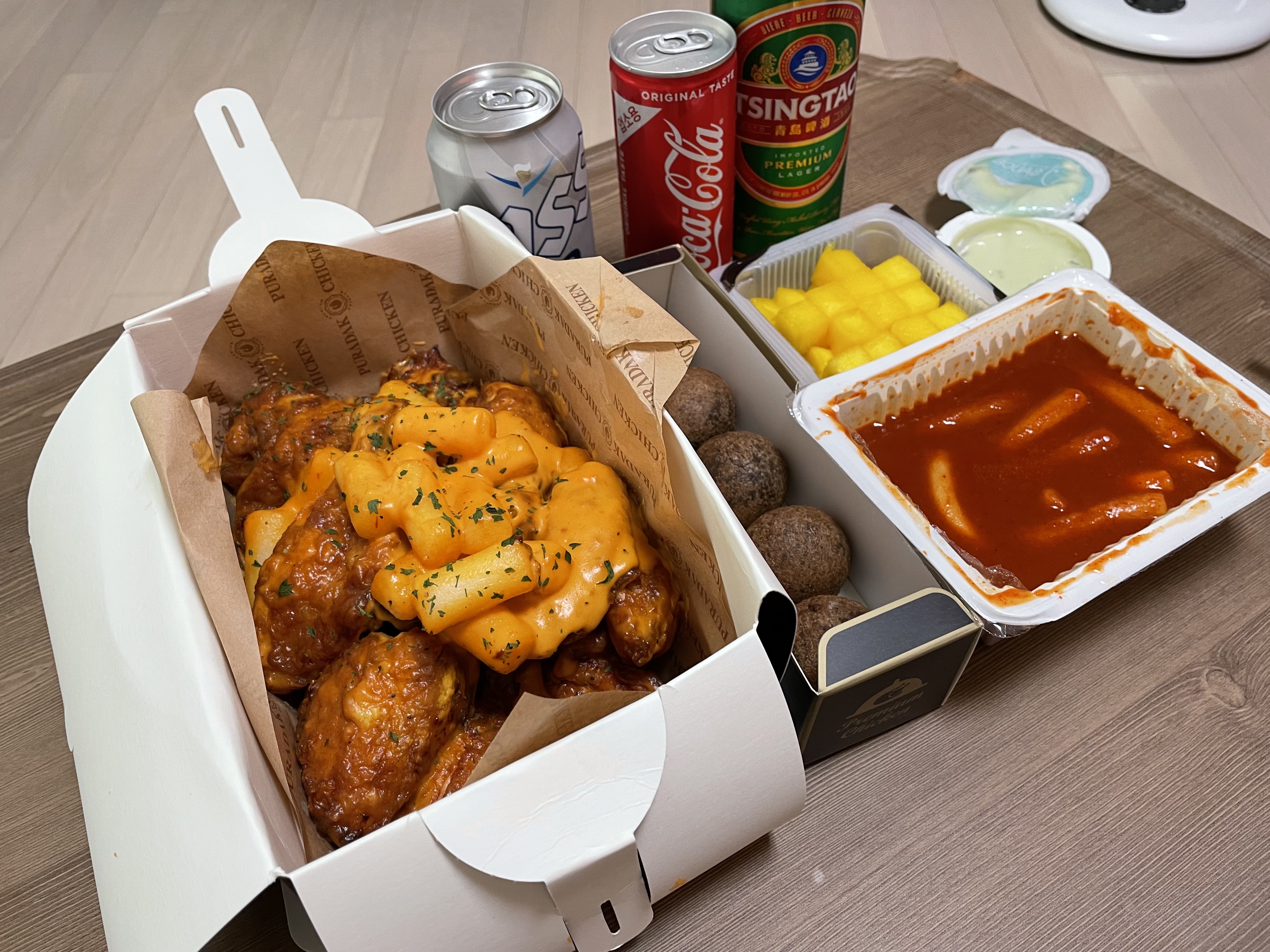역시 치킨+떡볶이 조합은 진리입니다. 오늘은 무알콜 맥주와 칭따오도 함께 했어요.