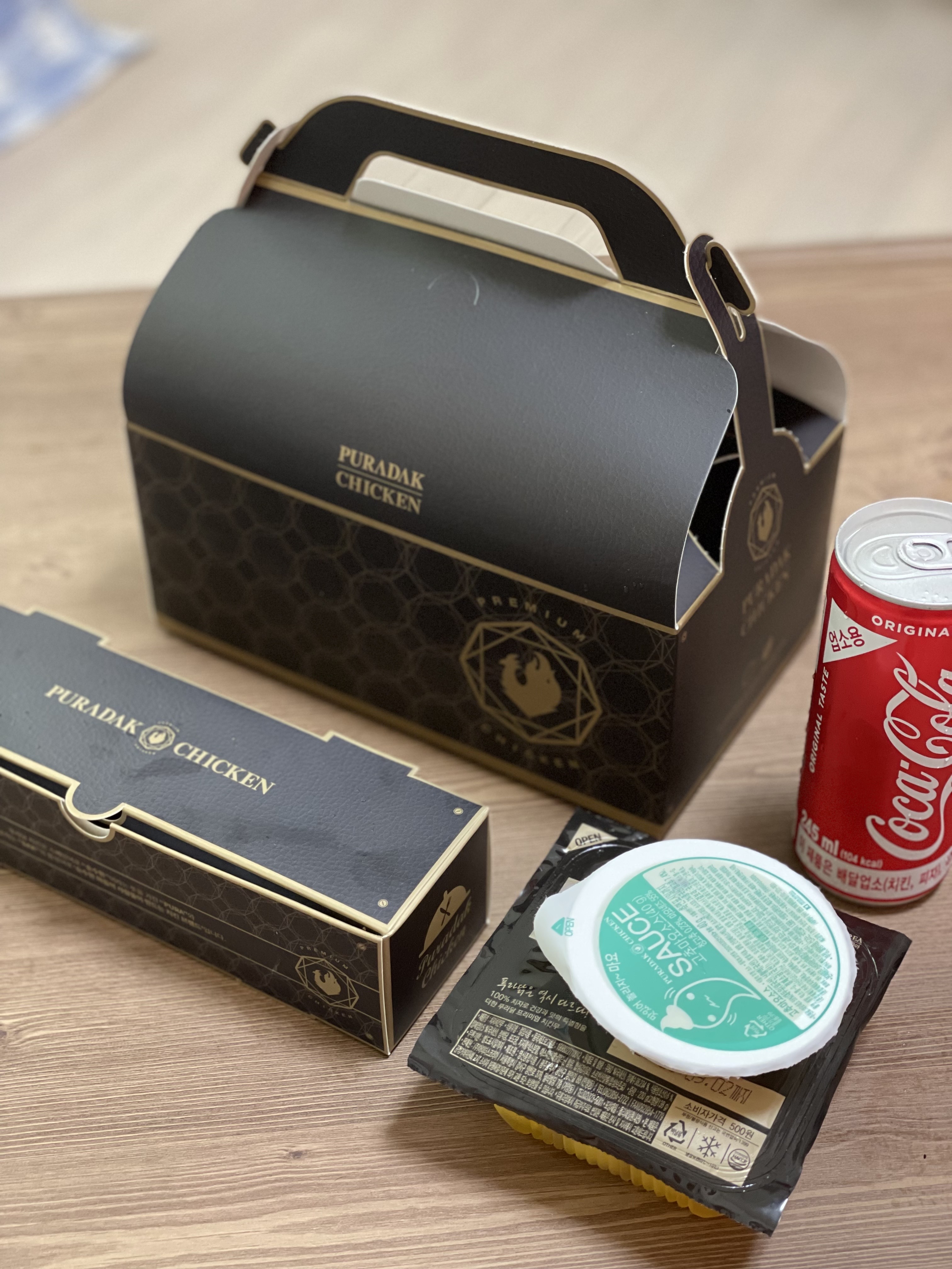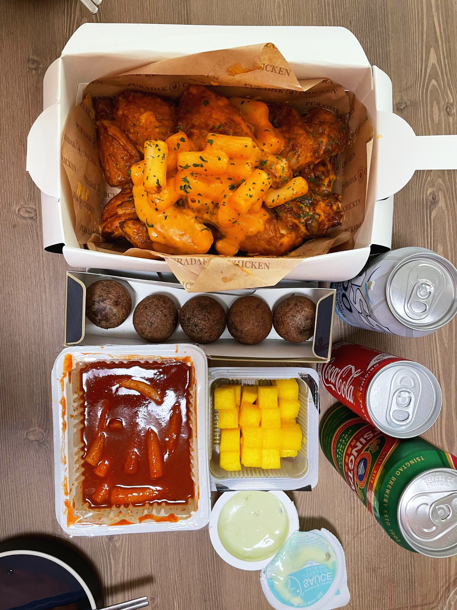 오늘은 저녁에 축구경기가 있어 푸라닭의 투움바치킨과 신전 떡볶이를 주문해서 먹었어요! 저는 투움바치킨을 주문한 게 이번이 3번째인데요. 처음에는 아주 만족했고, 두 번째에는 소스가 부족해서 아쉬웠었어요. 이번에는 다른 지점에서 주문해서 한 번 먹어보려구요.