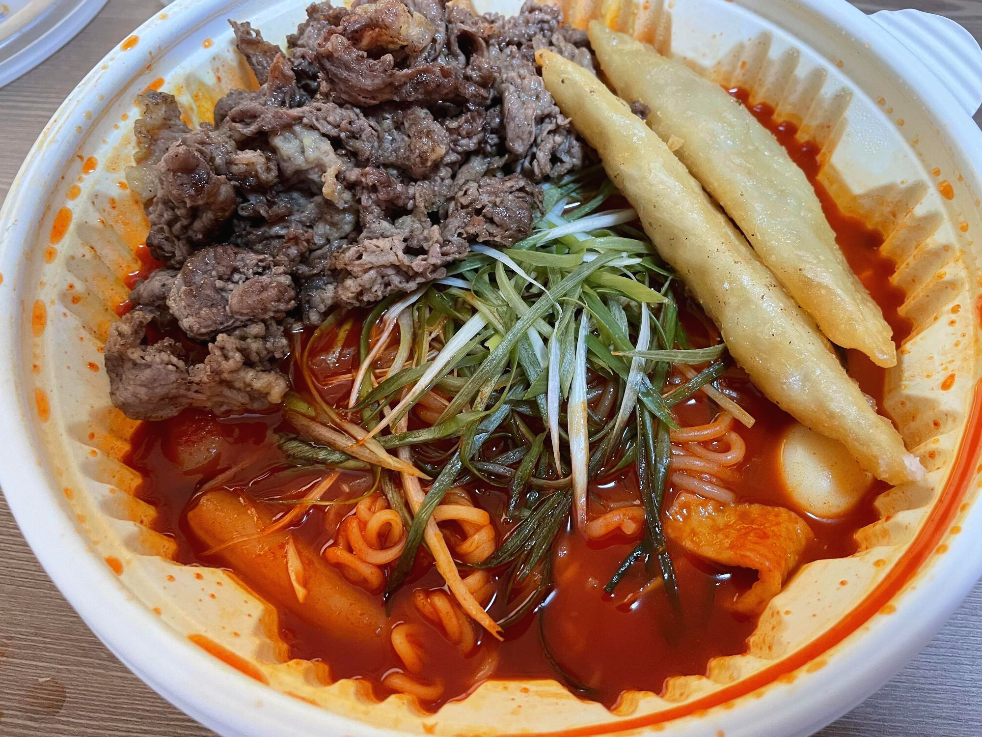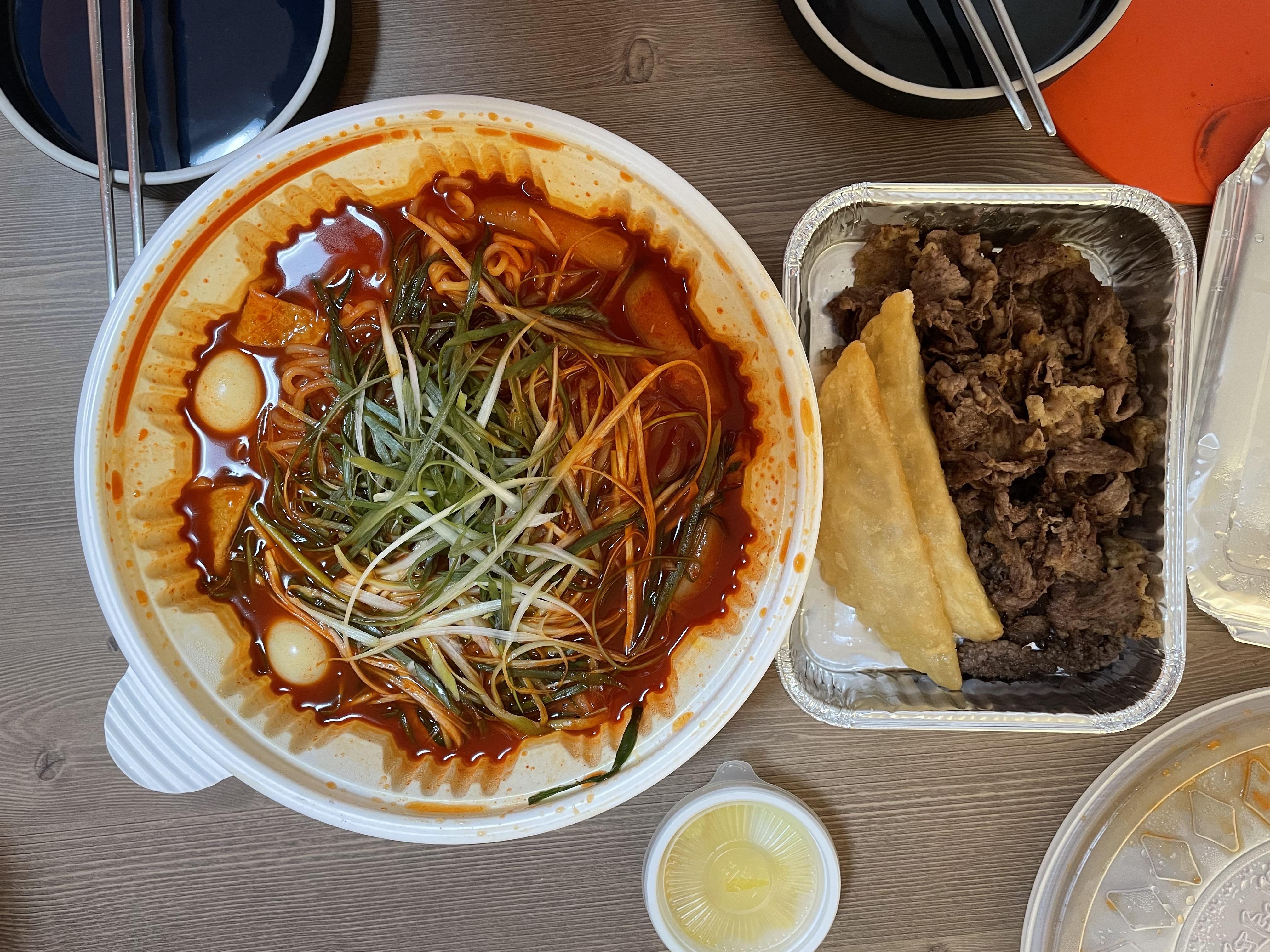 차돌떡볶이 배달은 차돌박이랑 야끼만두가 이렇게 따로 옵니다.