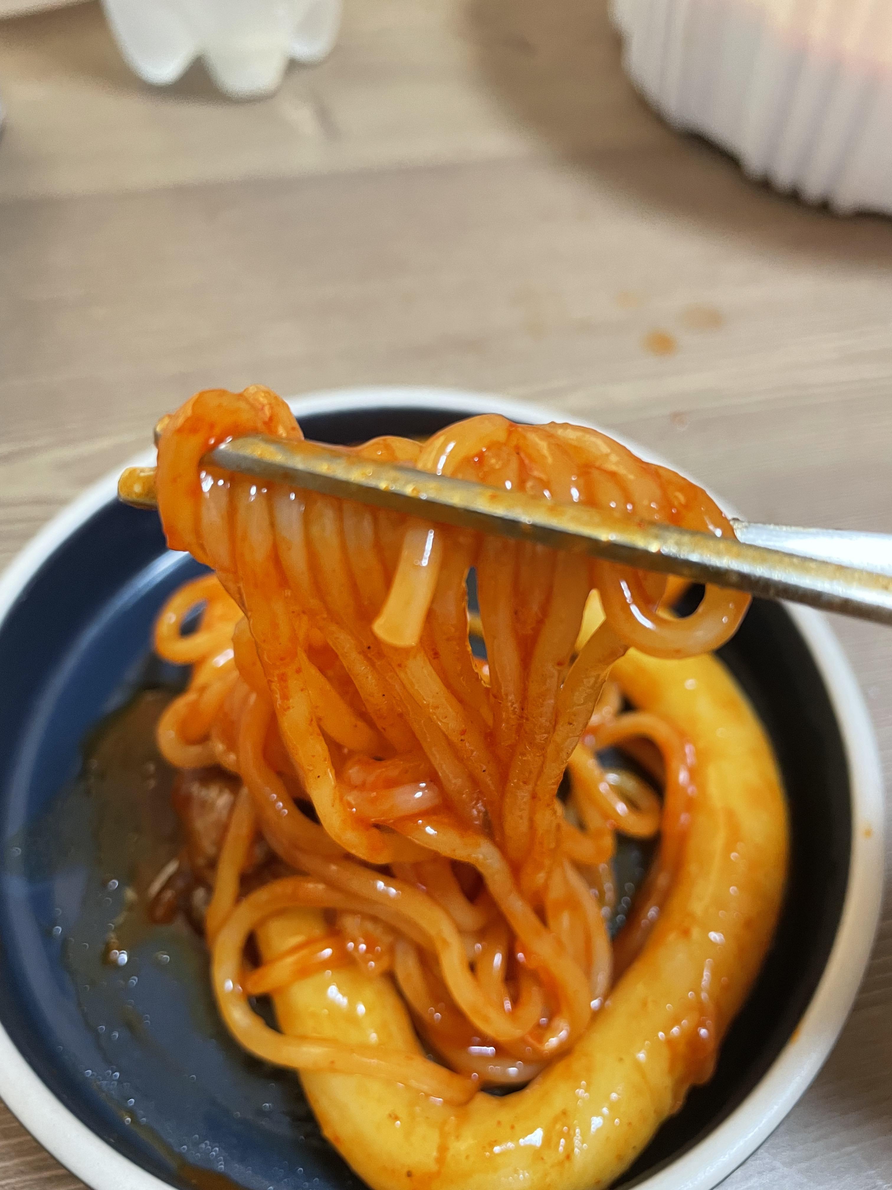 청년다방 떡볶이는 떡이 국수처럼 길어서 후루룩 먹는 재미가 있어요. 잘라서 드시는 분들도 계신데 저는 개인적으로 그냥 드시는 걸 추천드립니다.
