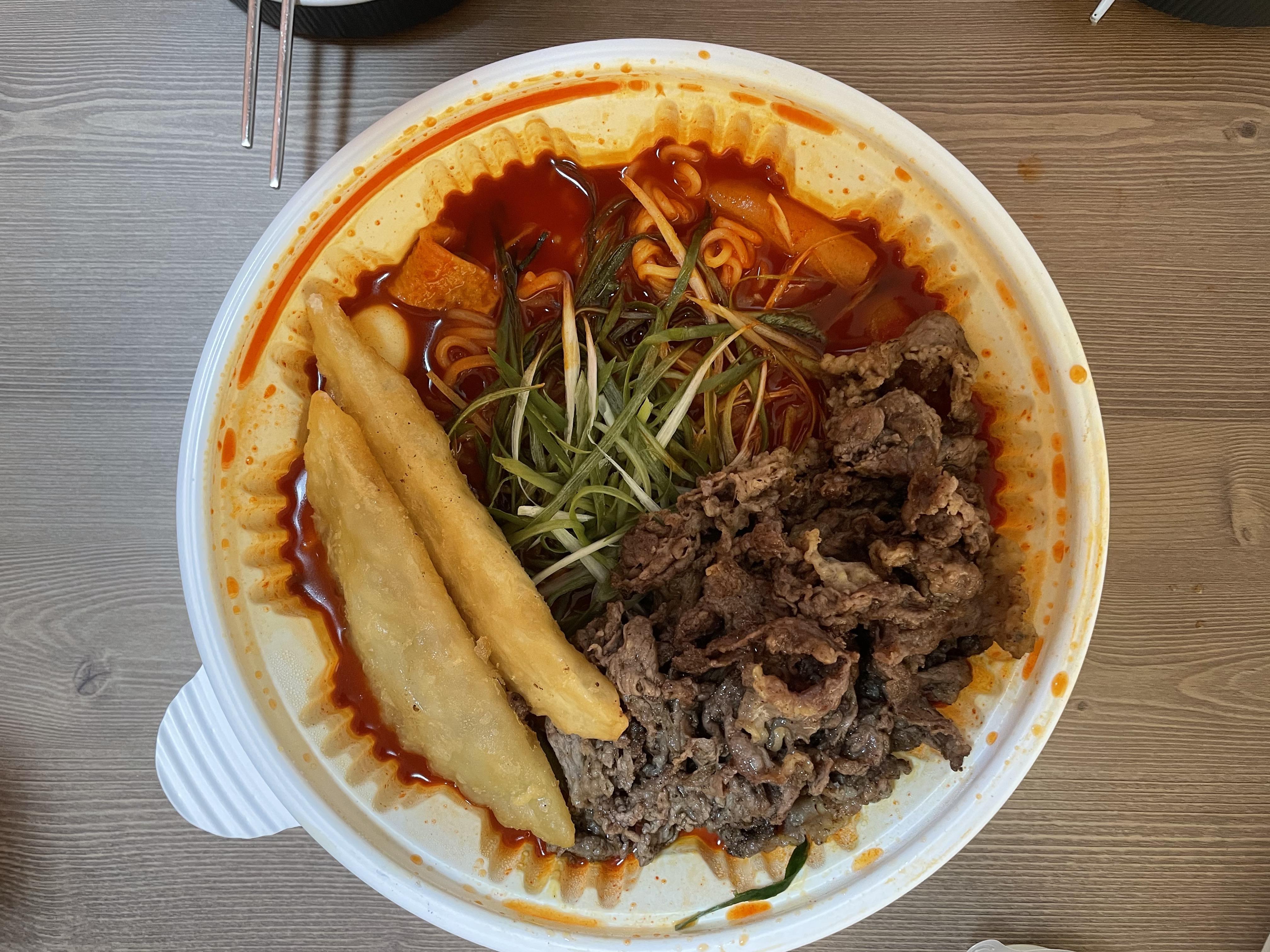 오늘은 제가 좋아하는 청년다방의 차돌떡볶이를 먹었어요. 저는 차돌떡볶이에 쫄면 사리 넣는 걸 좋아해서 추가하는 것도 잊지 않았습니다.
