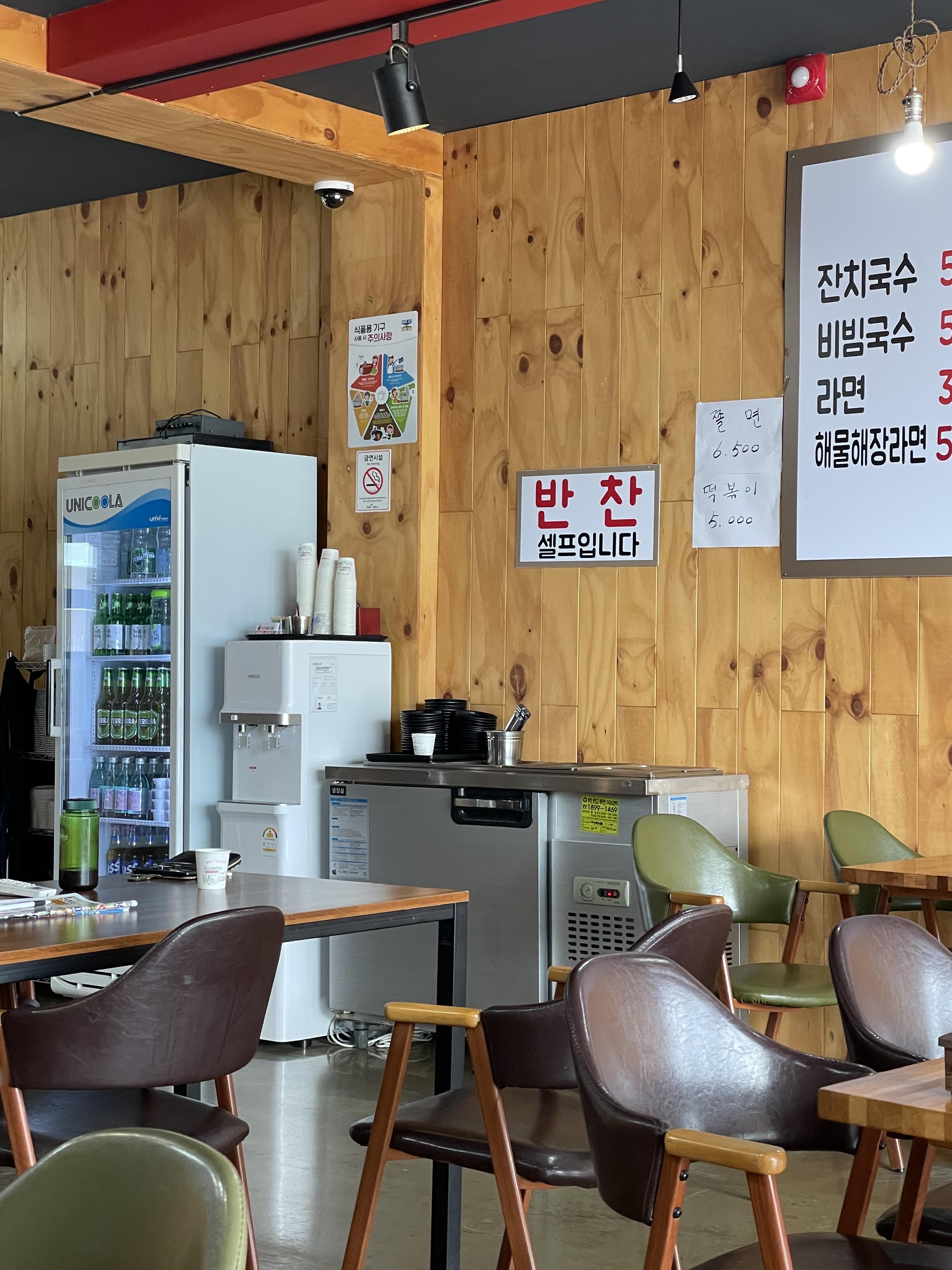 메뉴는 면류가 기본이고, 김밥과 비빔밥, 볶음밥이 있네요. 저는 내일 잔치국수를 먹기로 해서 라면과 김밥을 고릅니다.