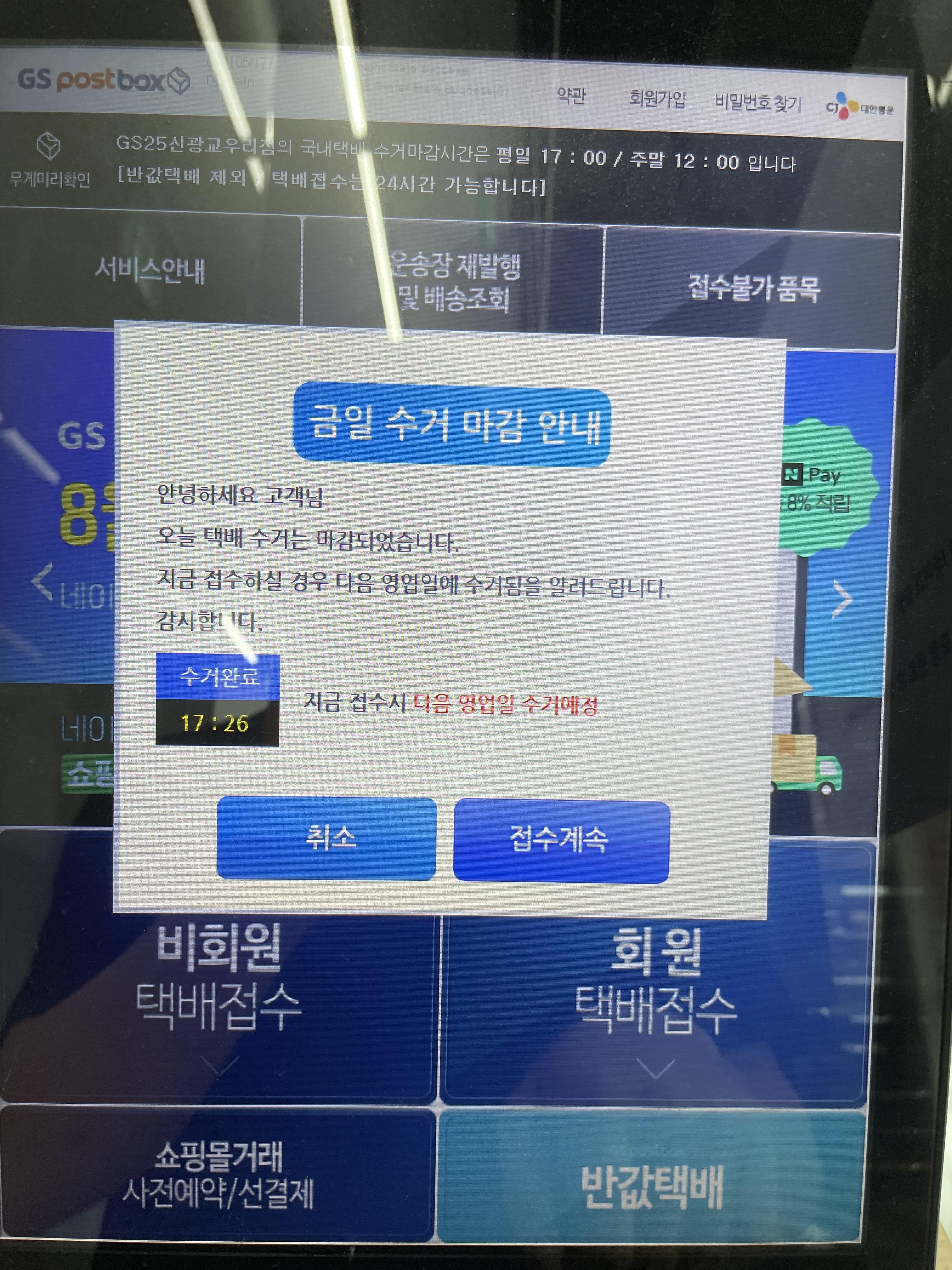 홈페이지에서는 미리 예약 후 현장에서 중량 측정한 후 접수하면 된다고 적혀있지만, 그냥 현장에서 등록하셔도 됩니다. GS포스트박스라고 검색하시고, 사이트나 앱에서 미리 예약하고 이용하는 방법이 더 편리하긴 하지만, 오늘은 바로 현장 접수하는 방법에 대해 적어볼게요. 먼저 반값택배 방법입니다.