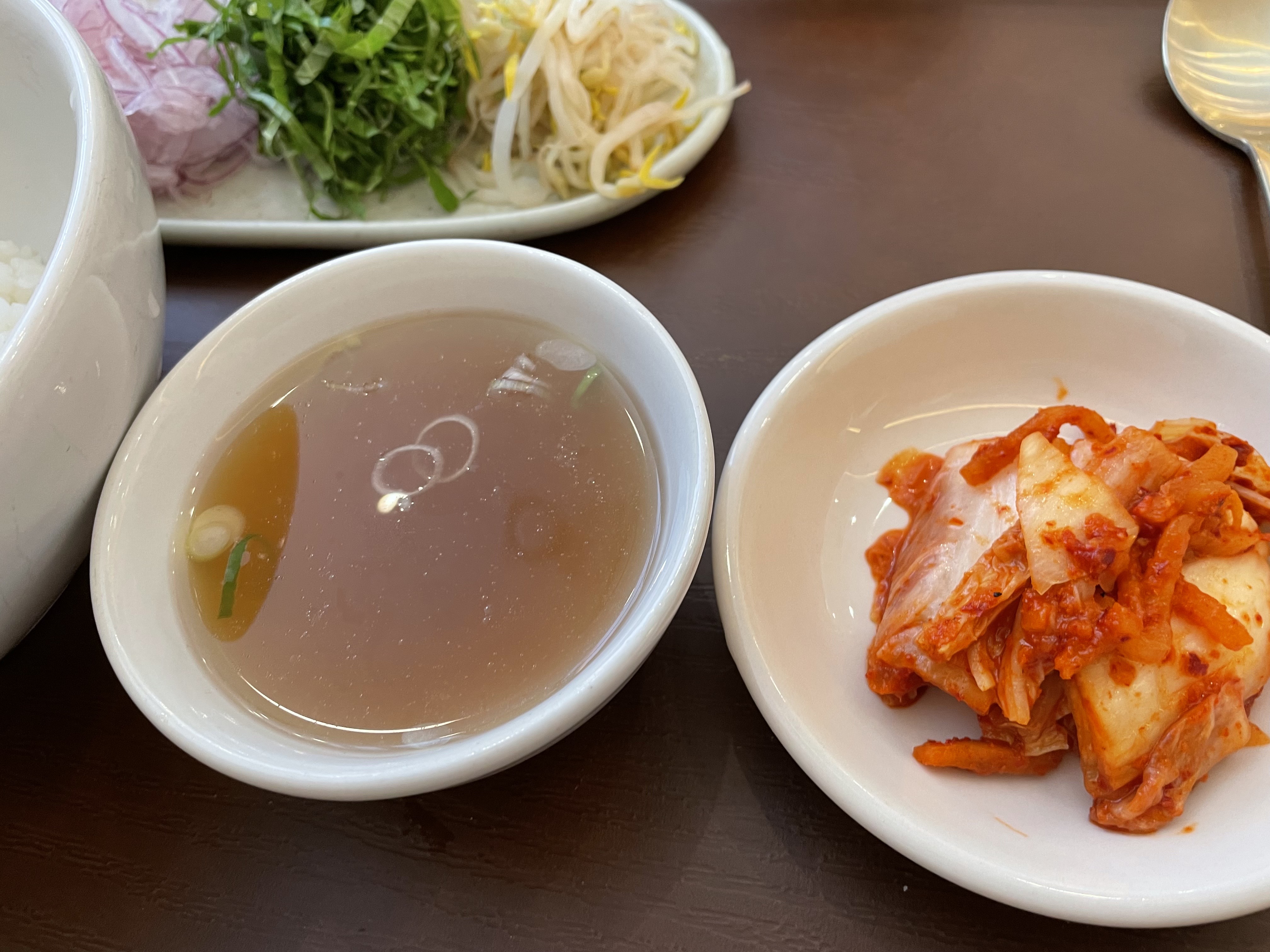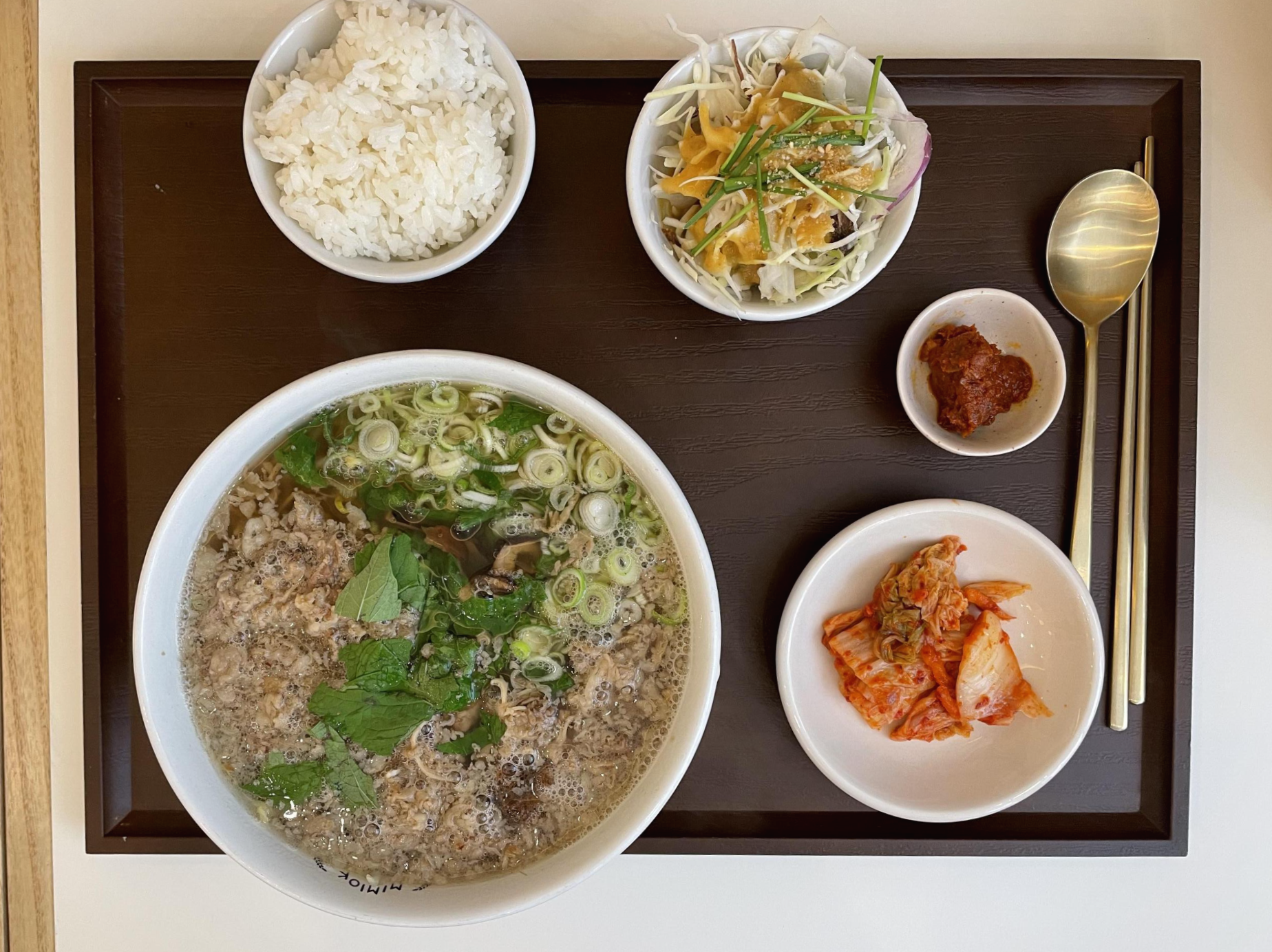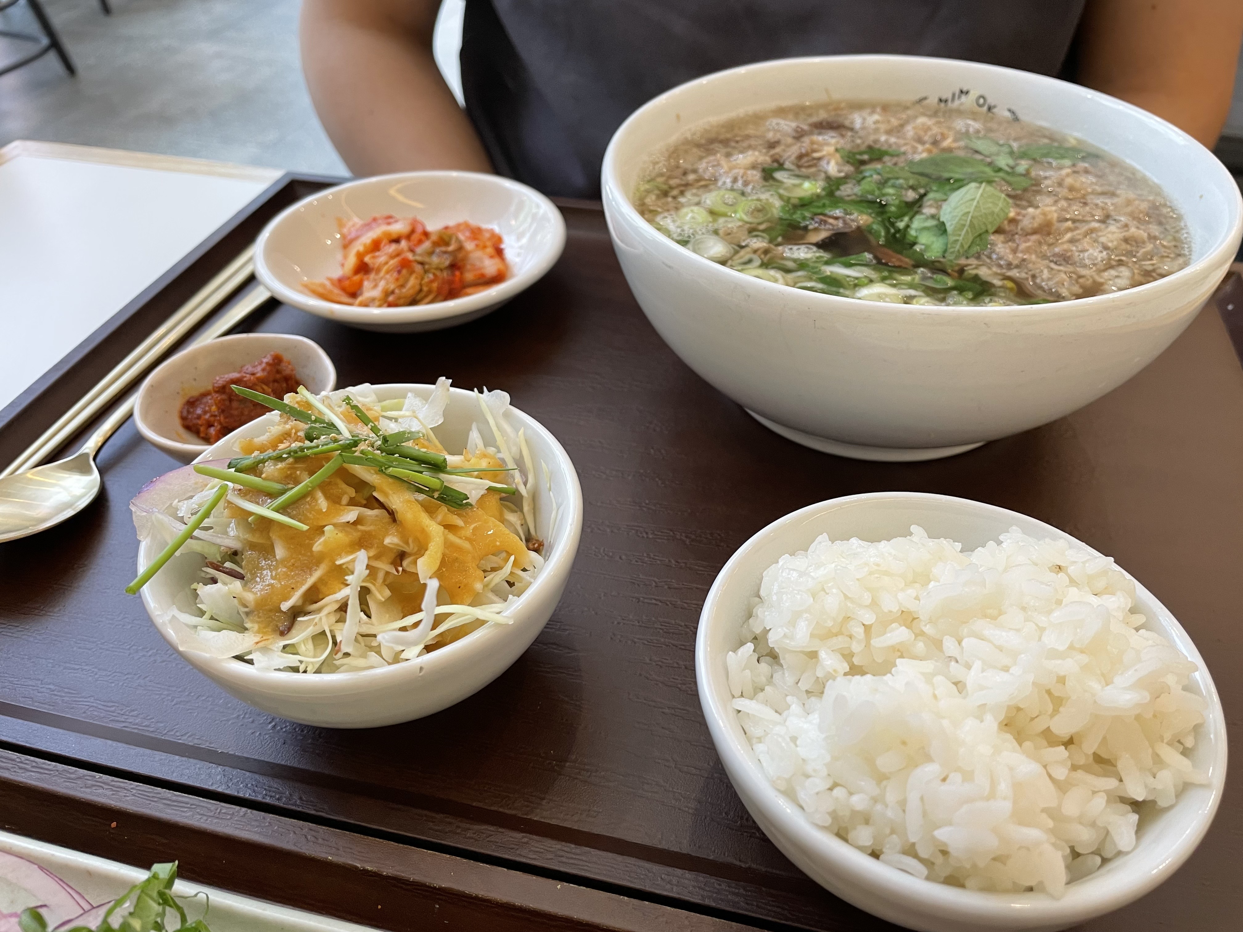 차돌박이 쌀국수 반상에는 밥 한 공기와 샐러드, 수제 양념장, 김치가 같이 나옵니다. 일반적인 쌀국수와는 확실히 다른 느낌입니다.