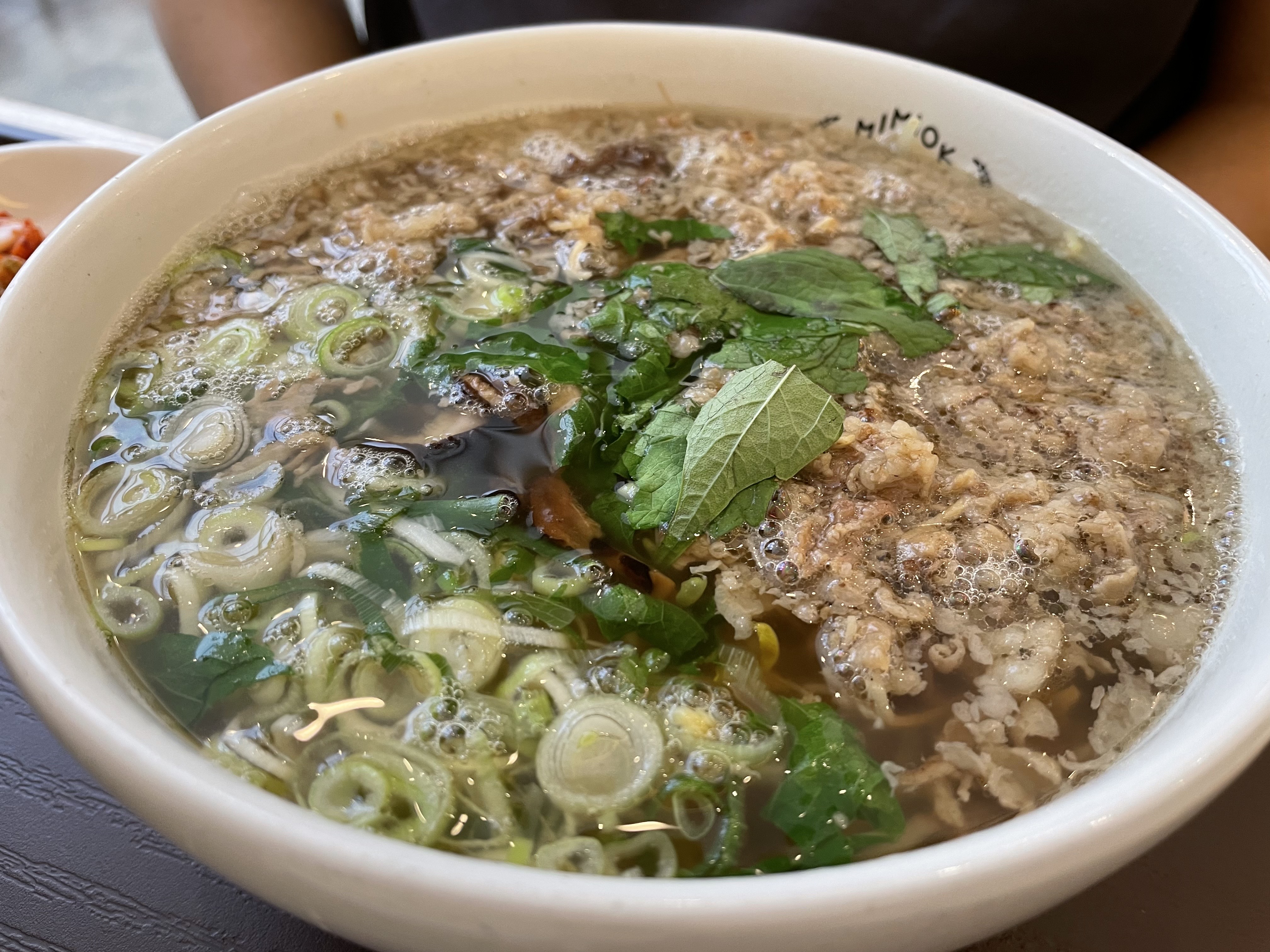 방아잎이 들어가서 그런지 약간 특이한 향이 나요. 고기 육수라서 구수하면서도 가볍지 않은 깊은 맛이 나는 편입니다.