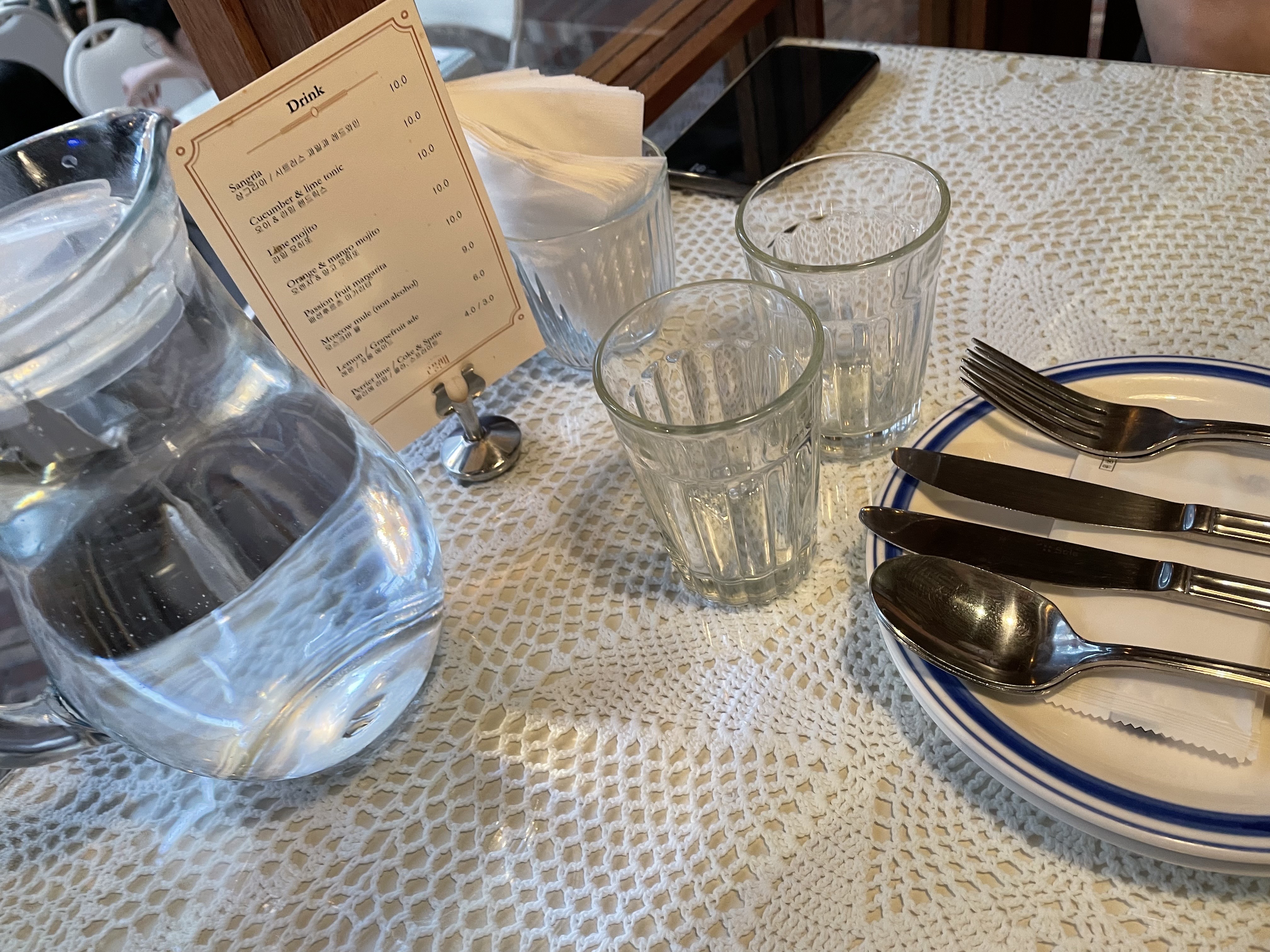 이곳은 다른 익선동 가게들과 마찬가지로 한옥을 기반으로 한 구조였고, 조명이나 테이블, 패턴으로 프랑스의 분위기를 연출했어요.