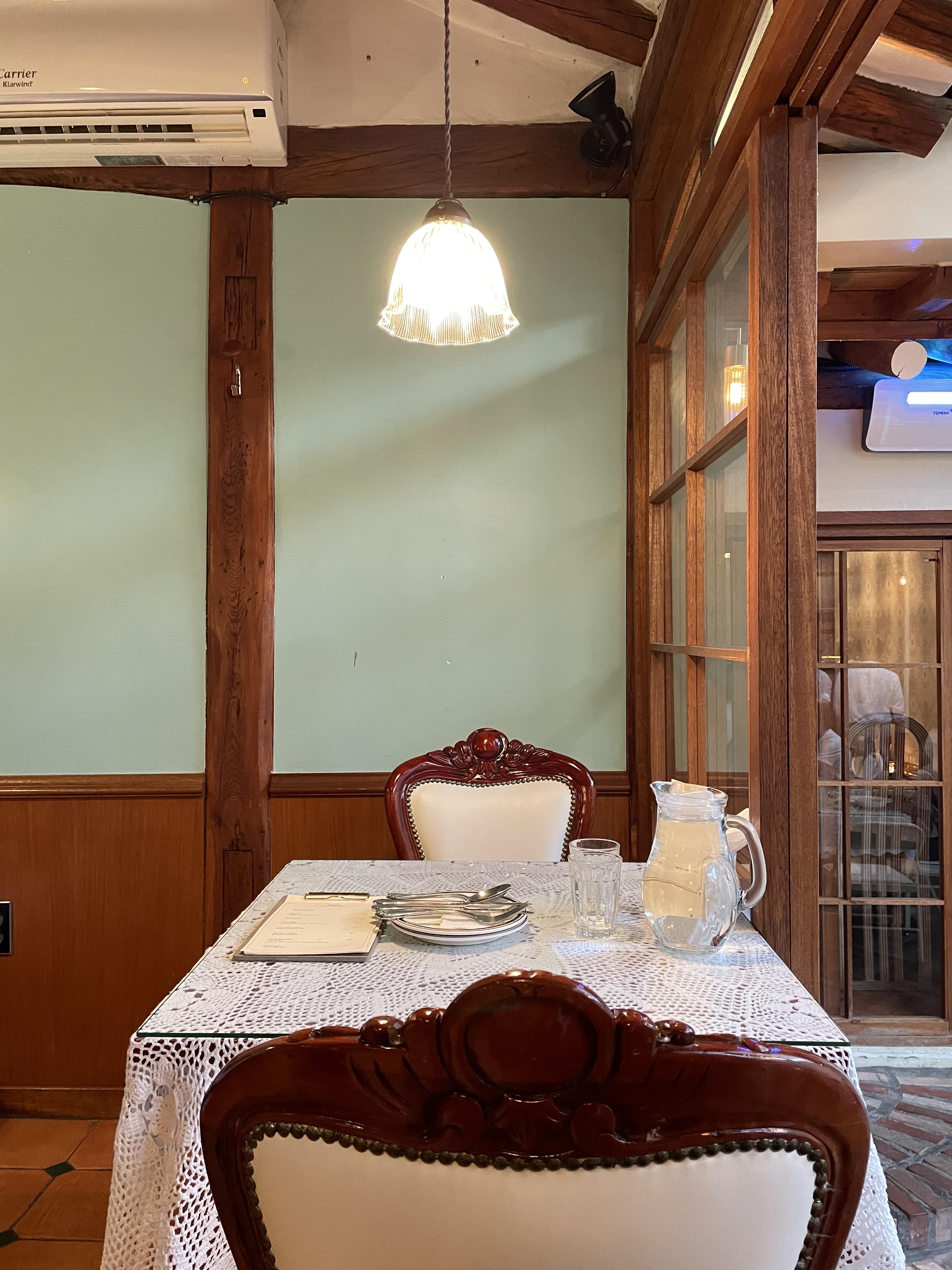 좌석은 이런 느낌입니다. 오래된 한국의 레트로한 느낌과 유럽풍이 오묘하게 엉겨 특별한 분위기를 만들어냅니다.