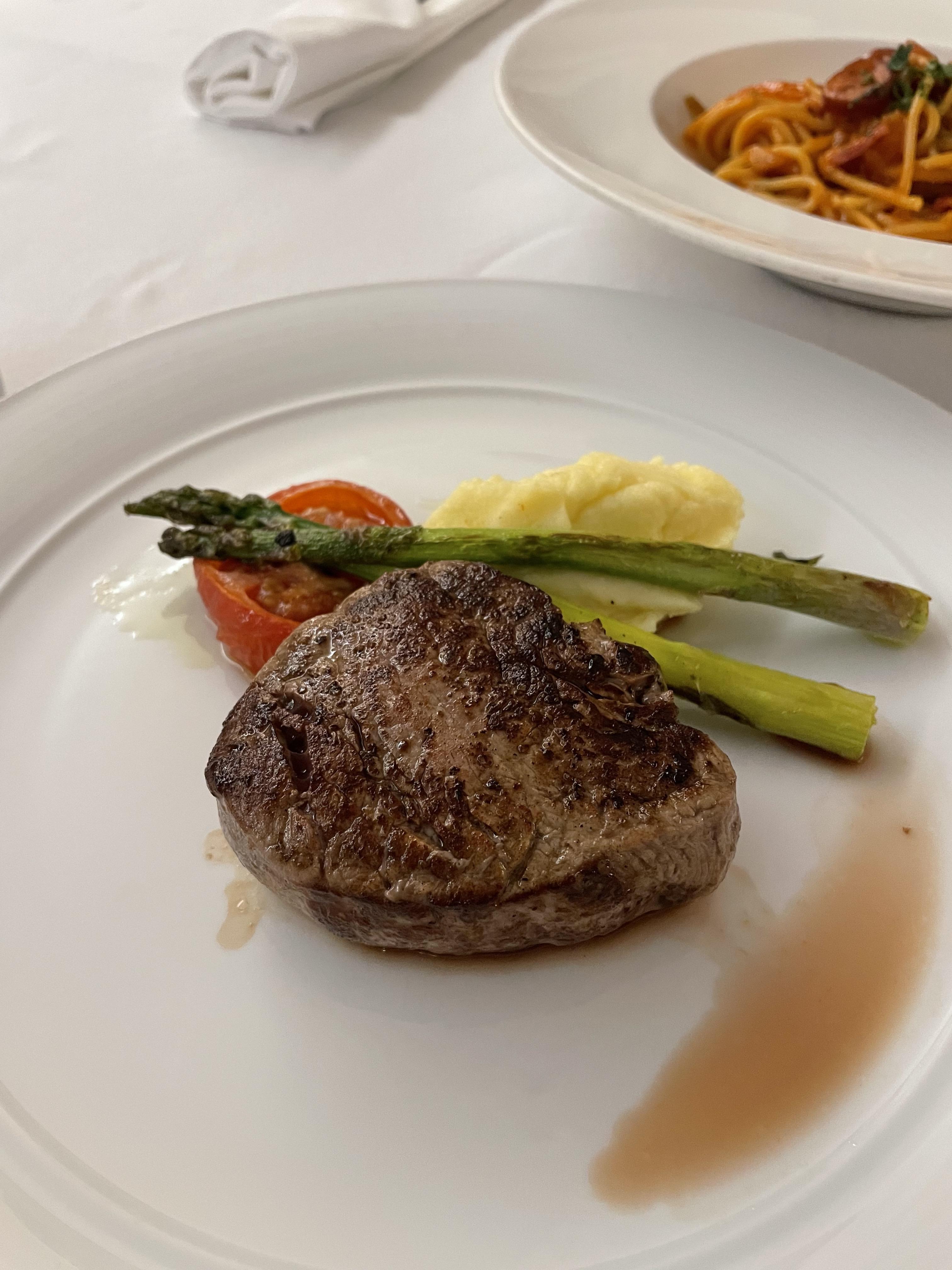 스테이크는 미디엄 레어로 주문했습니다. 적당히 부드럽고 좋았어요.