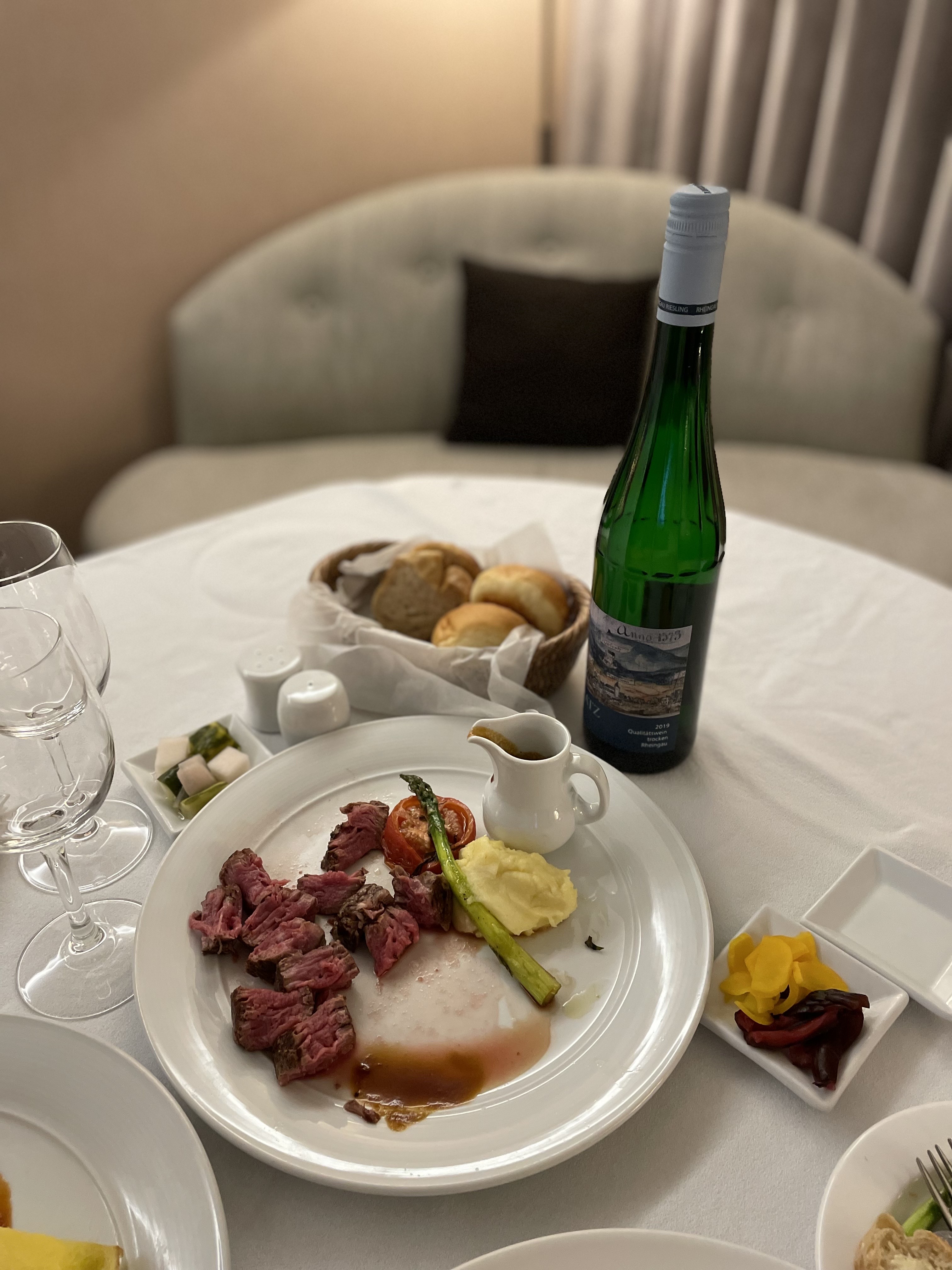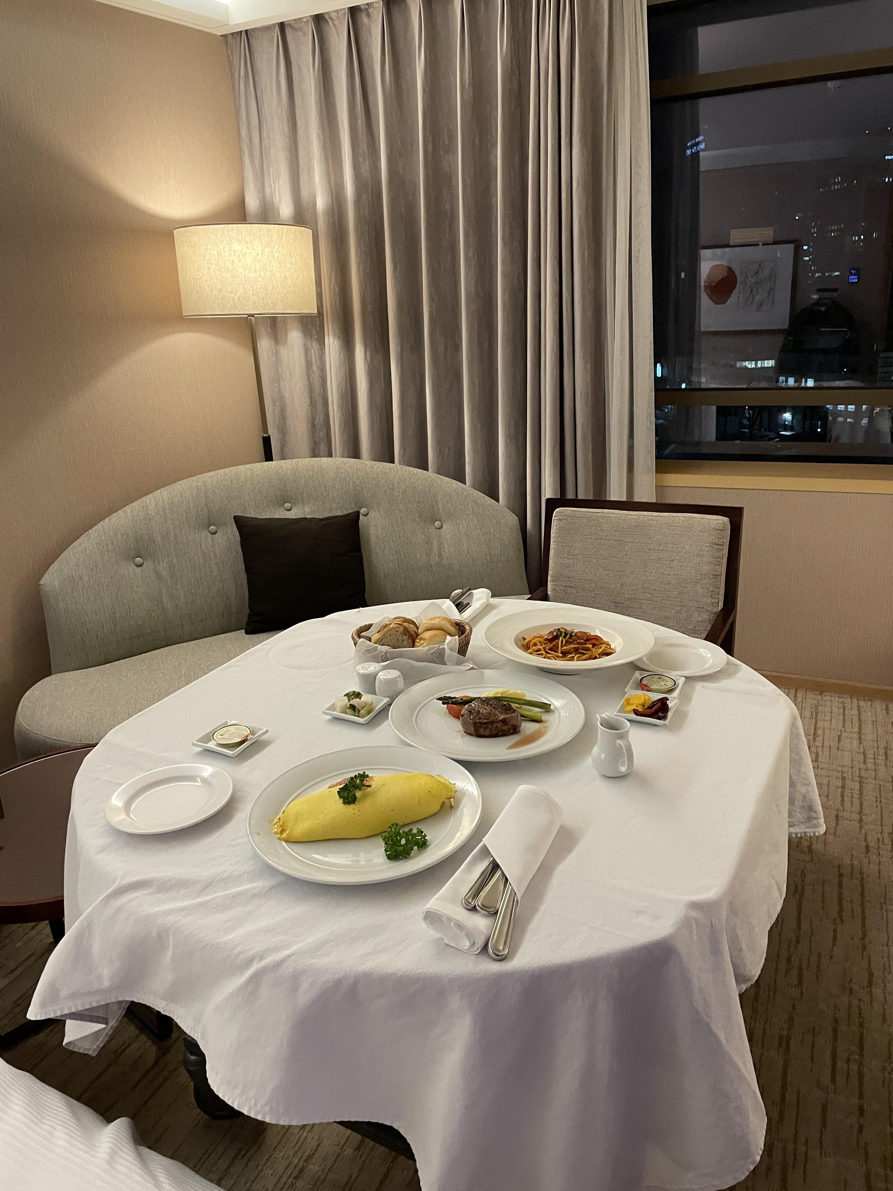 5시쯤 되었을까요. 저녁 룸서비스를 주문했습니다. 6시쯤 도착되면 좋겠다는 말씀을 드려놨는데, 거의 맞춰 가져다주신 것 같아요.