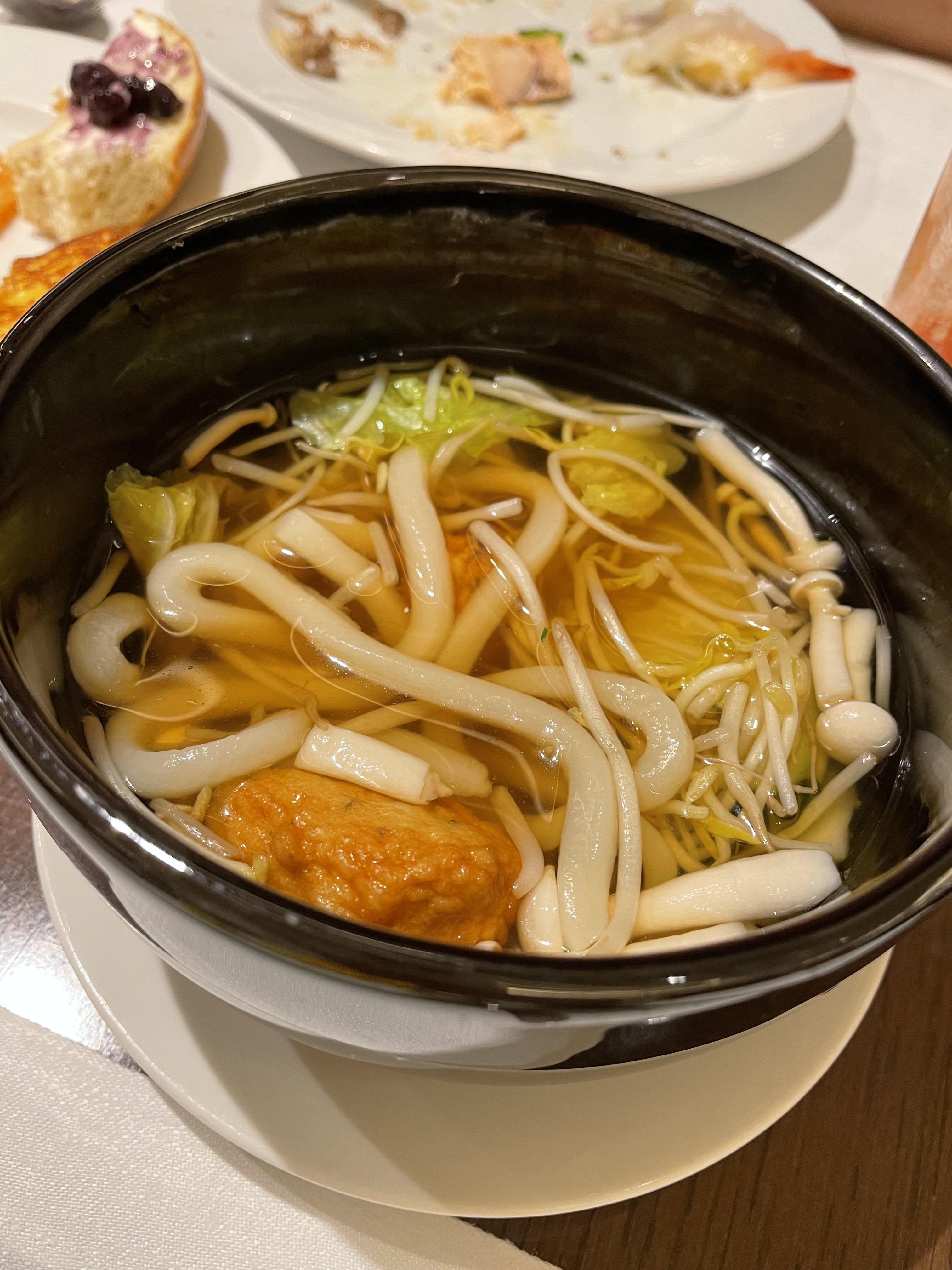 우동을 즉석에서 만들어주셨고, 과일도 가져왔는데 과일은 좀 아쉬웠어요. 조금만 더 종류가 많았으면 좋았을 뻔했어요. 물론 과일 당도는 참 좋았어요.