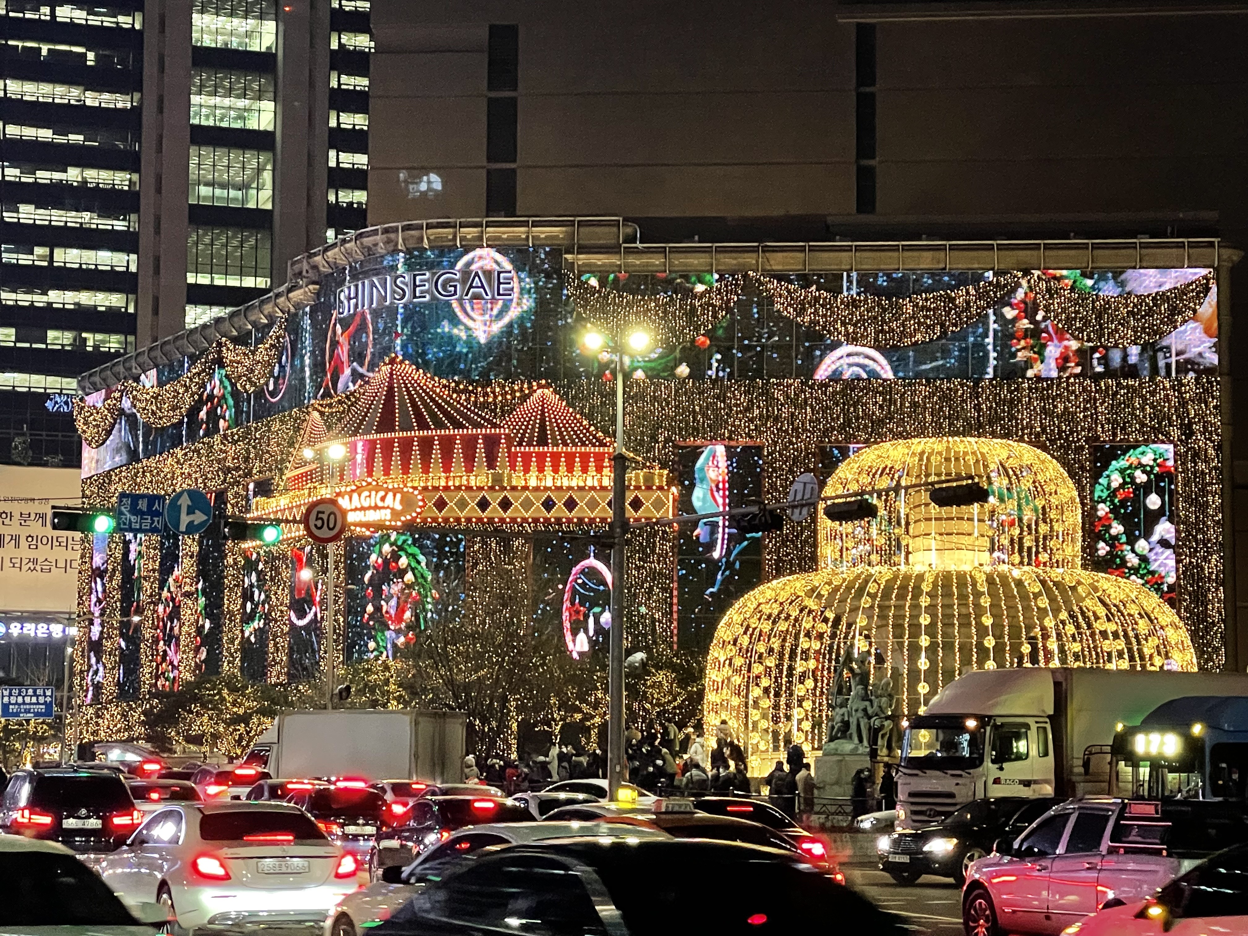 일단 이번에 엄청 핫했던 신세계 본점입니다. 걸어서 아주 가까워서 잠깐 보러 갔는데 사람들이 엄청 많더라고요!!! 잠깐 사진 찍고 금방 지나쳤습니다. (생각보단.. 스케일이 안 커서 실망했던ㅠ)