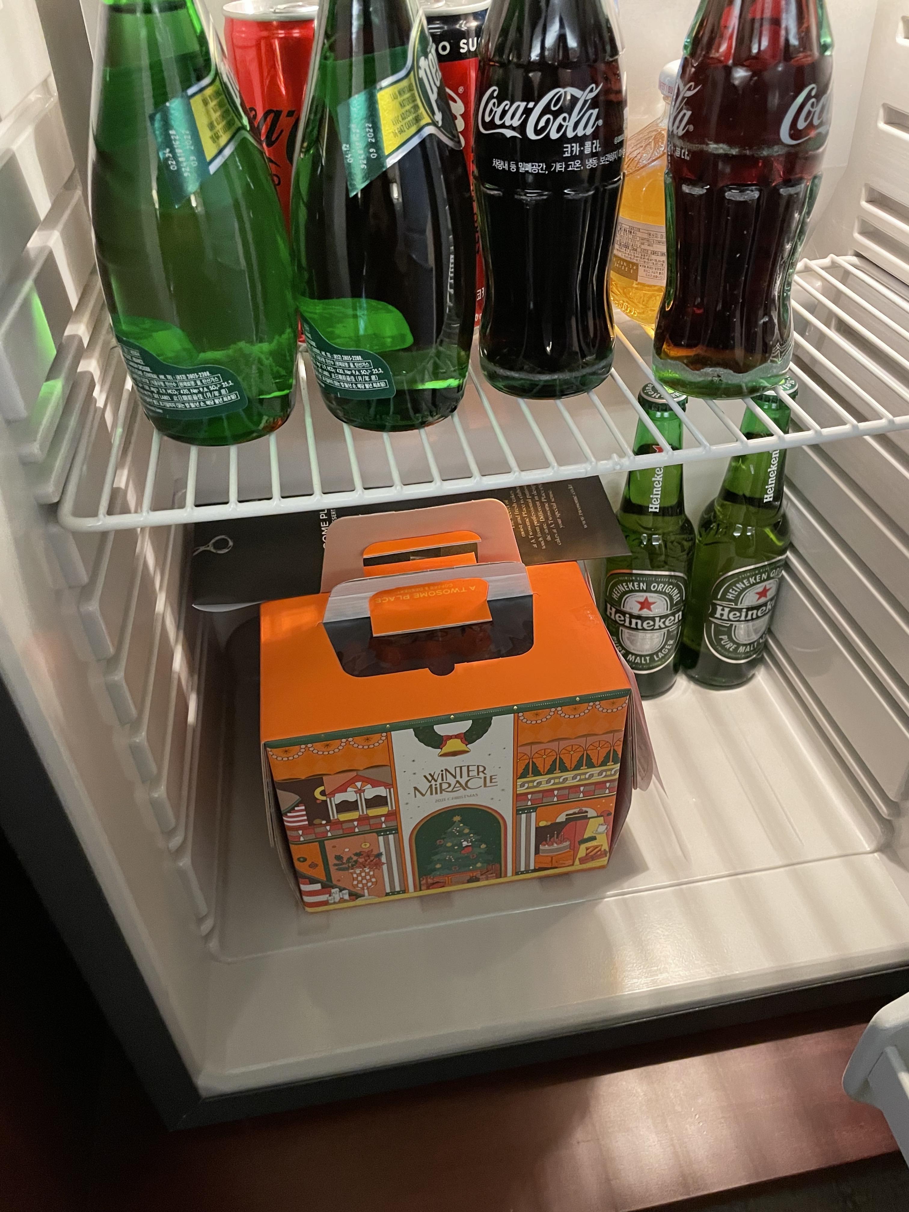 냉장고에 다행히, 1호 케이크가 들어갔어요!