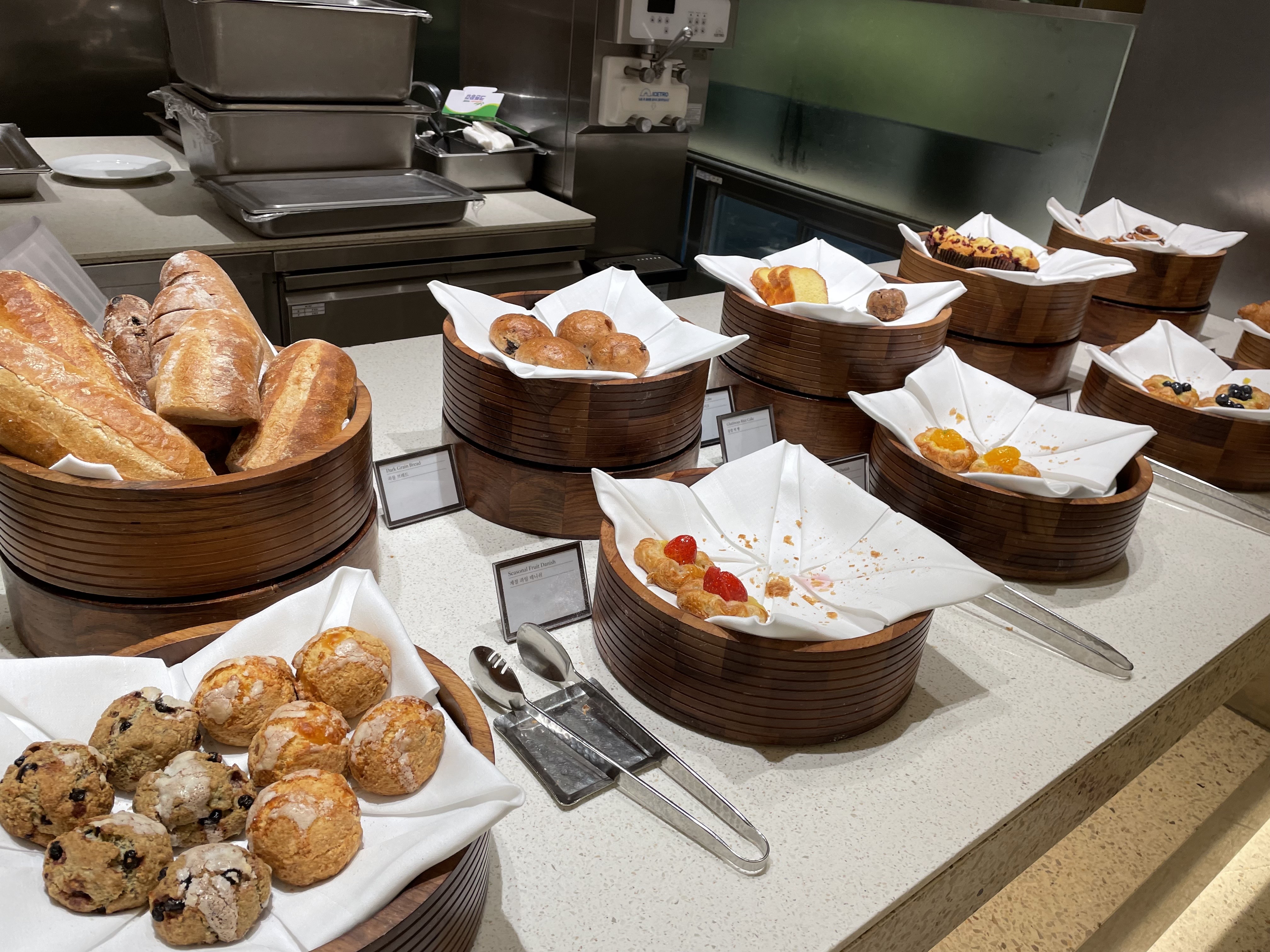 각종 베이커리류와 과일, 간단한 고기류와 샐러드, 국물요리와 주스, 요구르트 등이 있습니다. 조식은 늘 비슷하죠.