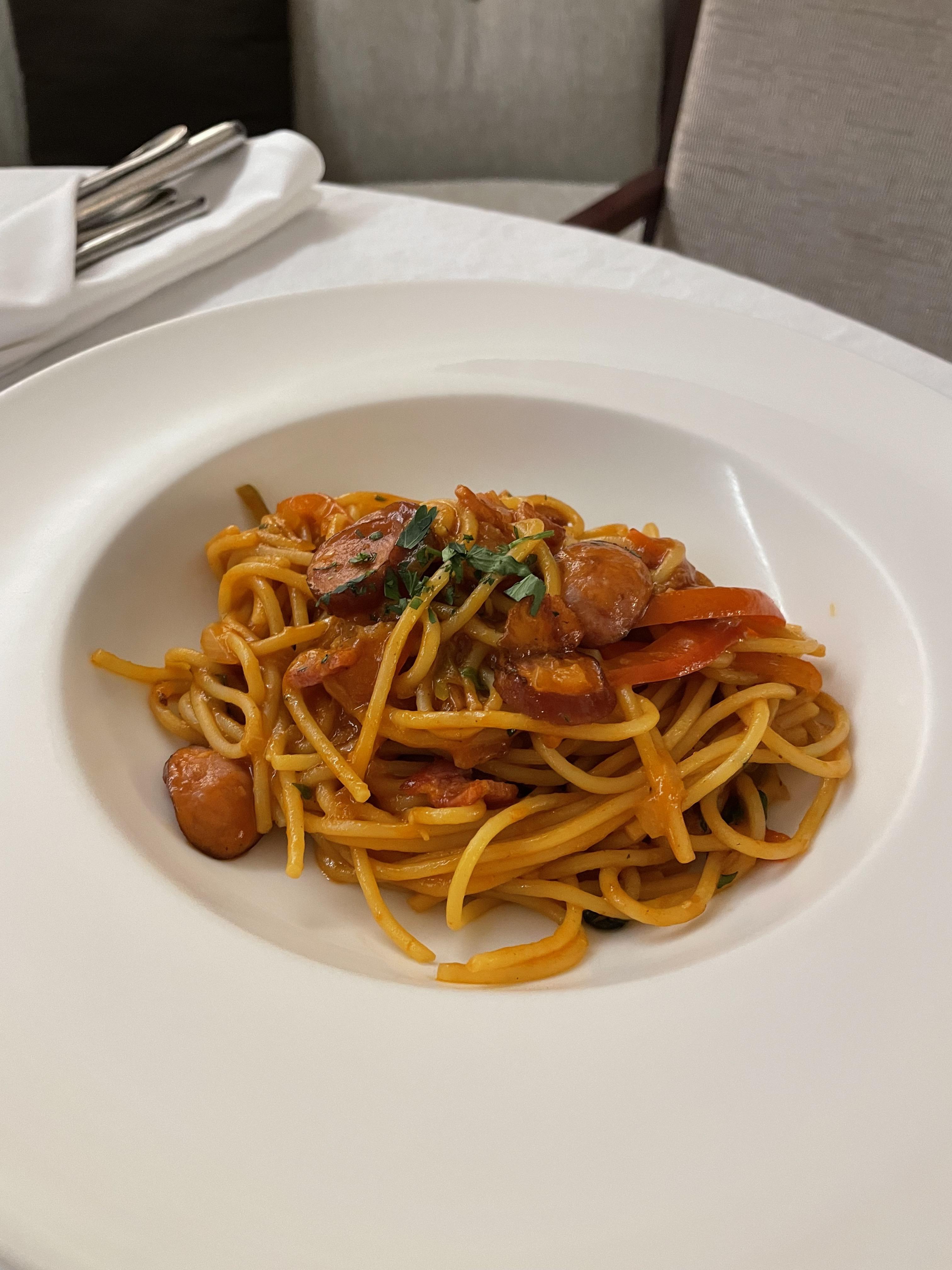 나폴리탄 스파게티는 초등학생 입맛이라면 좋아할 맛이라고 자신 있게 말할 수 있습니다. 토마토 특제 나폴리탄 소스의 일본식 스파게티라고 하는데요. 소시지가 들어가고 약간 케첩 같기도 한 달달한 소스로 제 입맛에는 맞더라고요.
