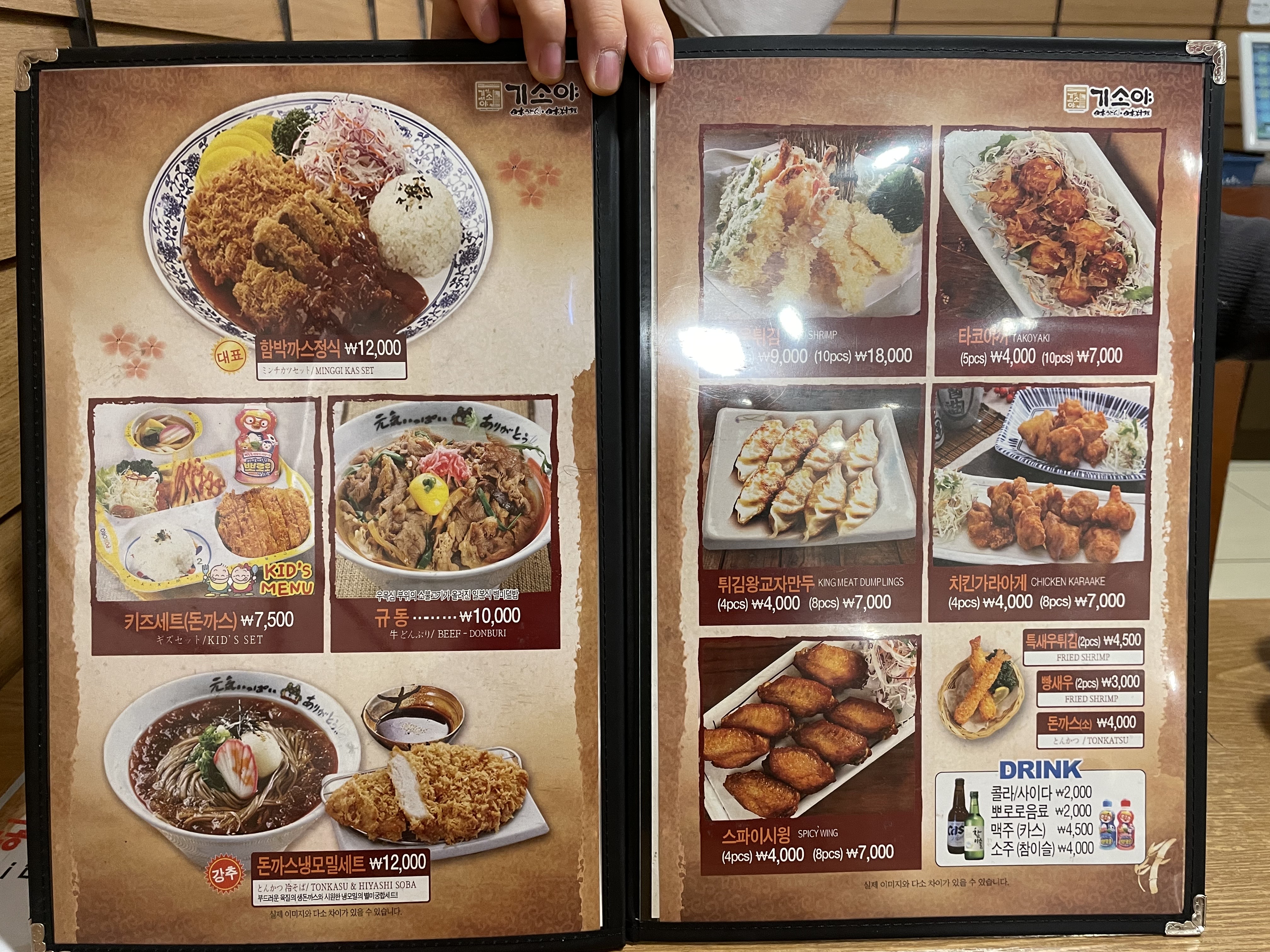 기소야는 돈까스나 메밀소바 정식 등을 먹을 수 있는 퓨전 일식집이었고요. 저희가 좋아하는 메뉴가 다 있어서 갔습니다.