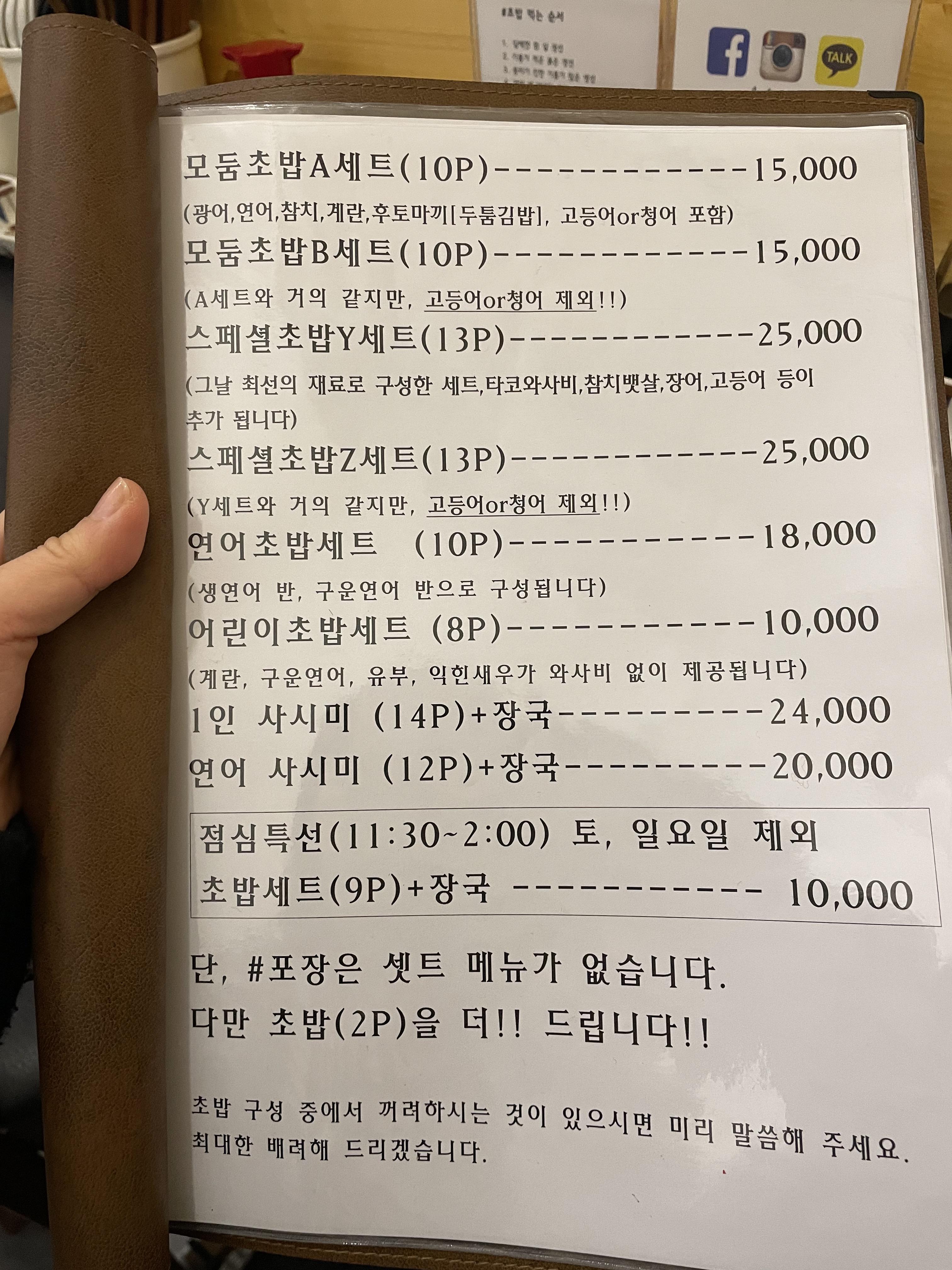 초밥이 나왔습니다. 이것은 B세트입니다. 초밥은 주문과 즉시 바로 만들어주세요.