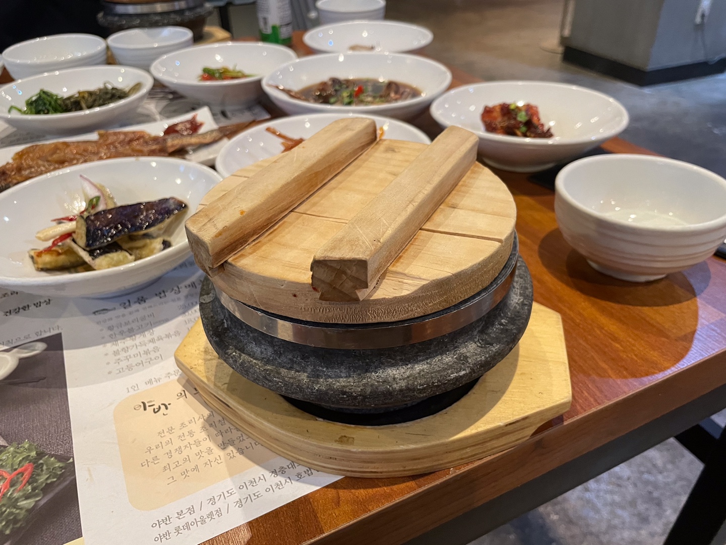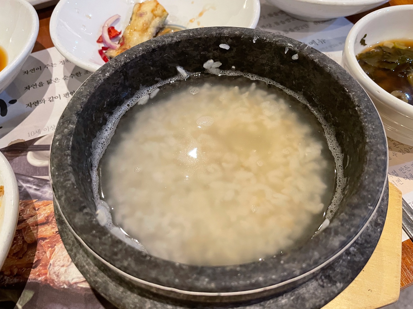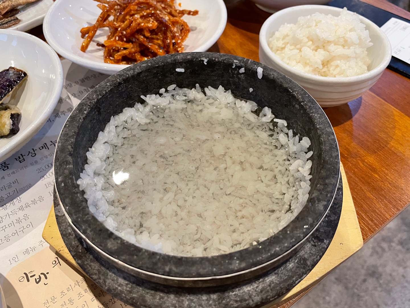 밥은 돌솥밥이었구요. 밥을 덜어내고, 물을 붓고 뚜껑을 다시 덮어 이따가 숭늉처럼 먹는 형식이었어요.