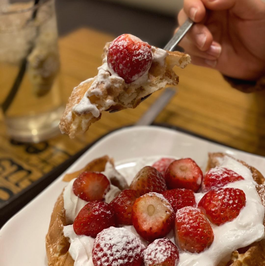 그리고 와플 위에 올라간 크림이 휘핑크림이라 그런가 금방 죽었어요. 생크림인 줄 알았는데.